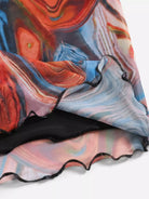 Marble Print Lettuce Trim Mesh Mini Skirt