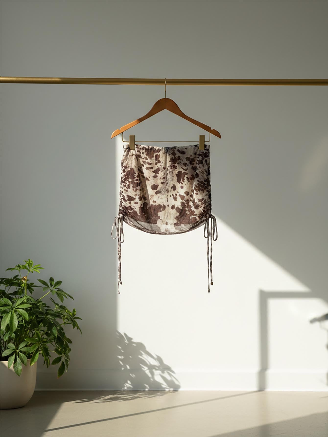 MUSERA Sheer Mesh Ruched Tie Side Cow Print Micro Skirt Summer Cute Sexy Fun Festival Cool Girl Fall