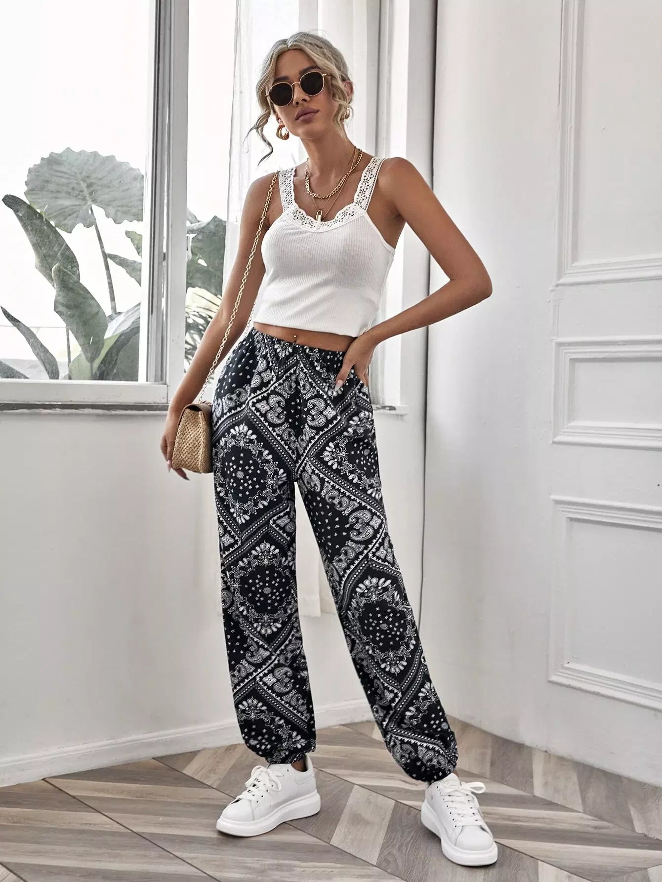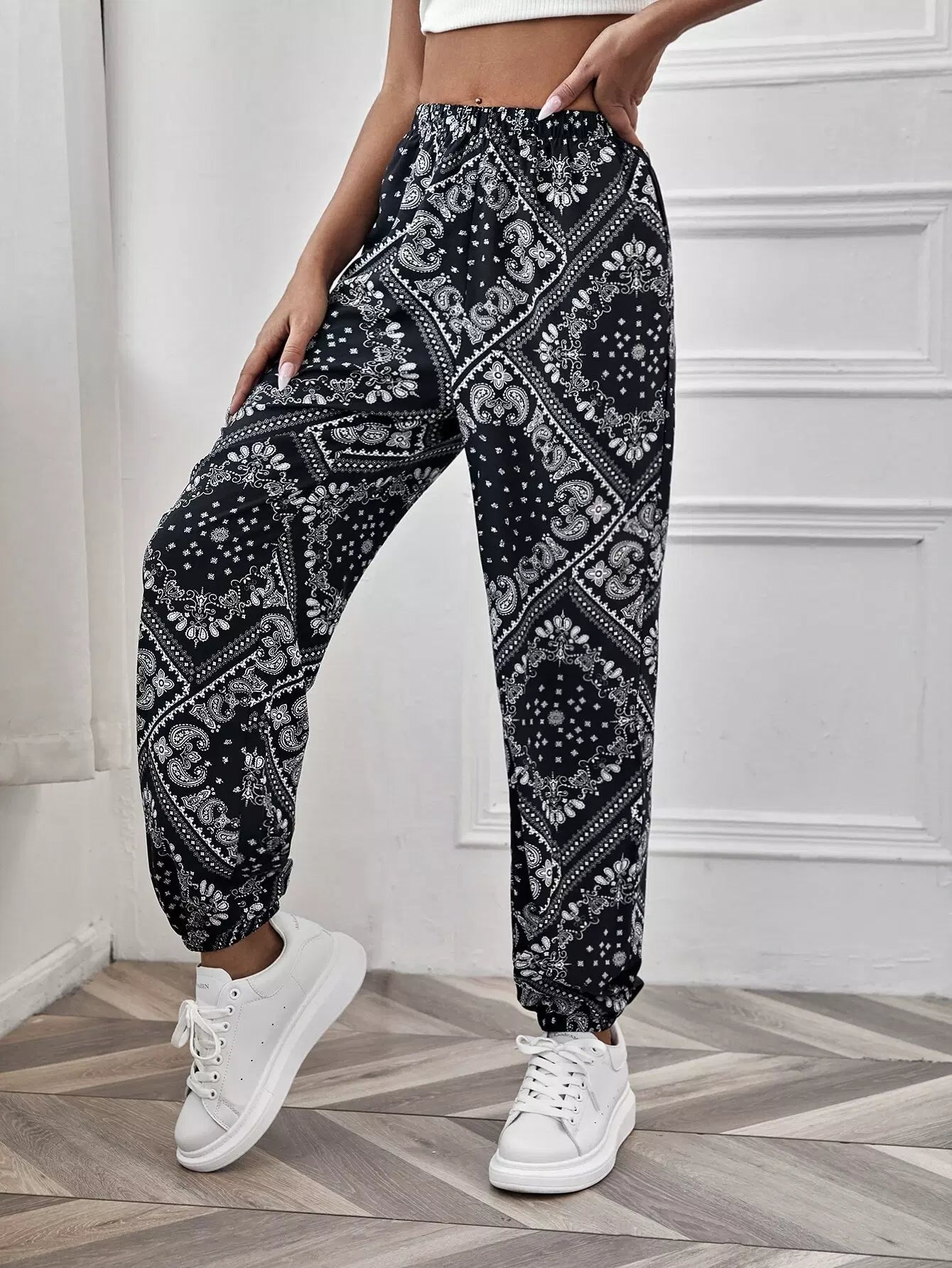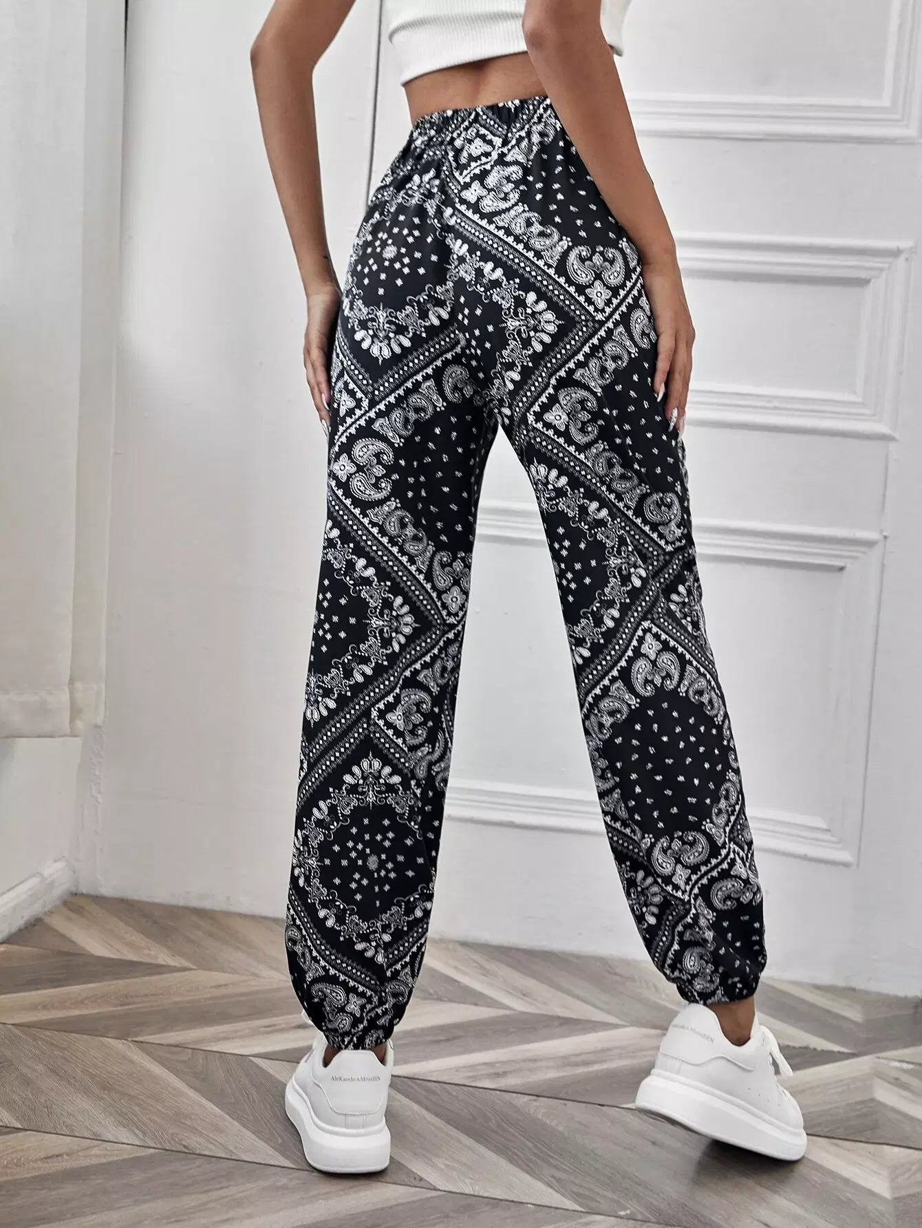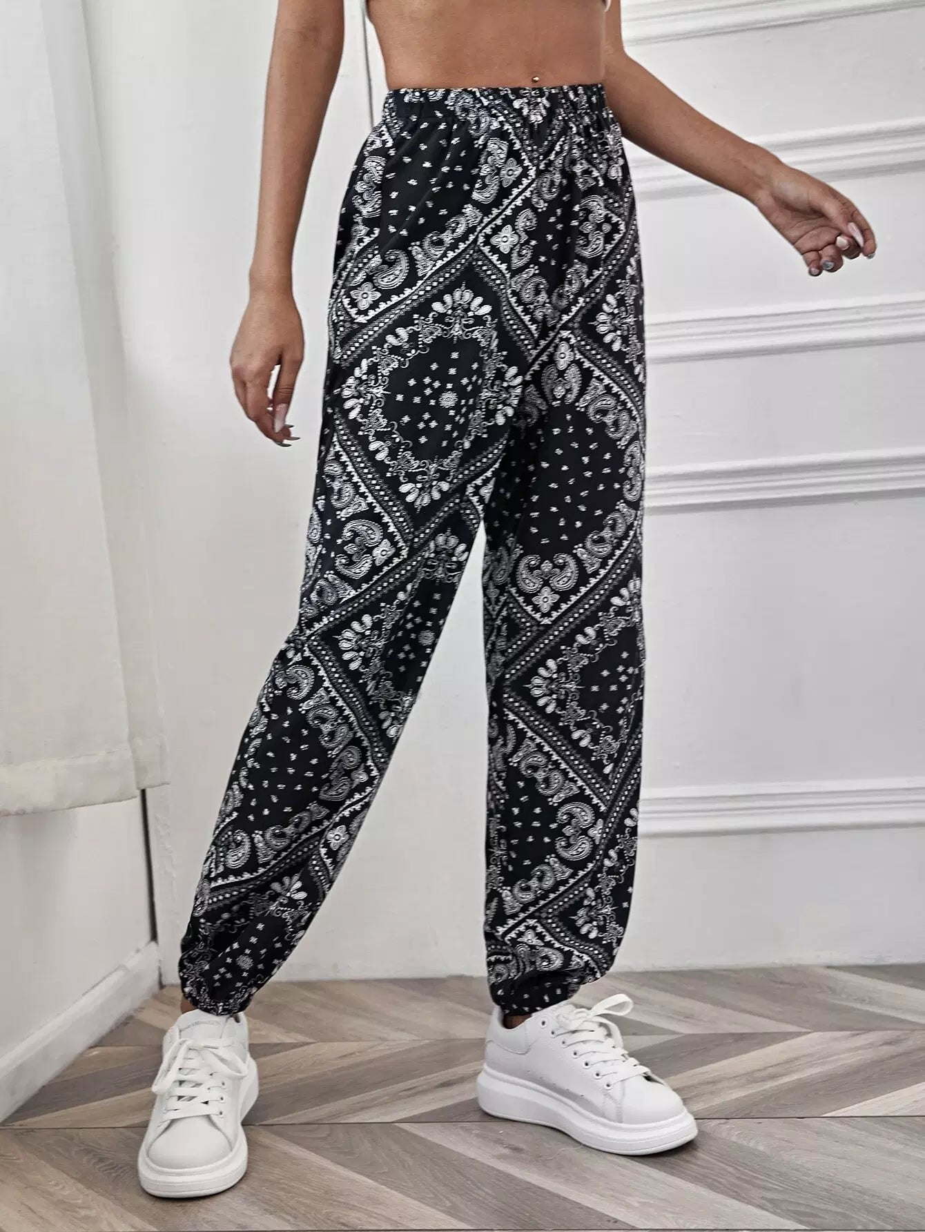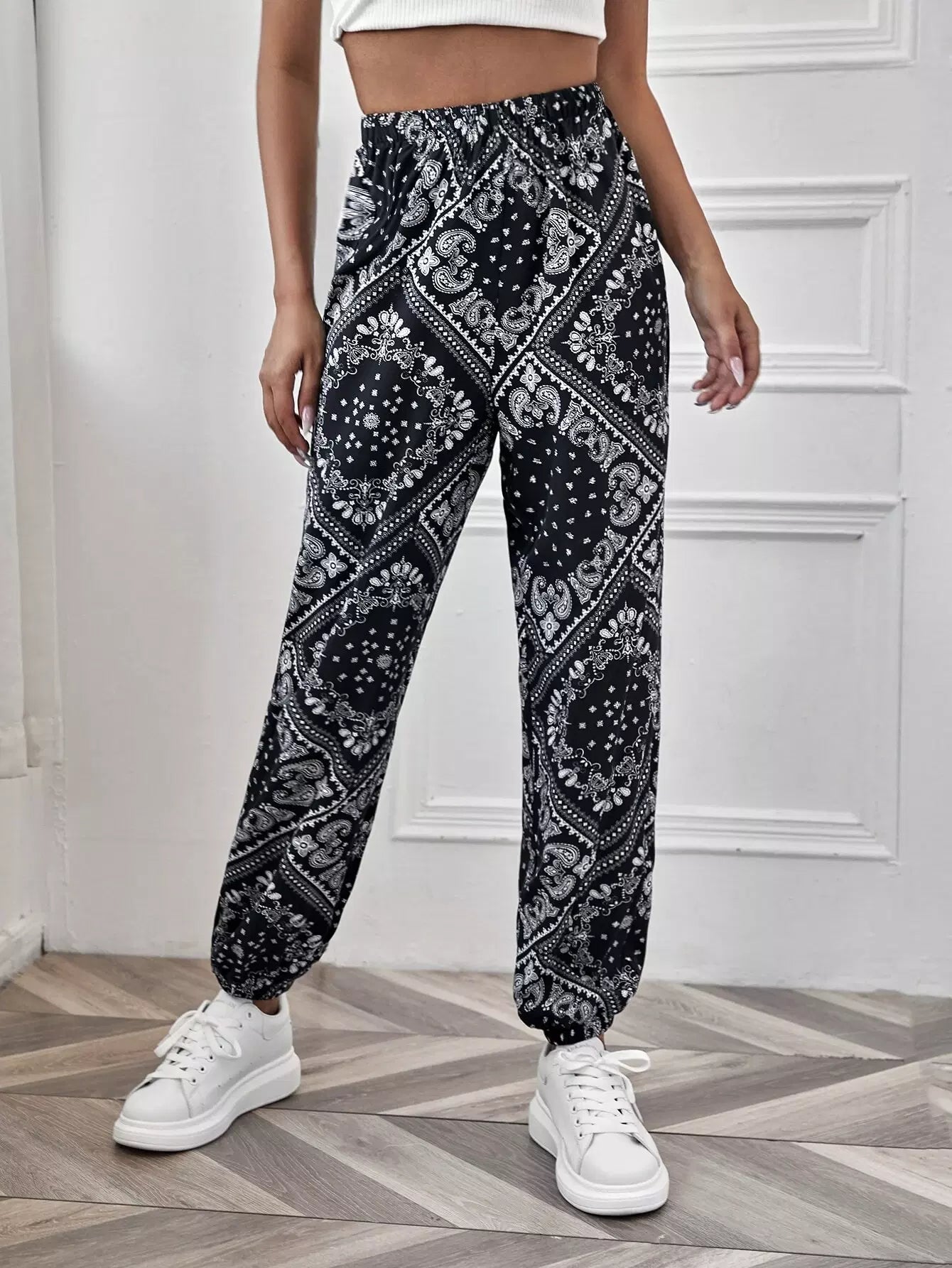 Paisley Print Elastic Waist Pants