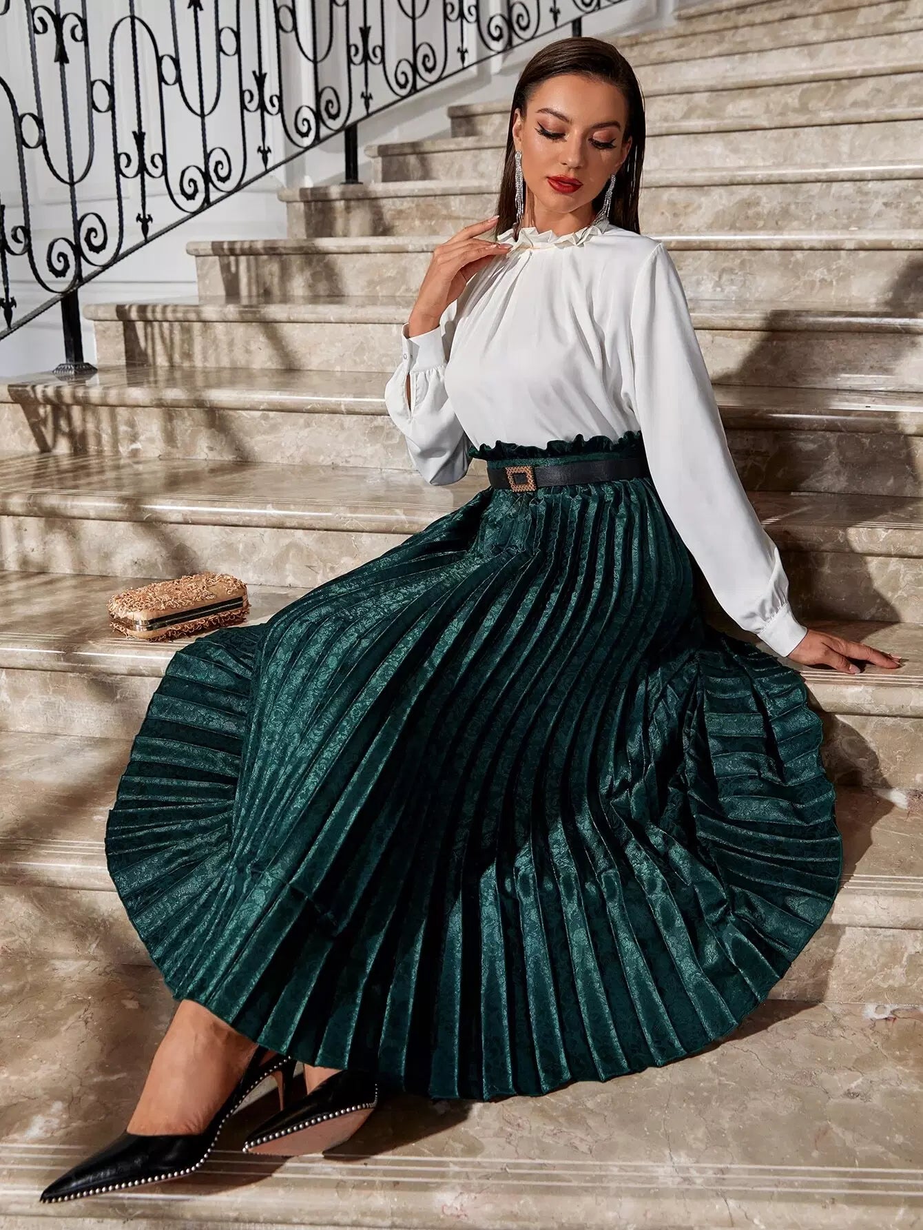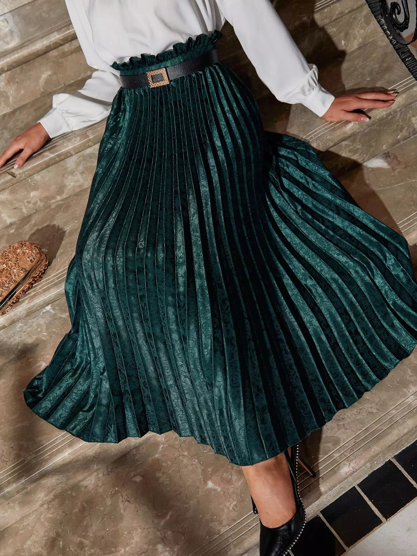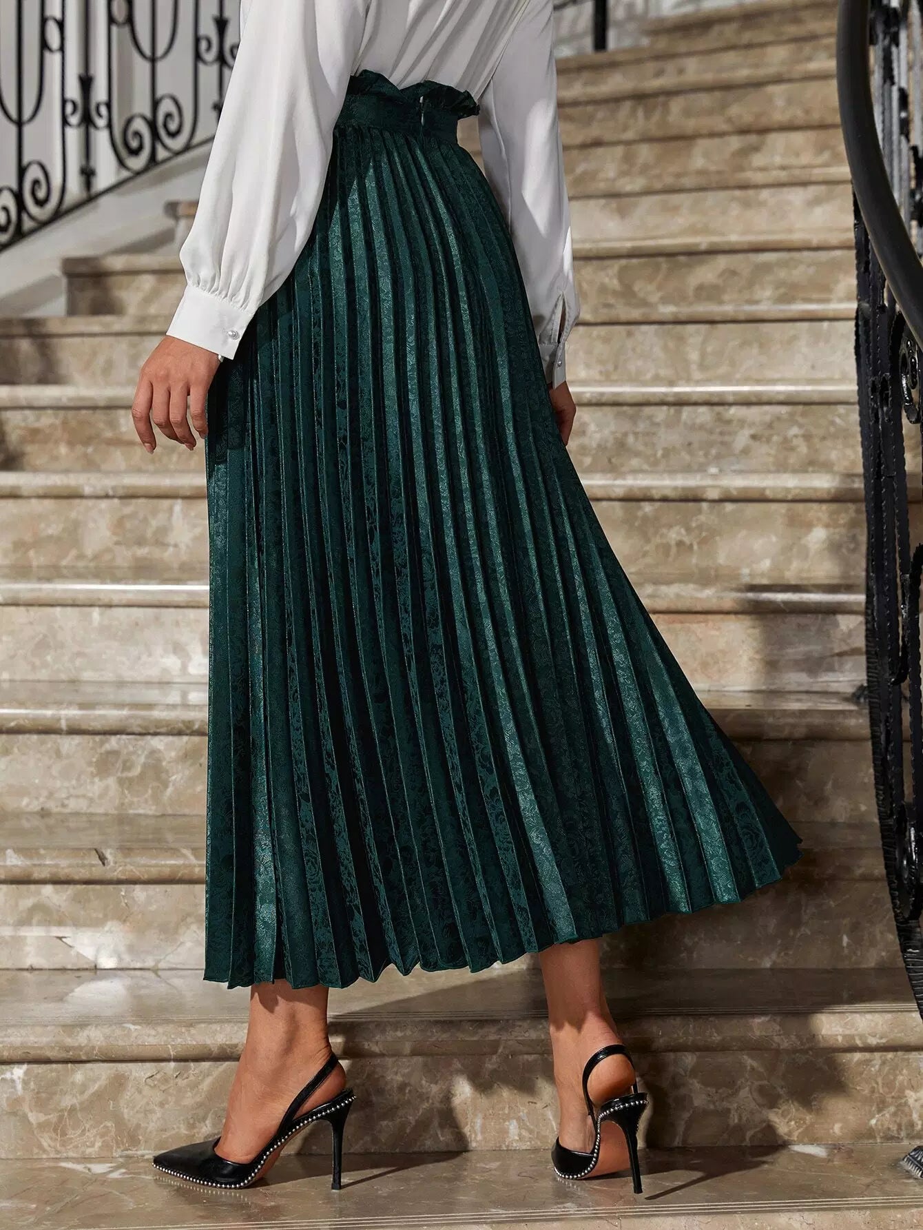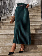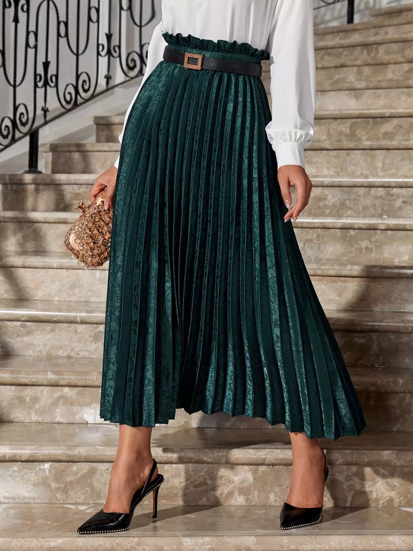 Paperbag Waist Pleated Satin Skirt Without Belt