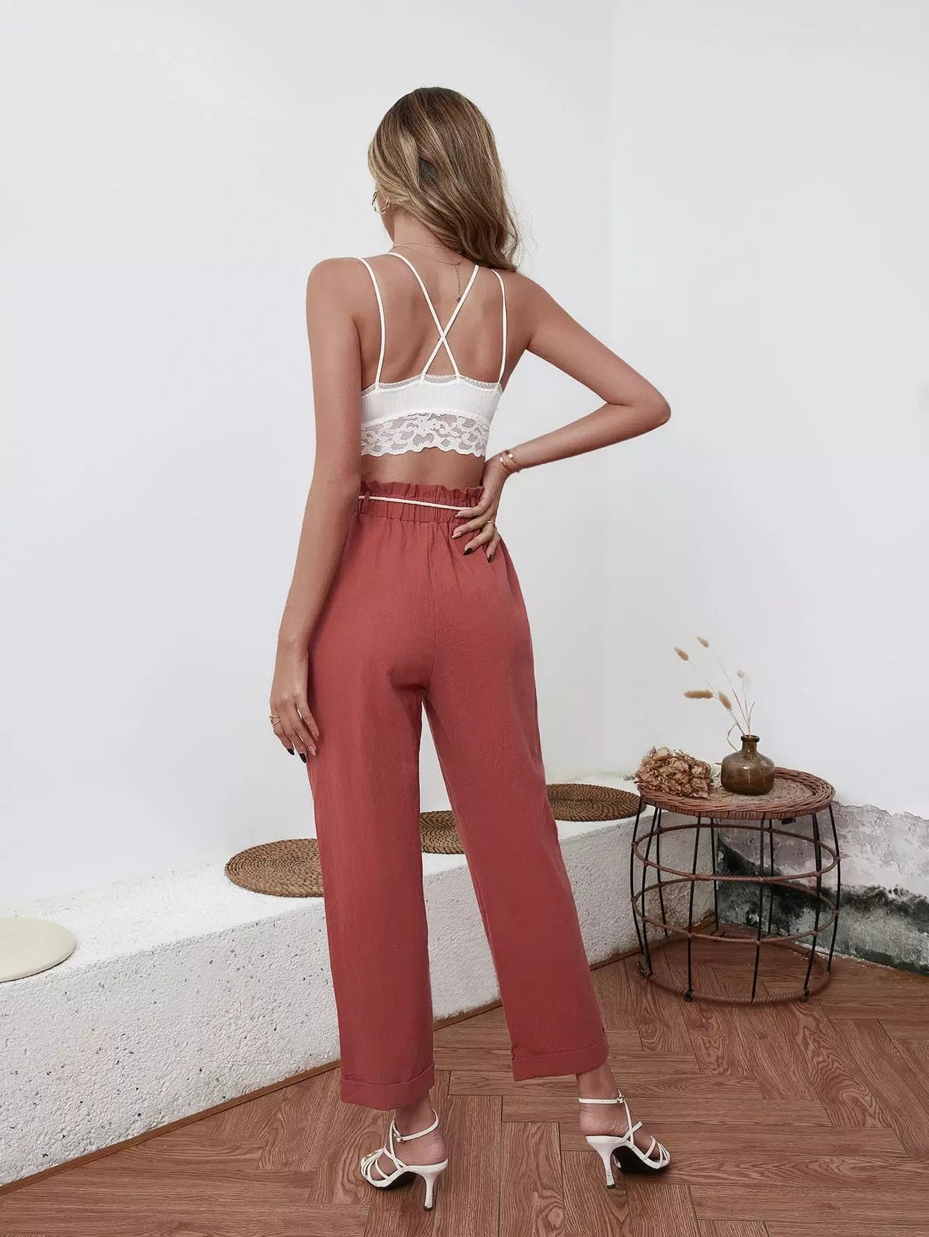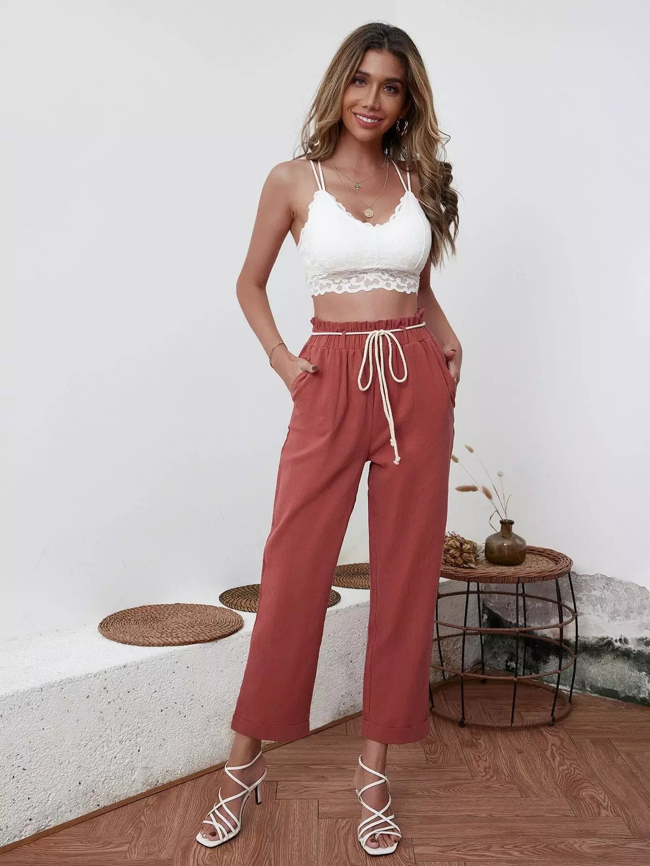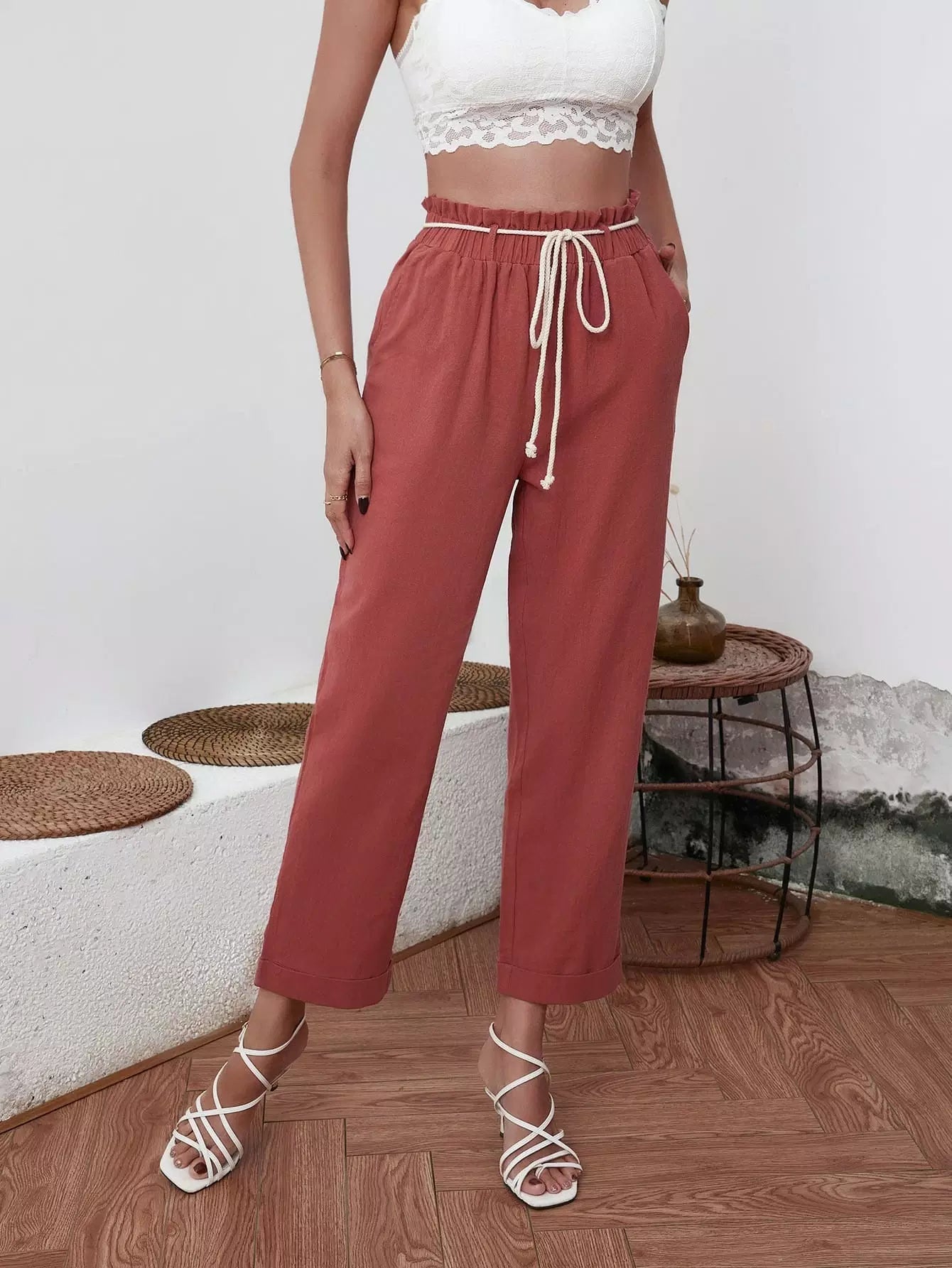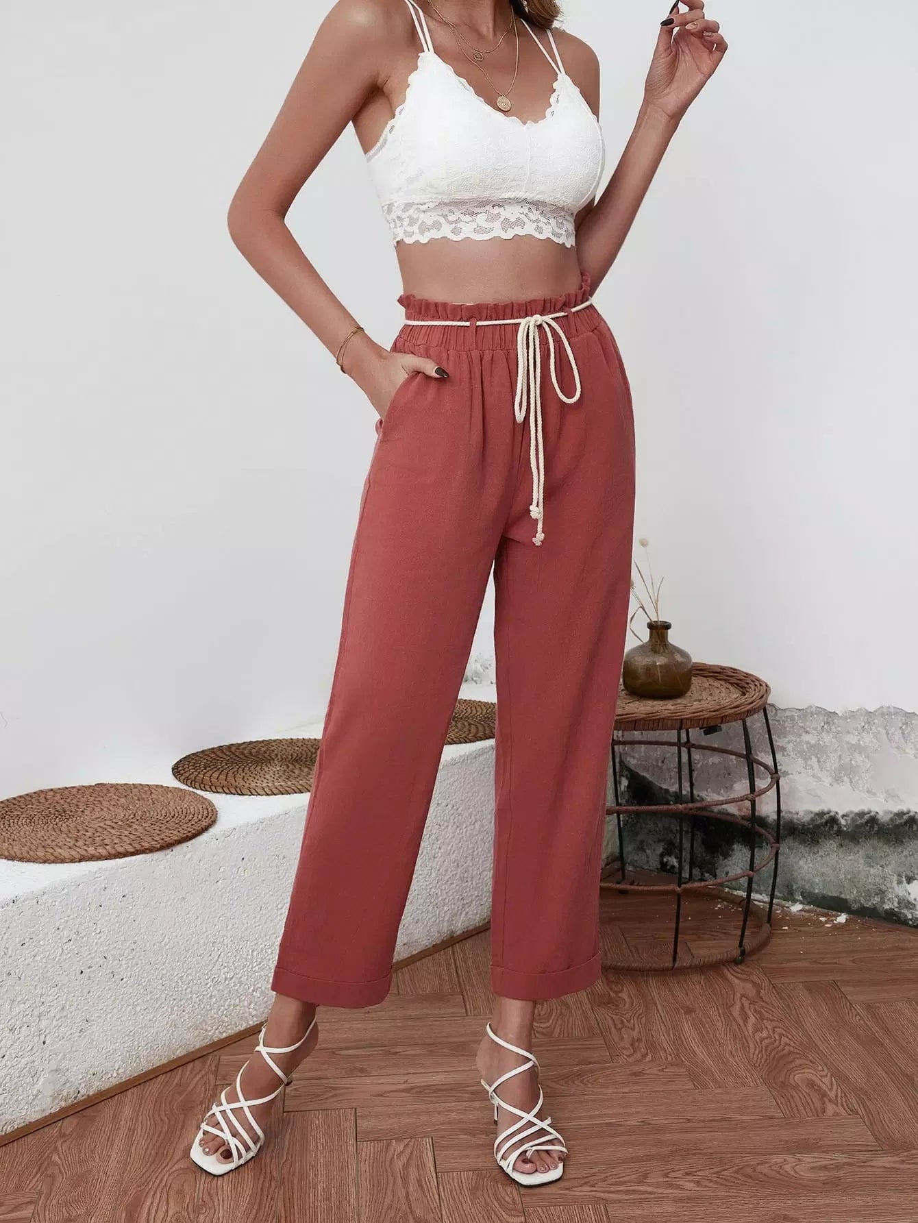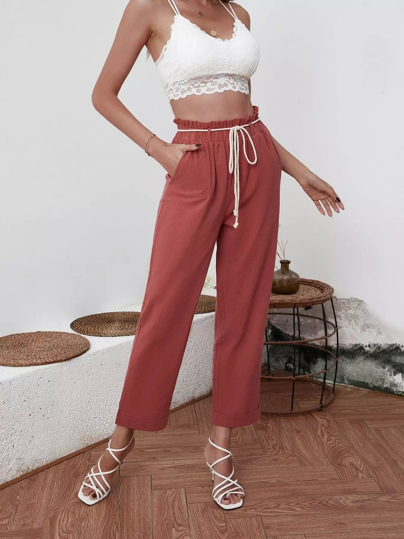 Slant Pocket Paper Bag Waist Pants Without Belt