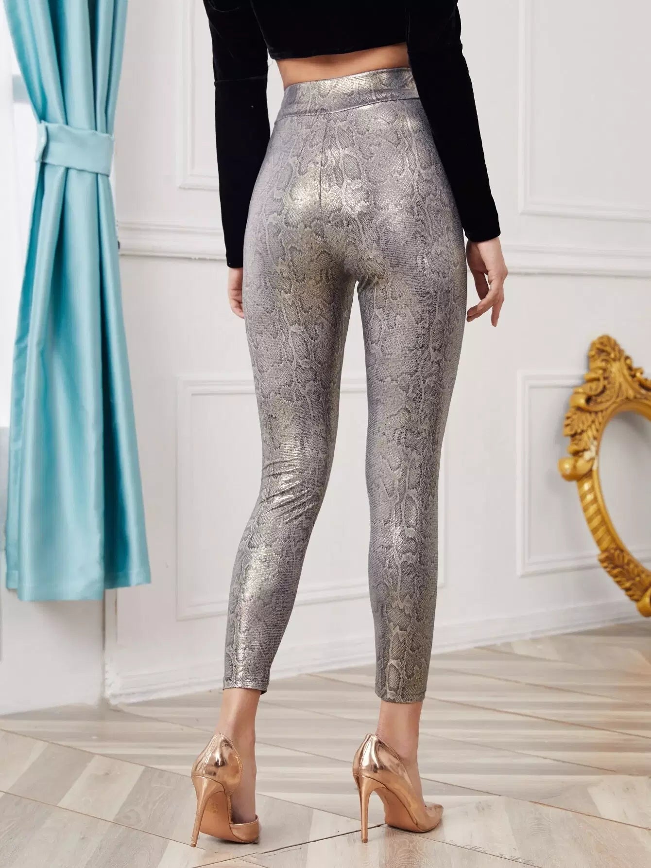 Snakeskin Print Metallic Leggings