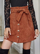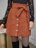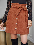 Solid Paper Bag Waist Skirt Without Belt