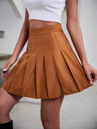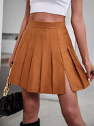 Solid Pleated Split Hem Skirt