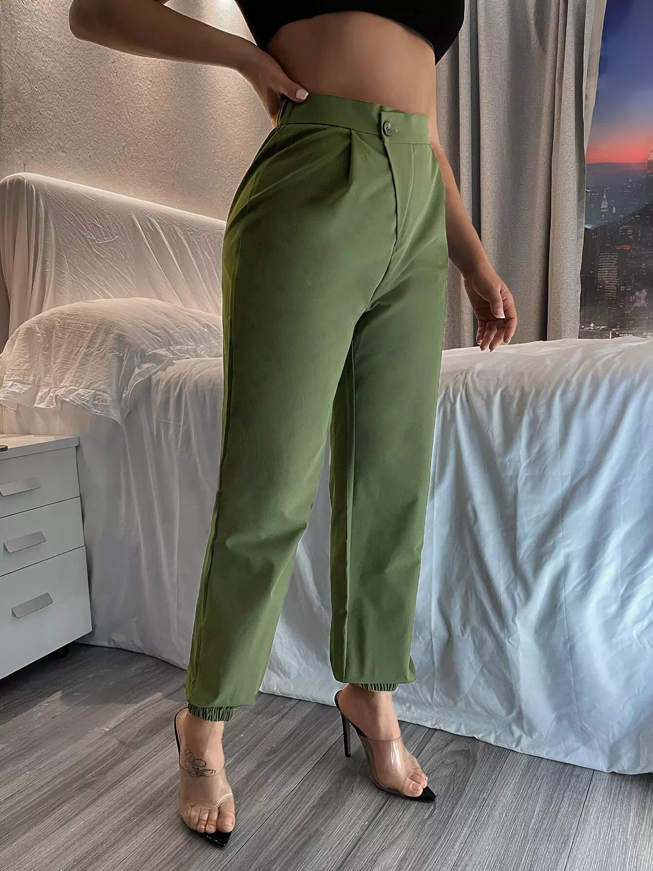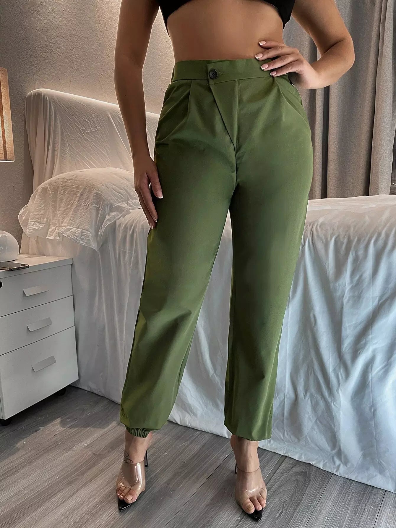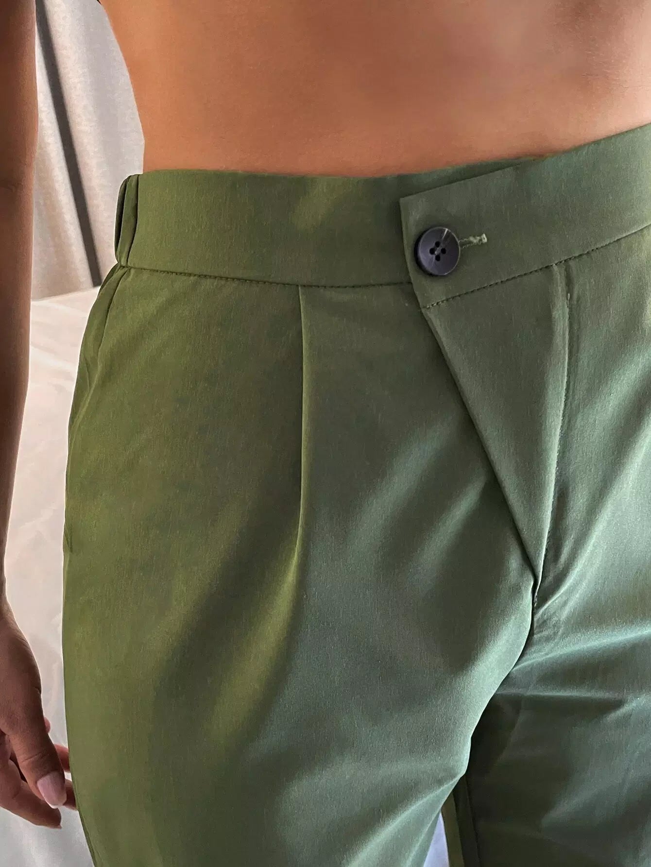 Solid Single Button Tapered Pants