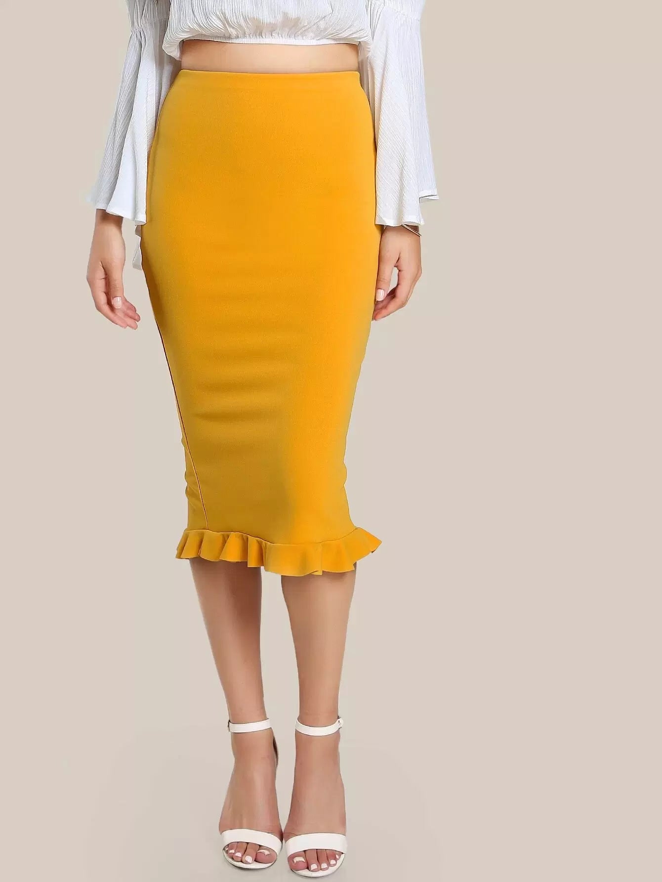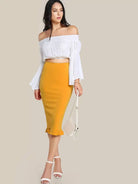 Split Ruffle Hem Pencil Skirt