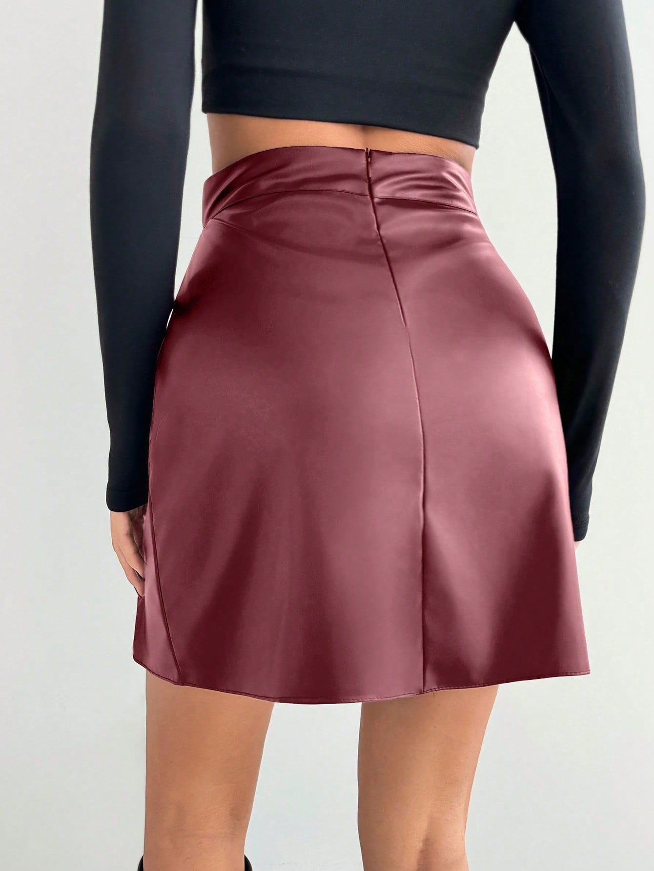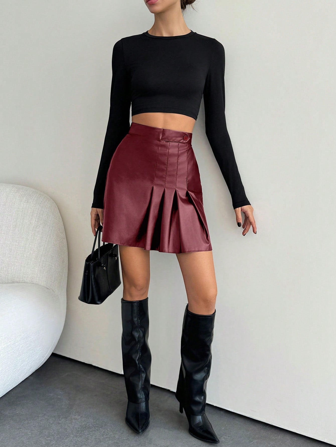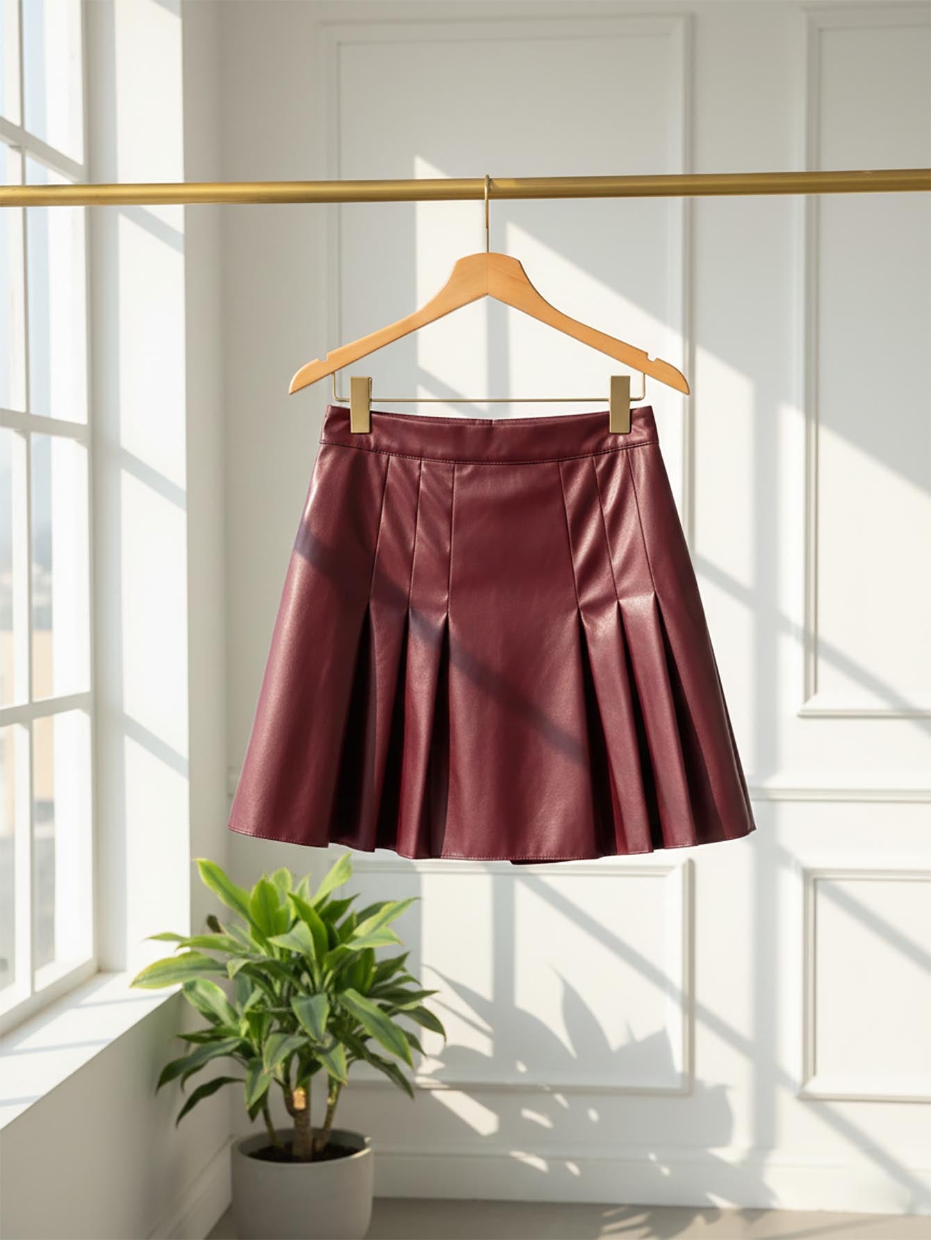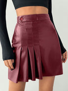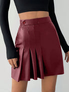Tall Women's Pu Leather Mini Pleated Burgundy Skirt