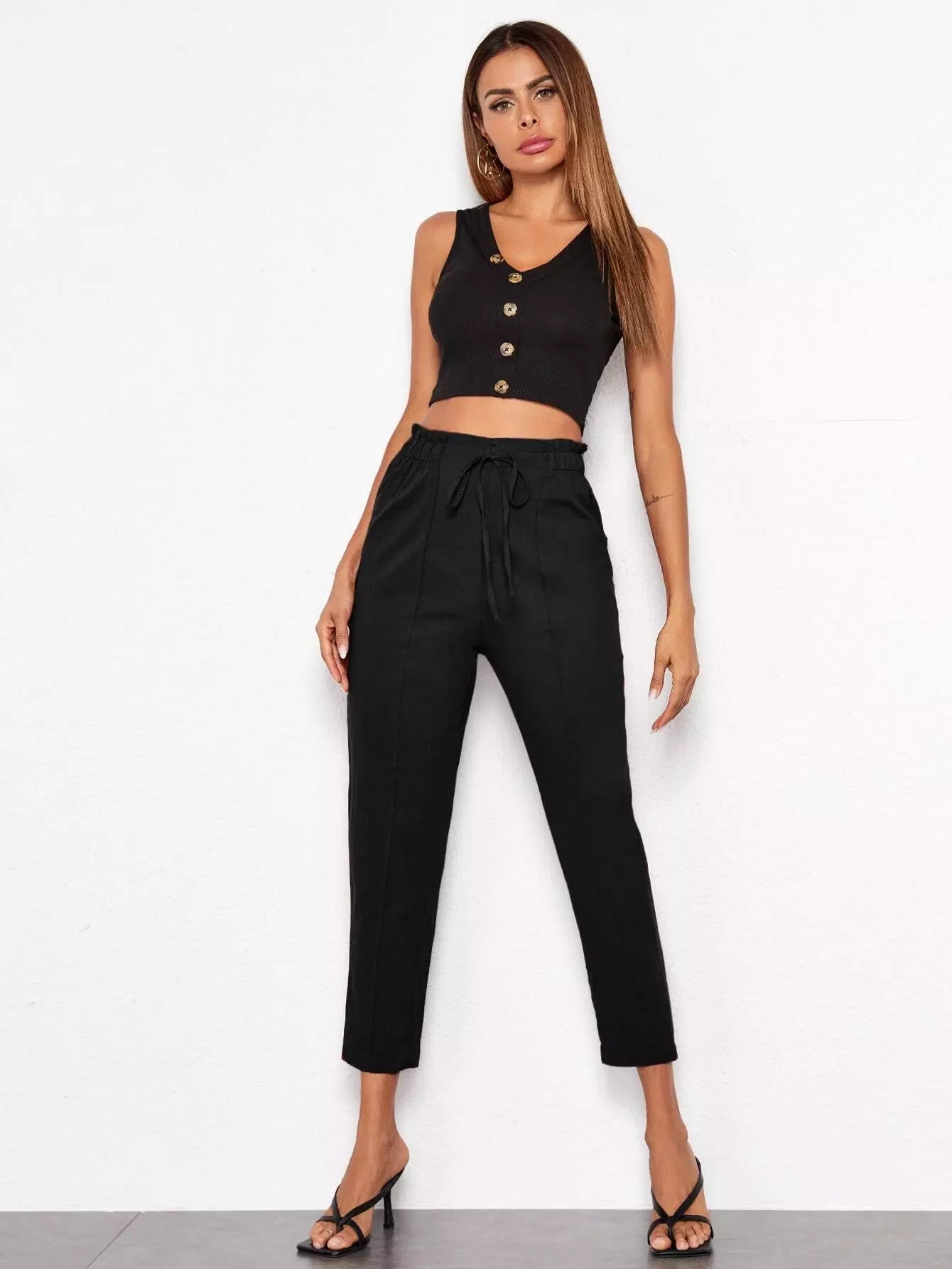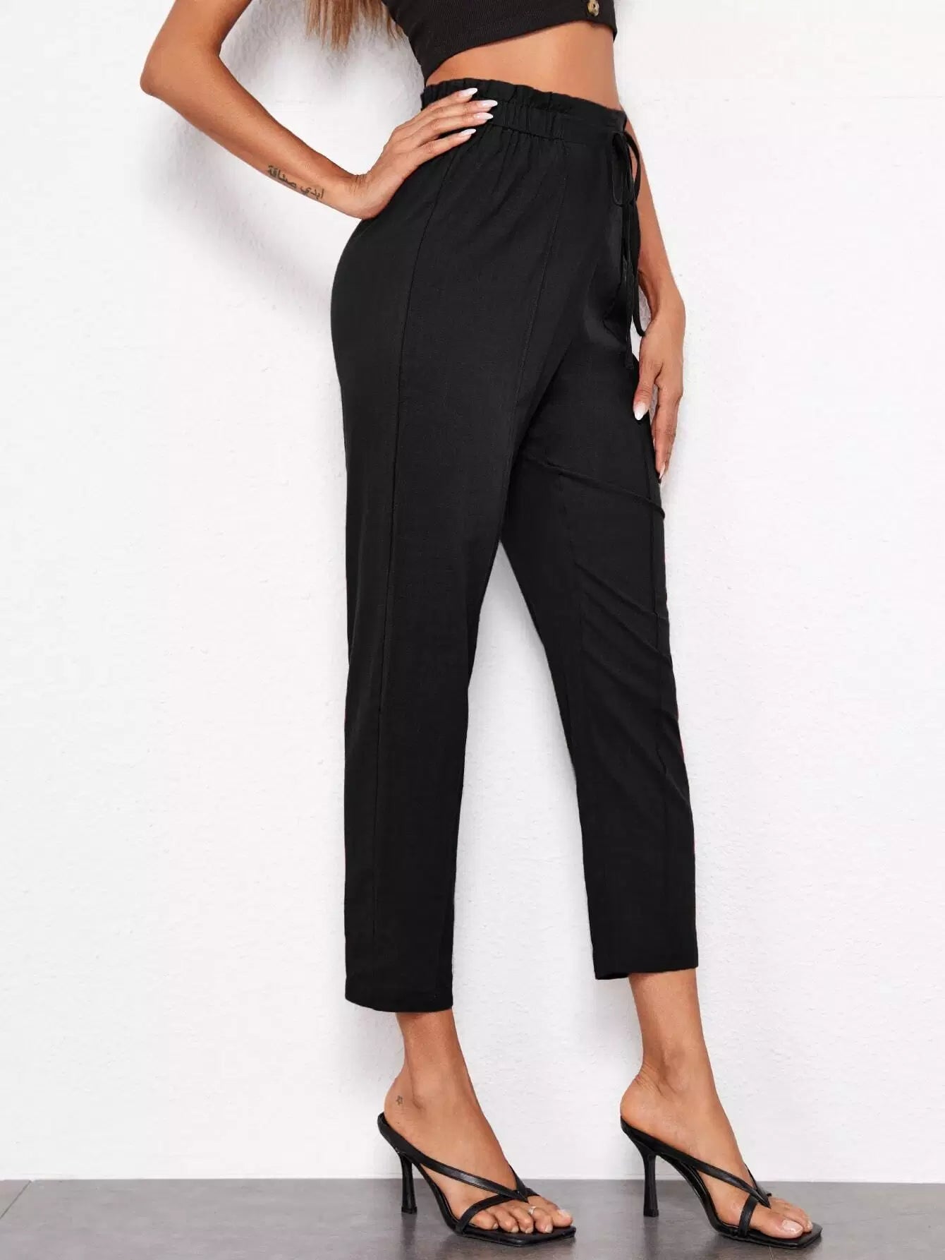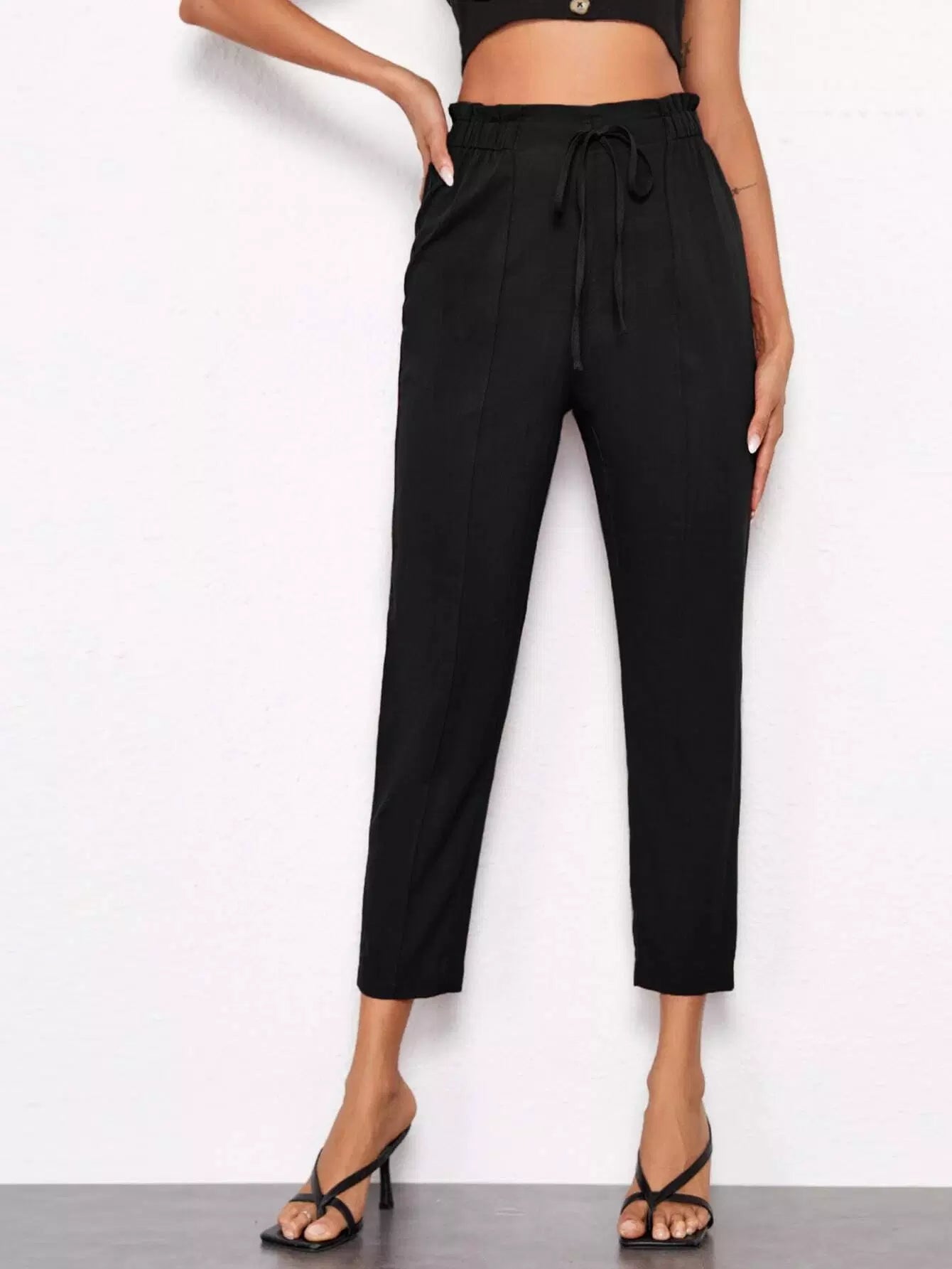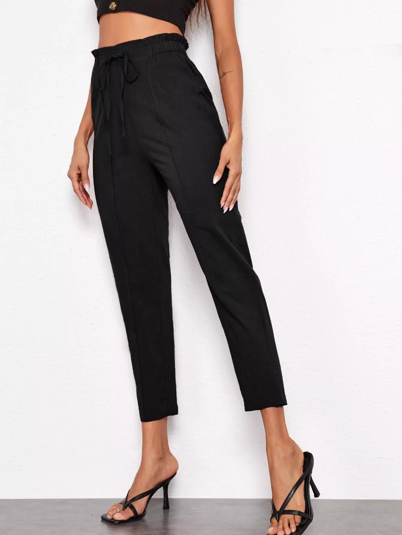 Tied Paperbag Waist Seam Front Pants