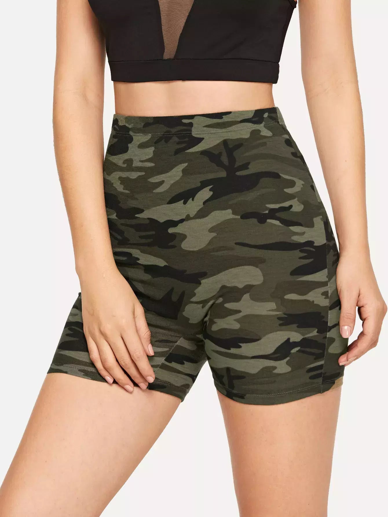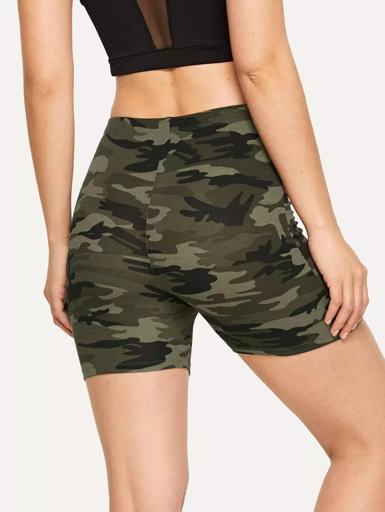 Camo Print High-Rise Biker Shorts
