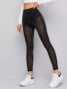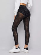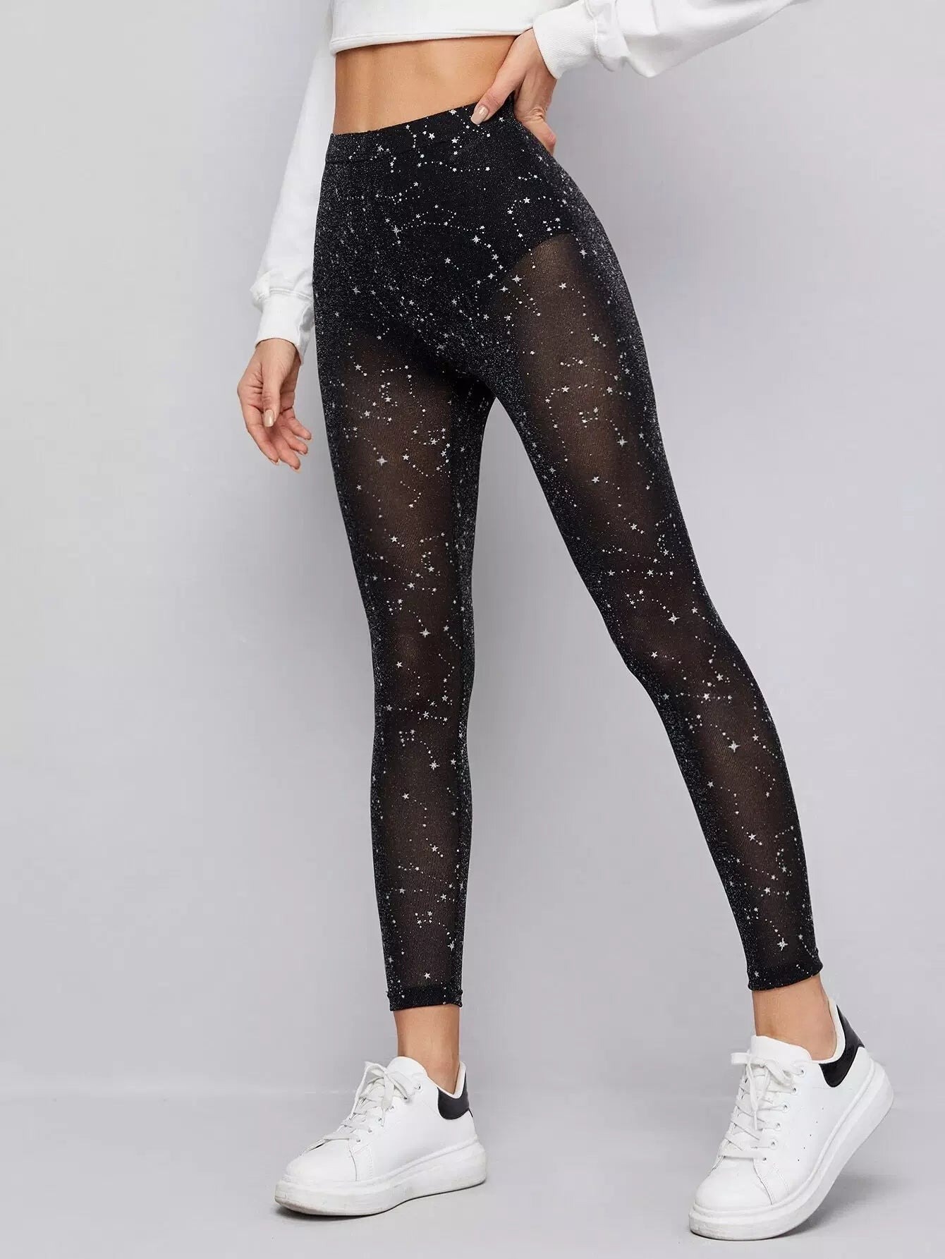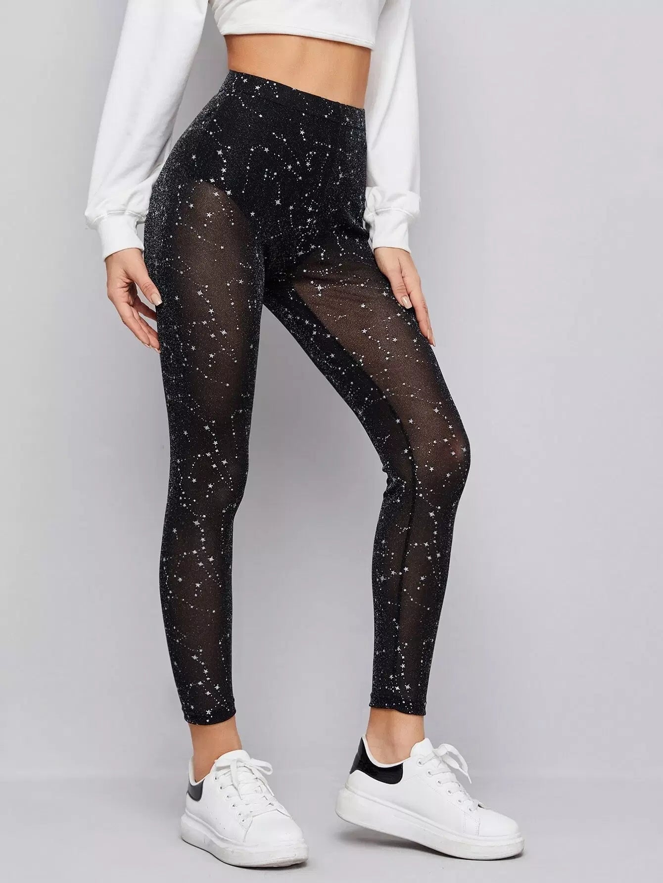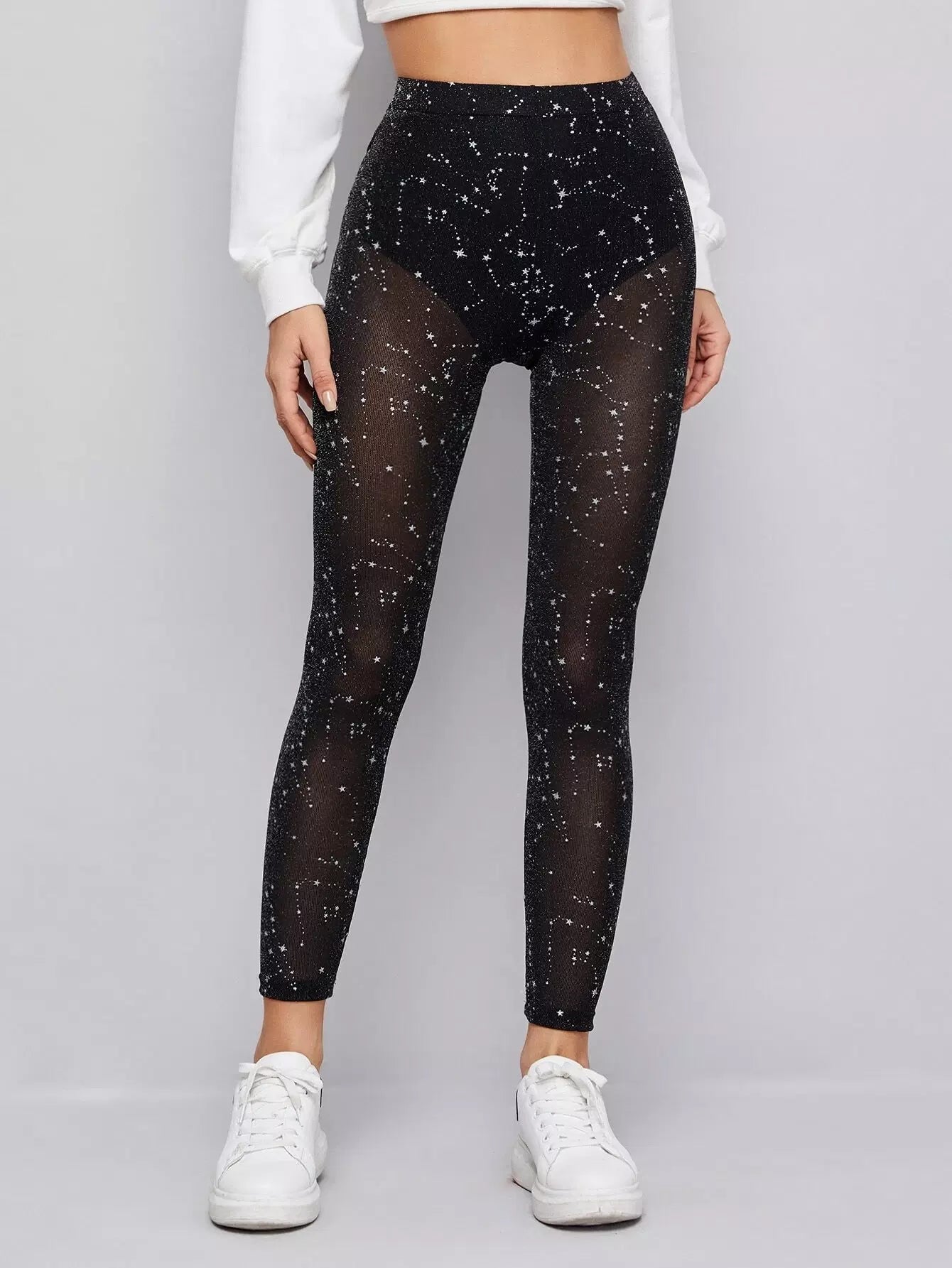Elastic Waist Galaxy Pattern Sheer Mesh Leggings