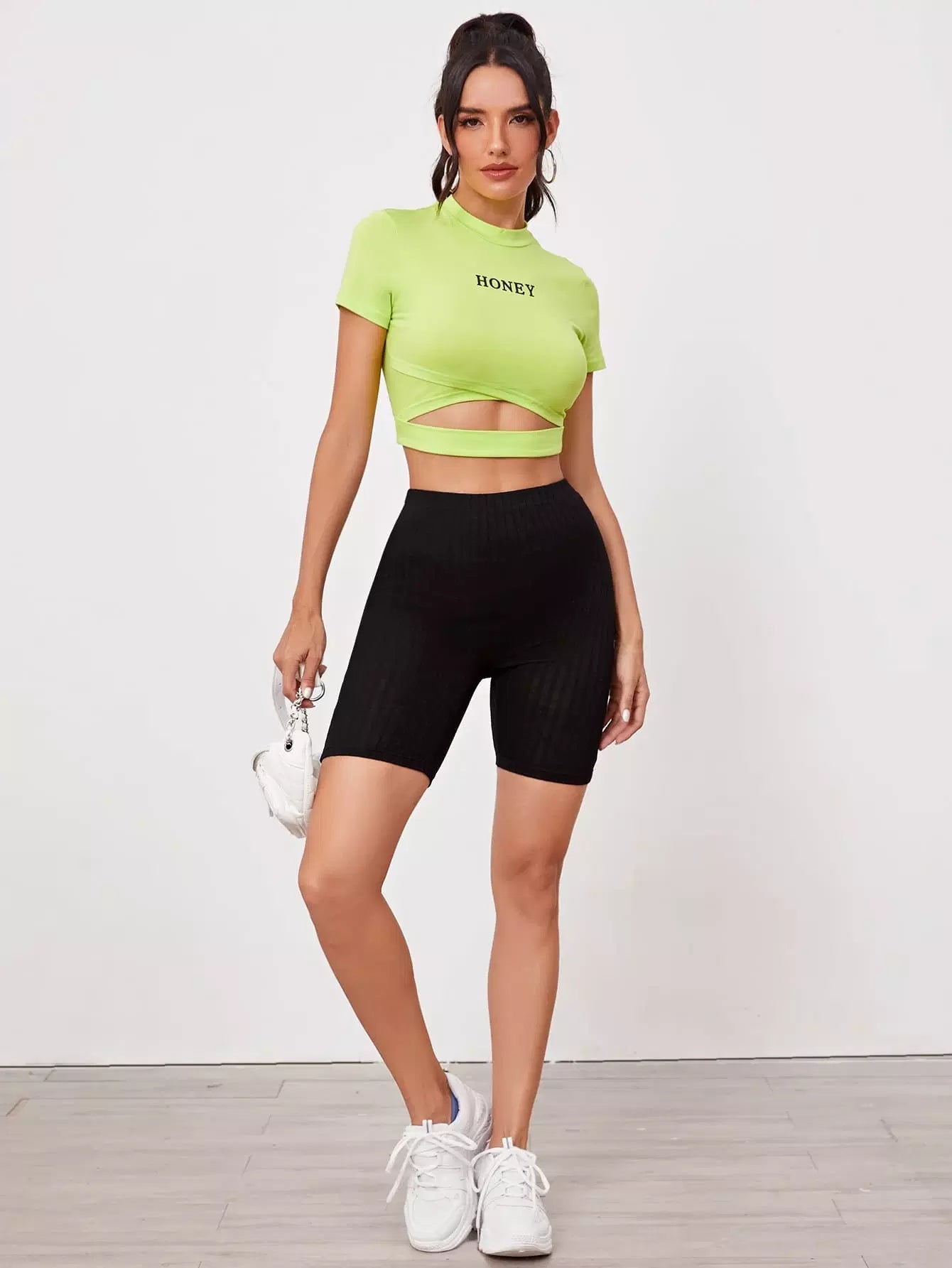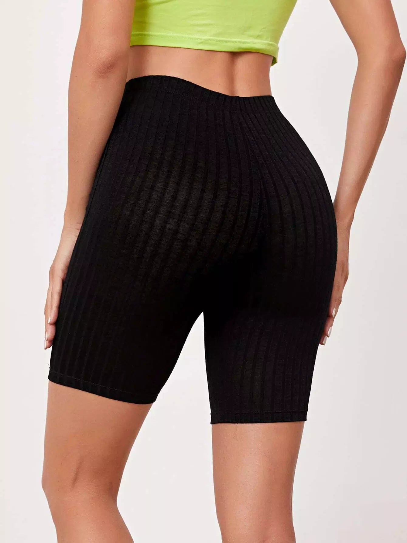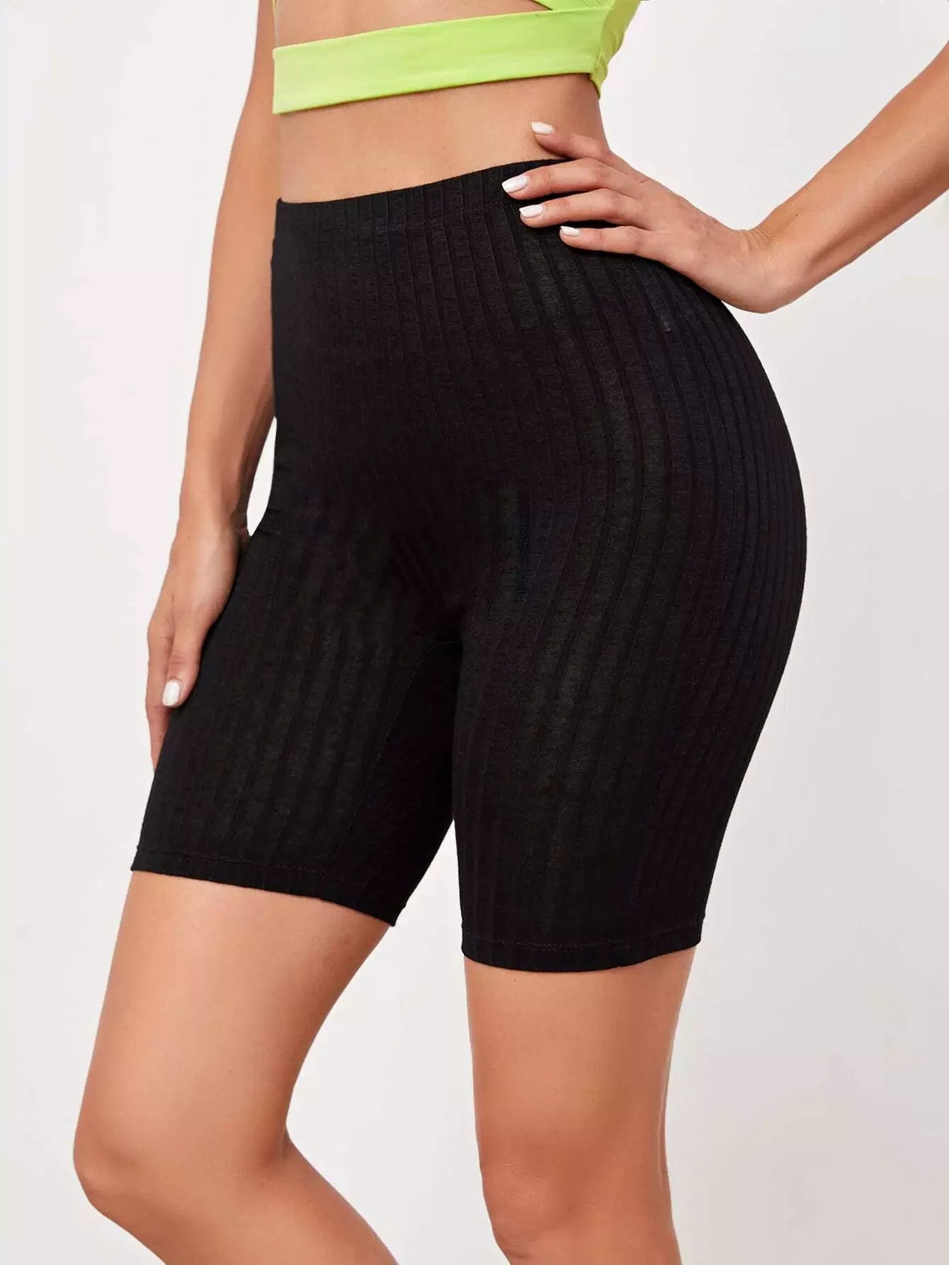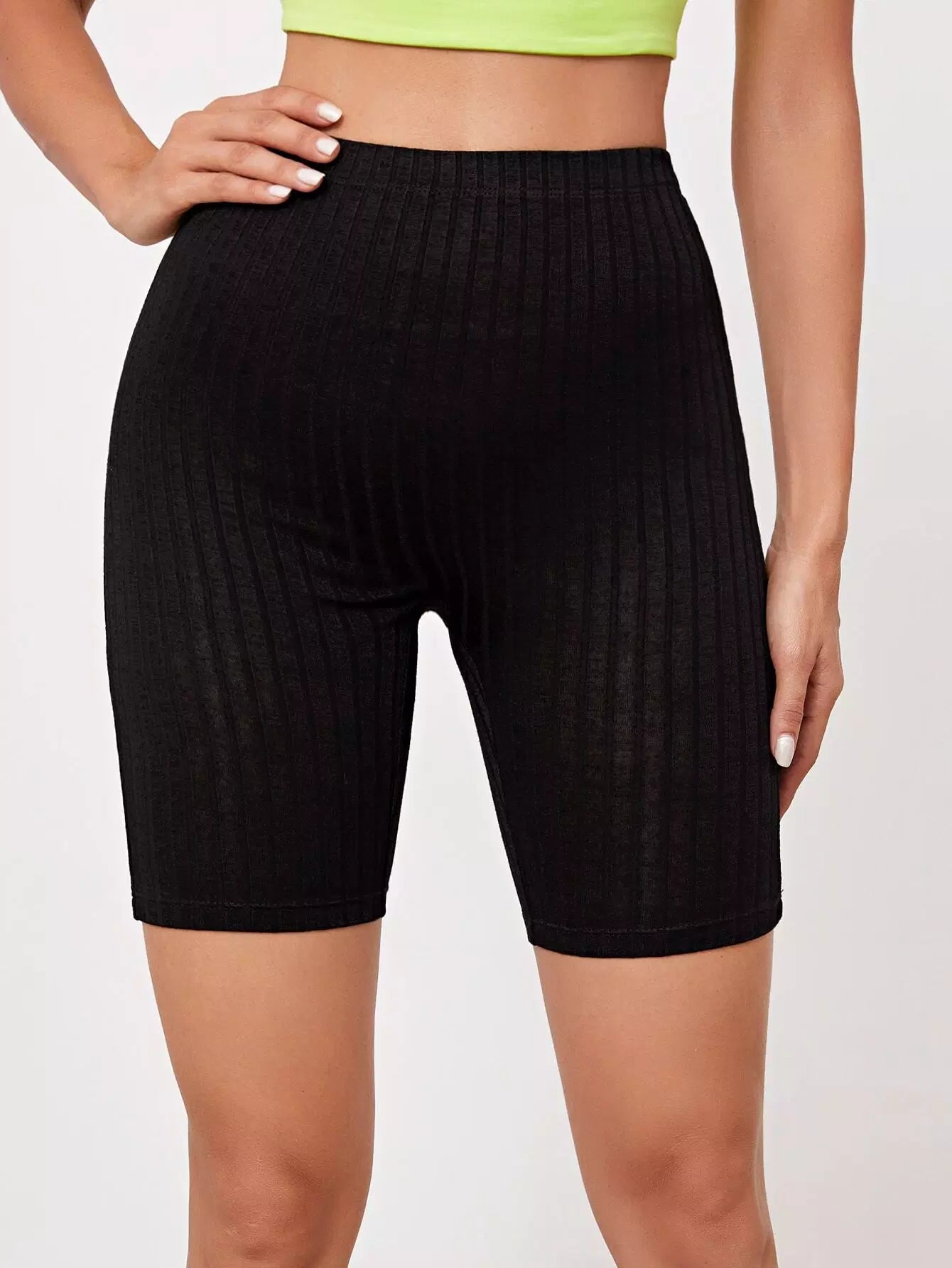 Rib-knit Solid Biker Shorts