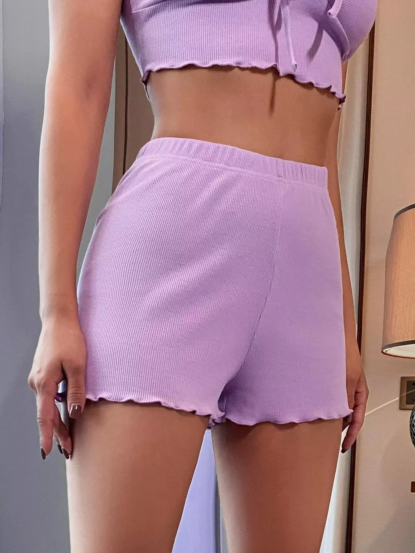 Solid Lettuce Trim Rib-knit Biker Shorts