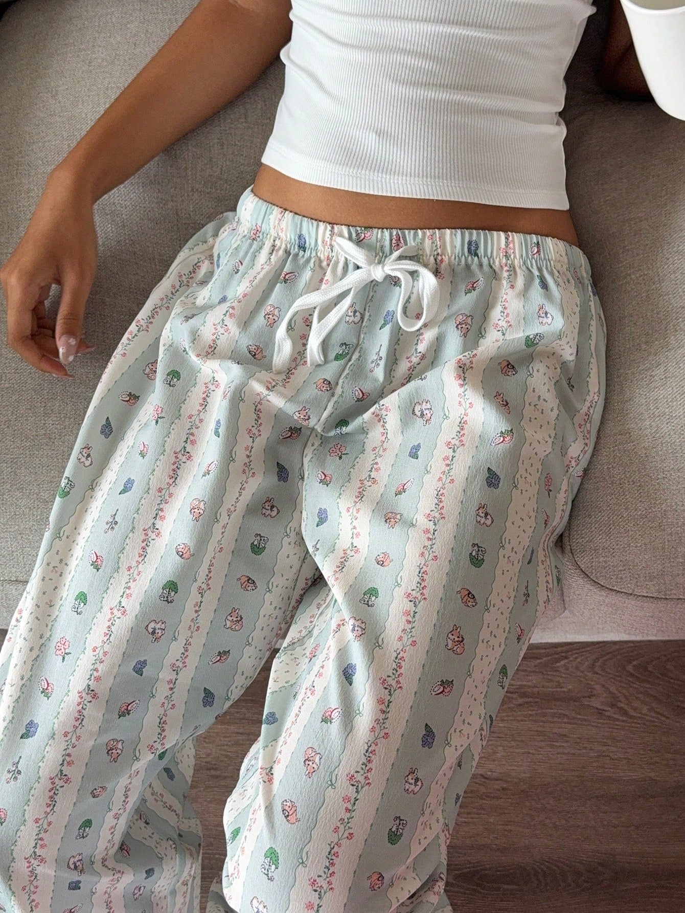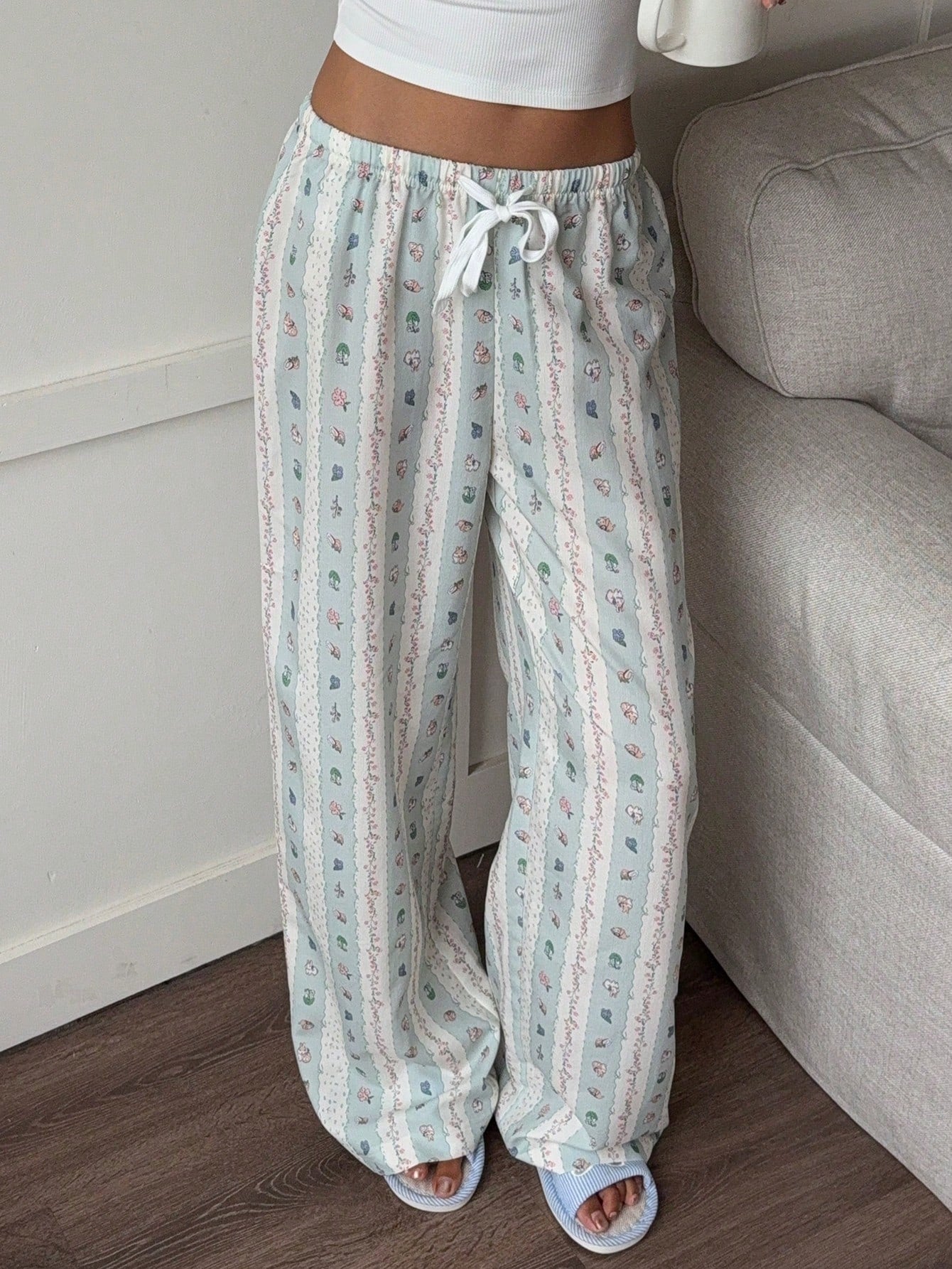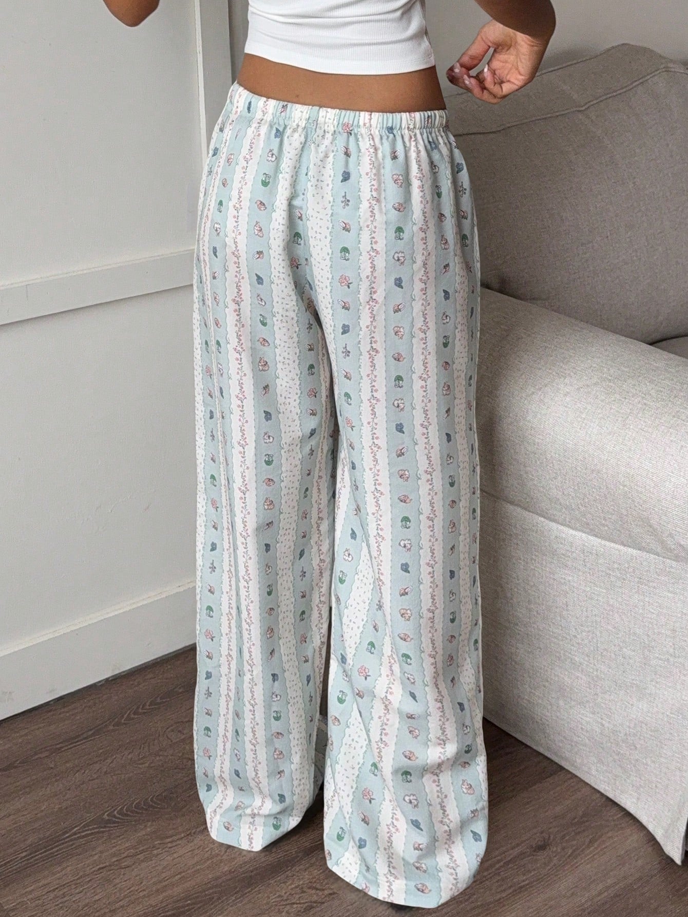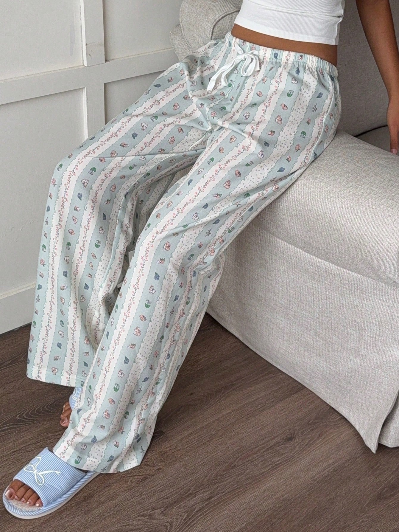 Aloruh New Romantic Stripe Bubble Wrinkle Print Cute Cartoon Casual Home Comfortable Lounge Pants