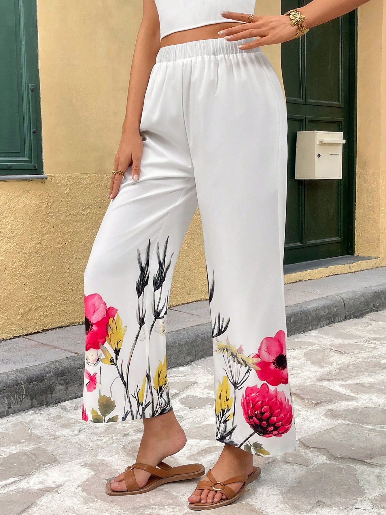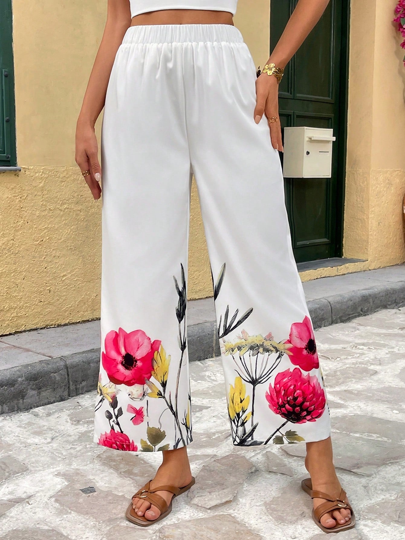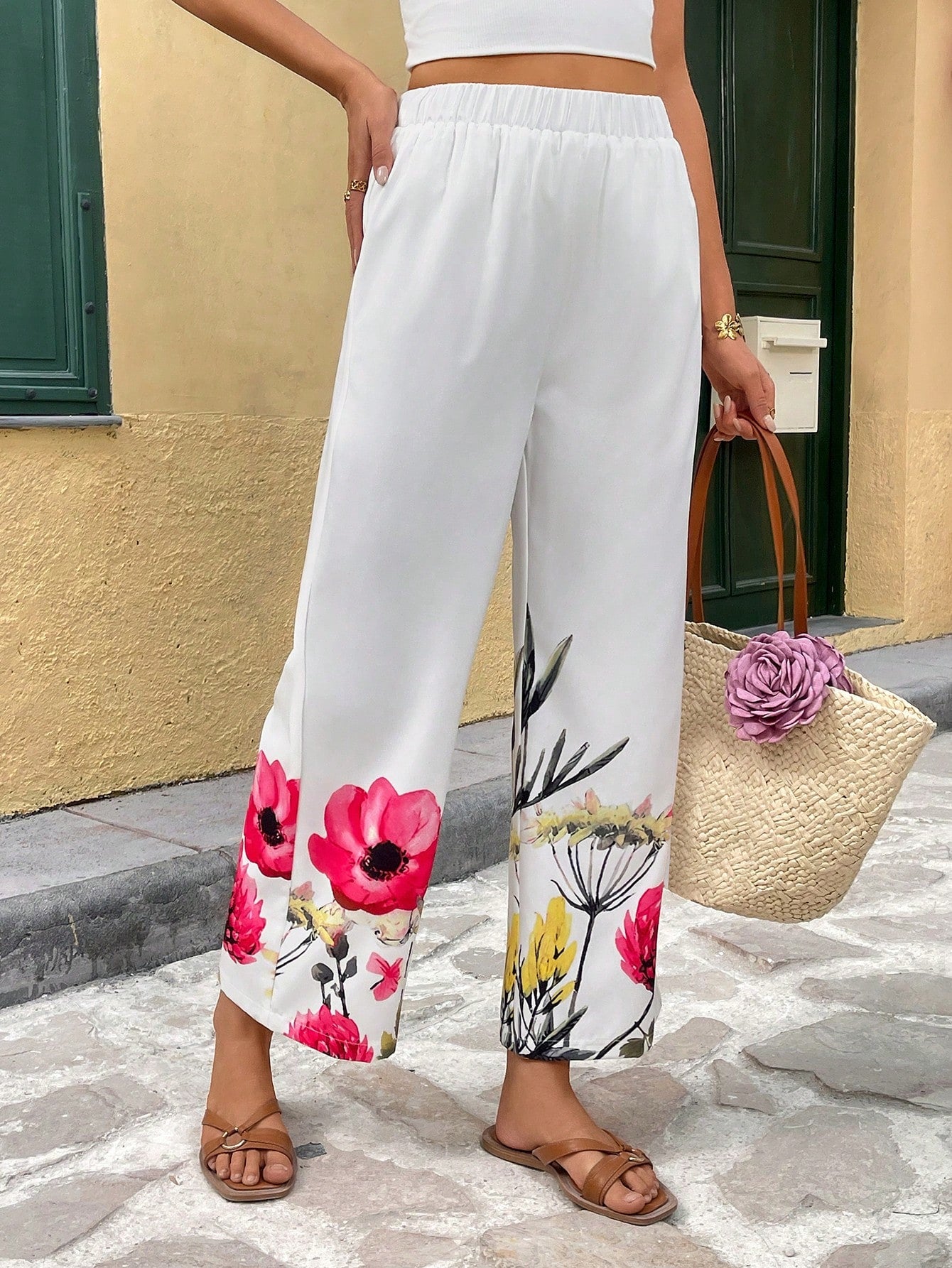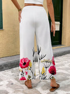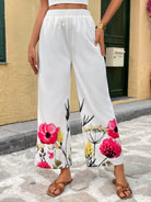 Breezaya Women's Vacation Casual Placement Floral Print Elastic Waist Straight Pants, Spring/Summer Fall