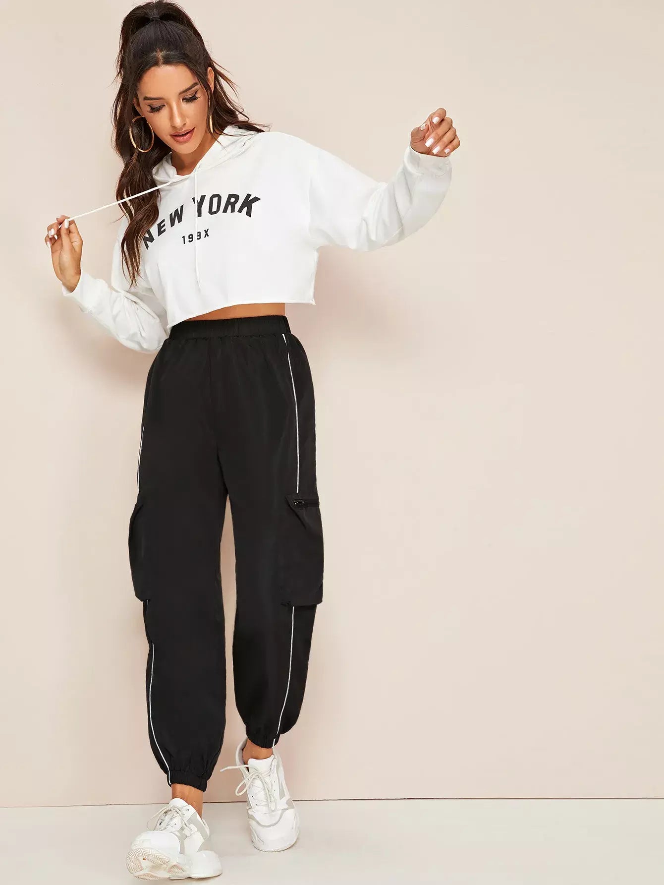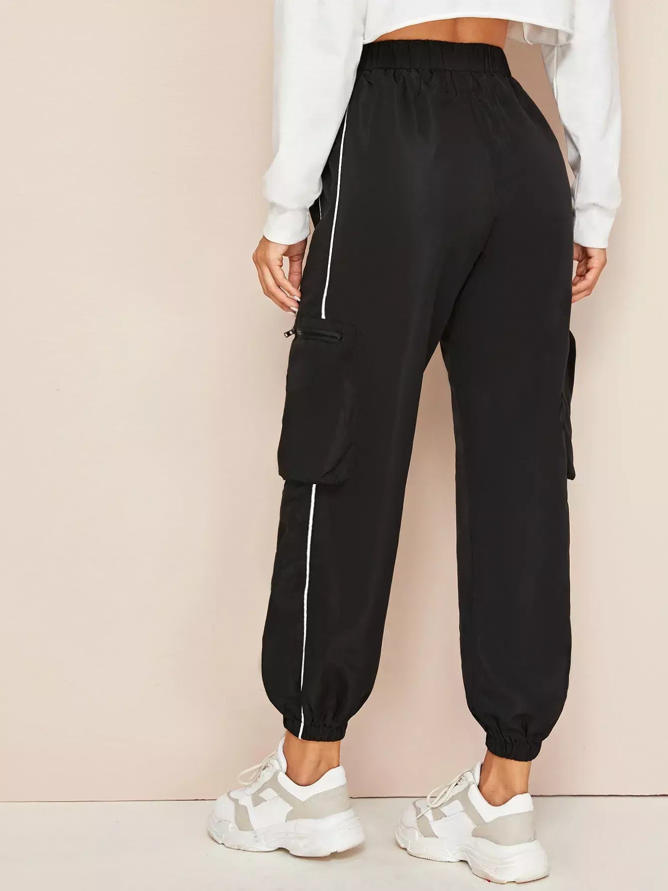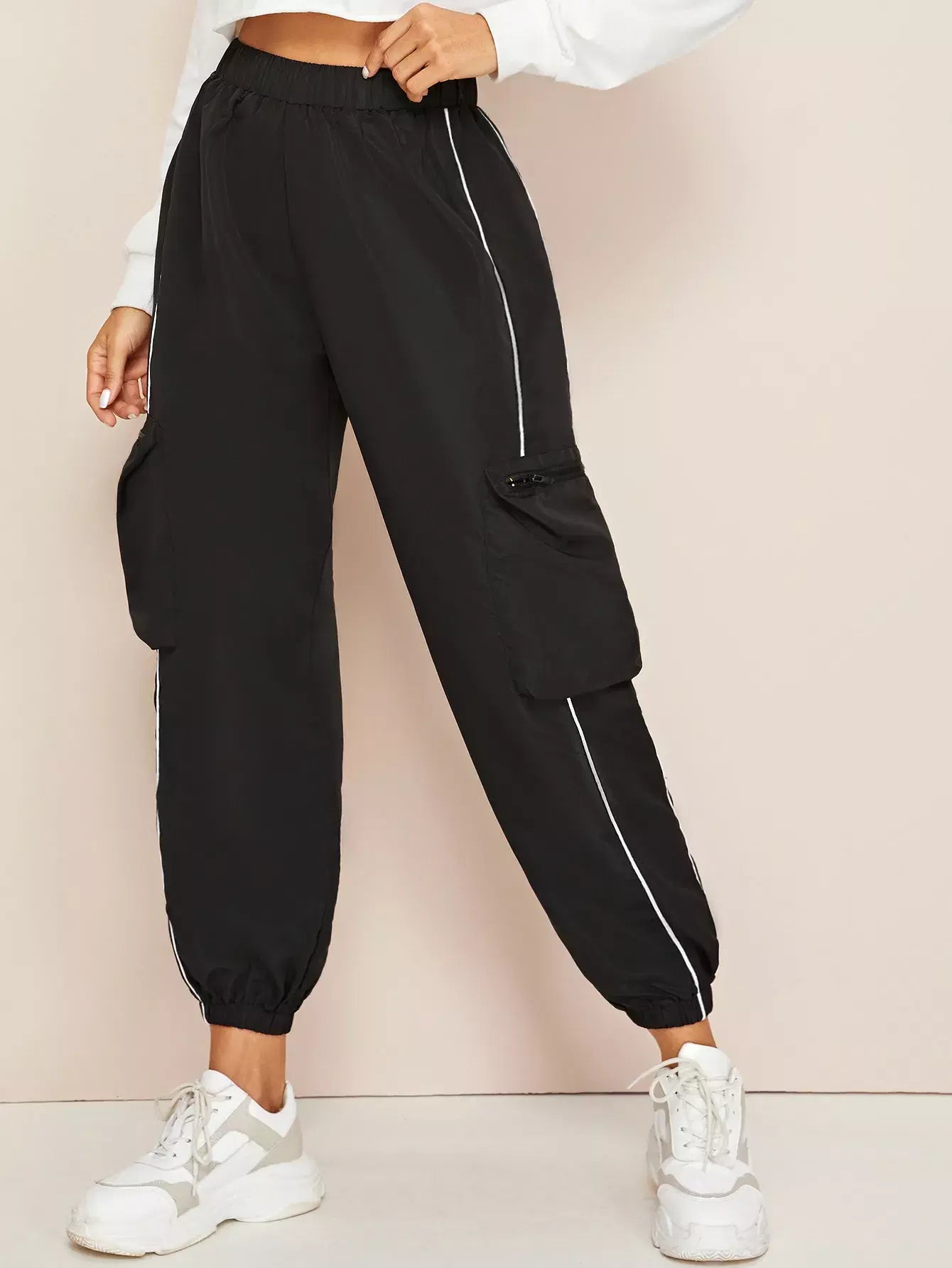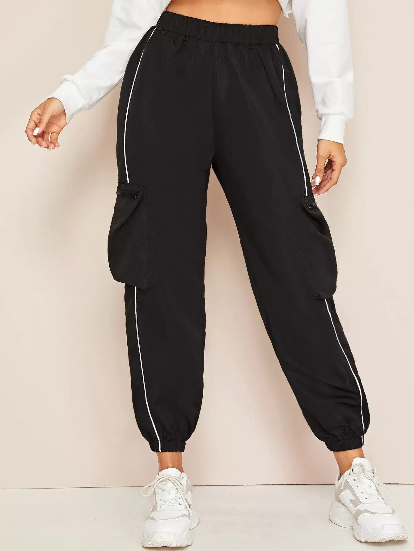 Contrast Piping Windbreaker Cargo Joggers