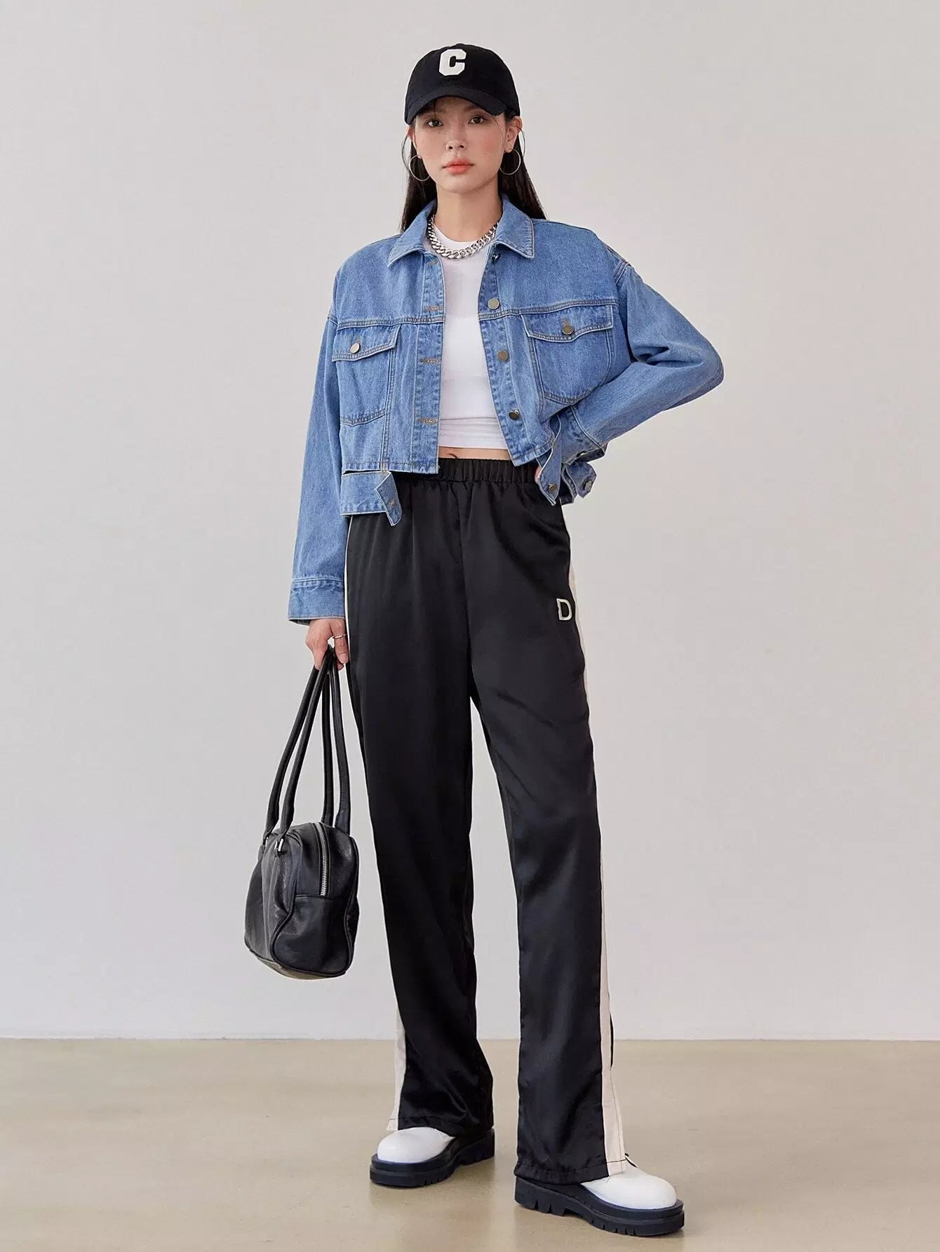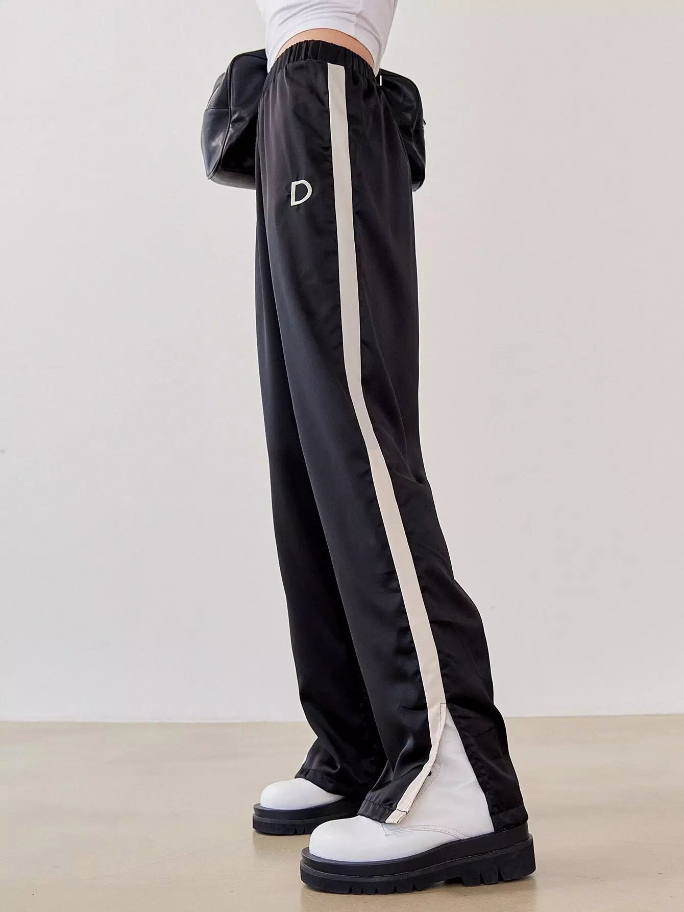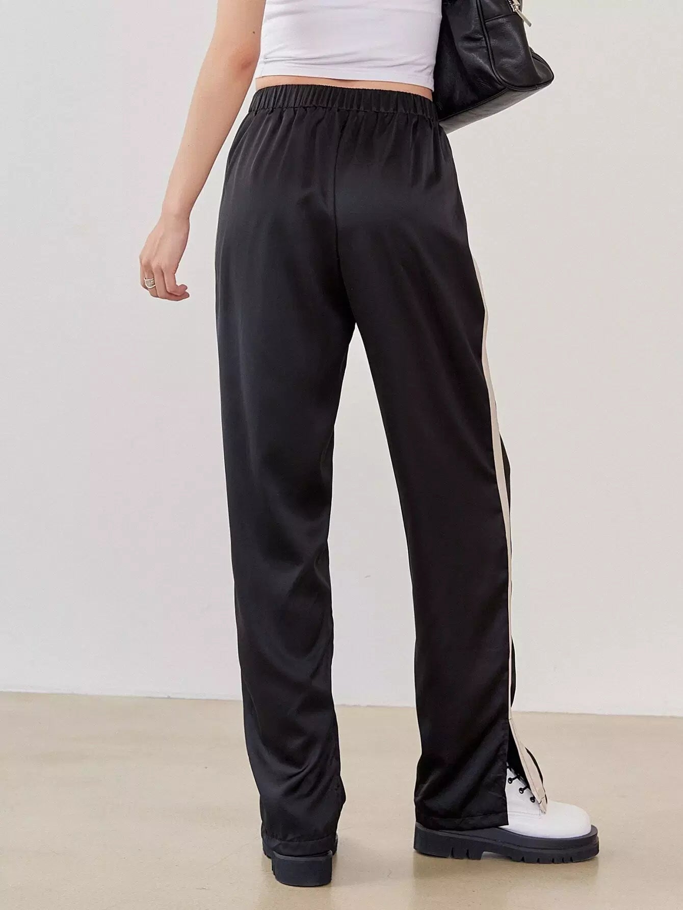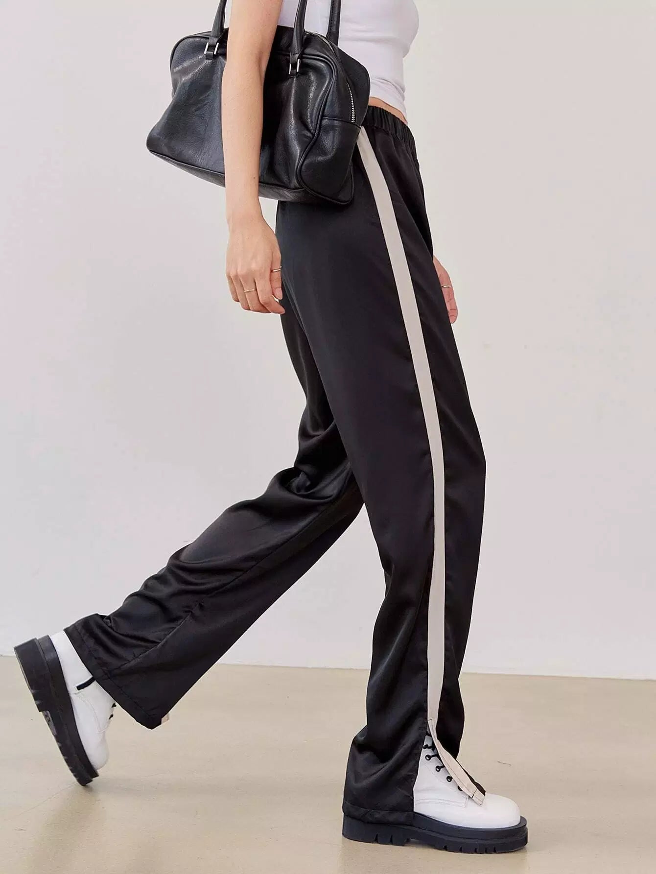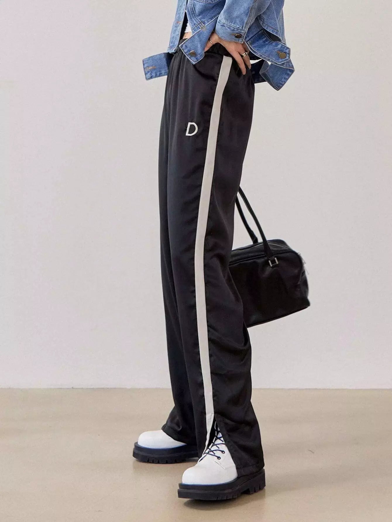 Contrast Sideseam Split Hem Mopping Pants
