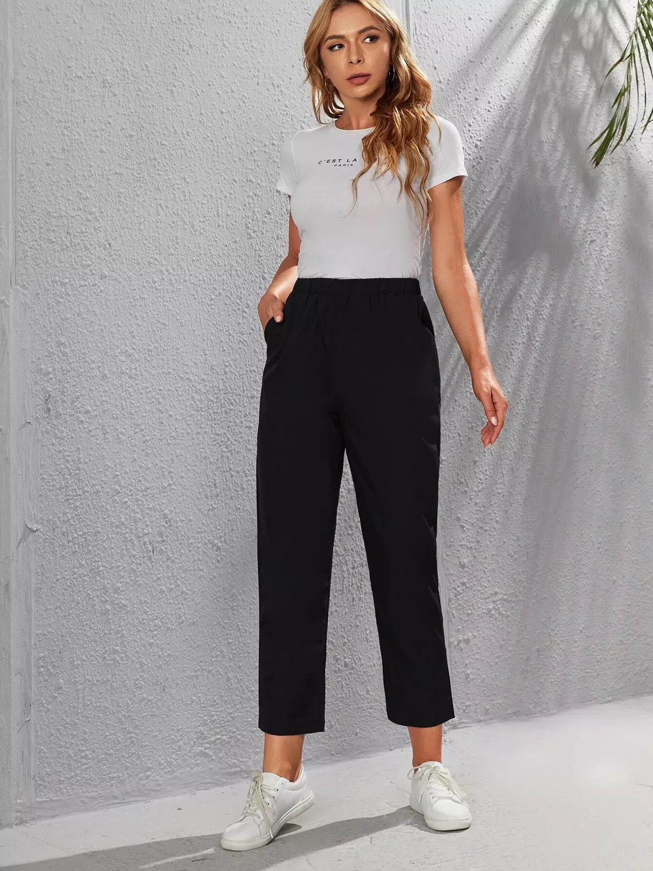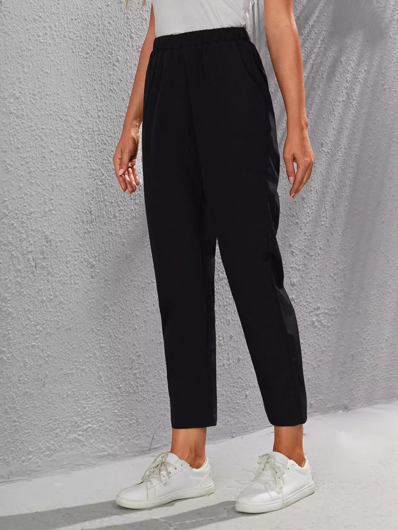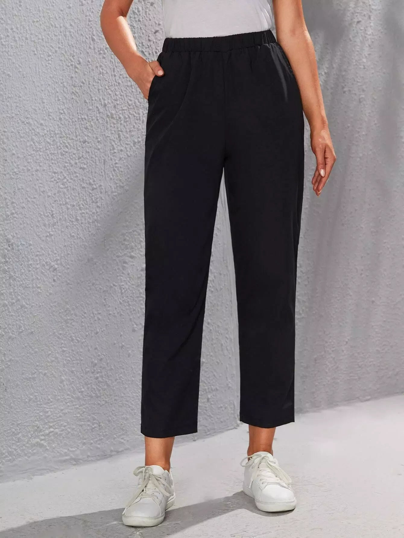 Elastic Waist Slant Pocket Pants
