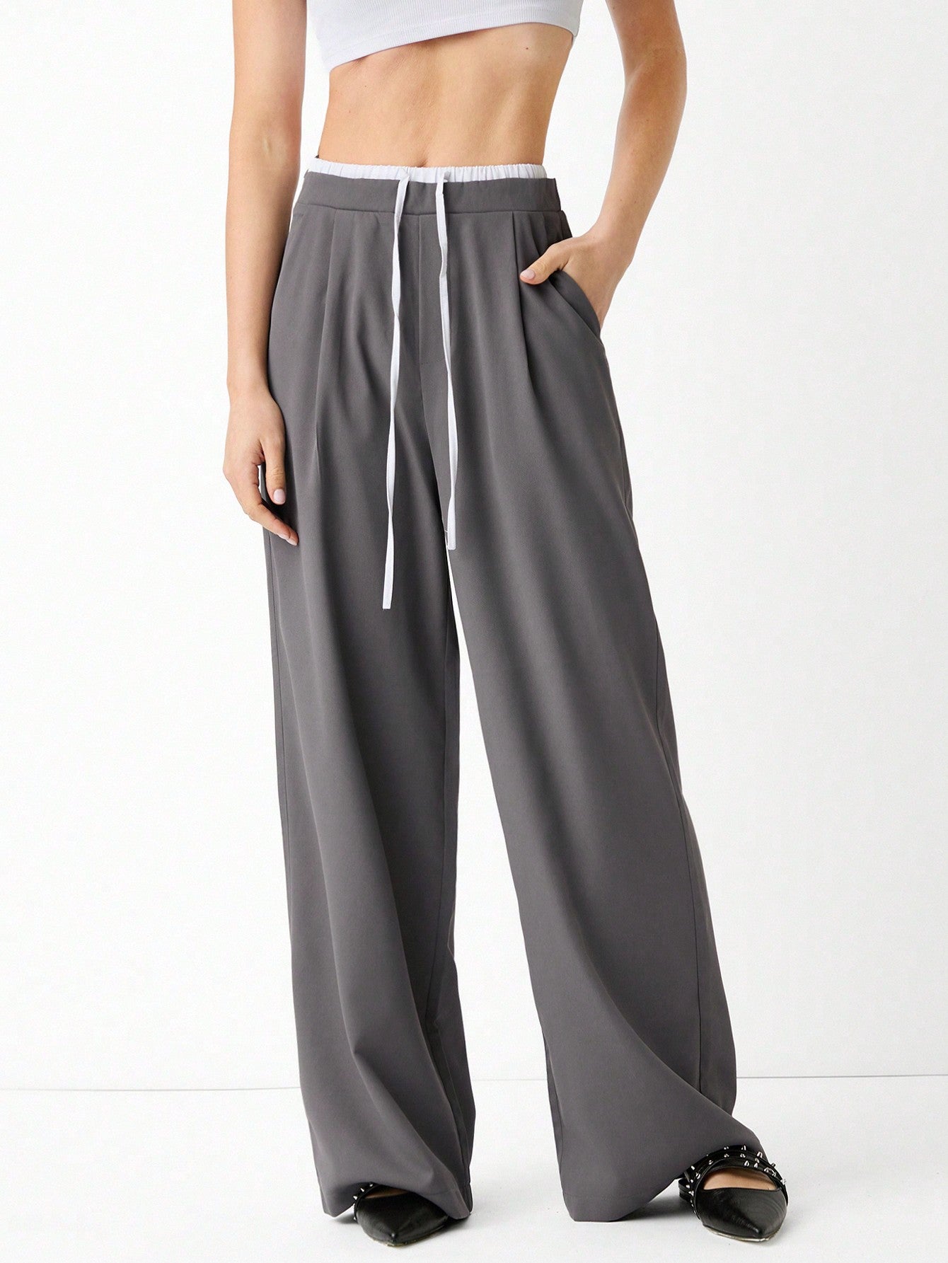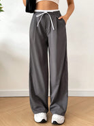 EZwear Women Fashionable And Casual Wide-Leg Trousers With Tie-Up Waist Design