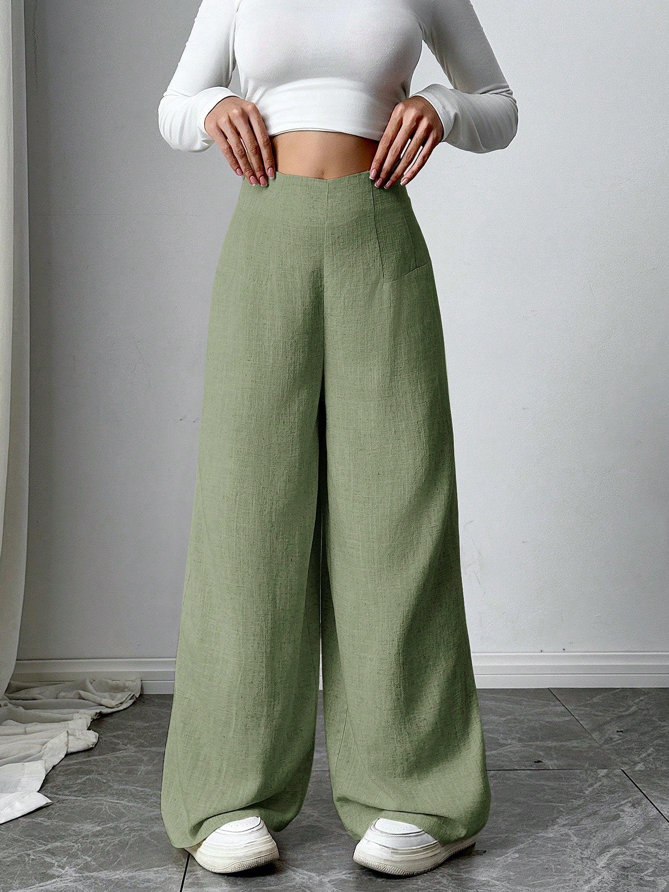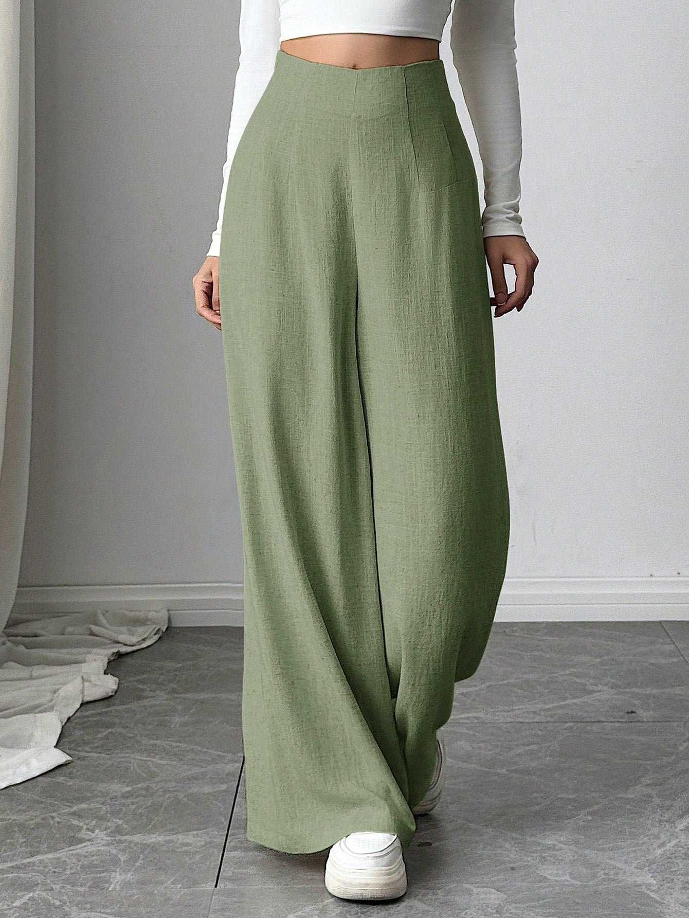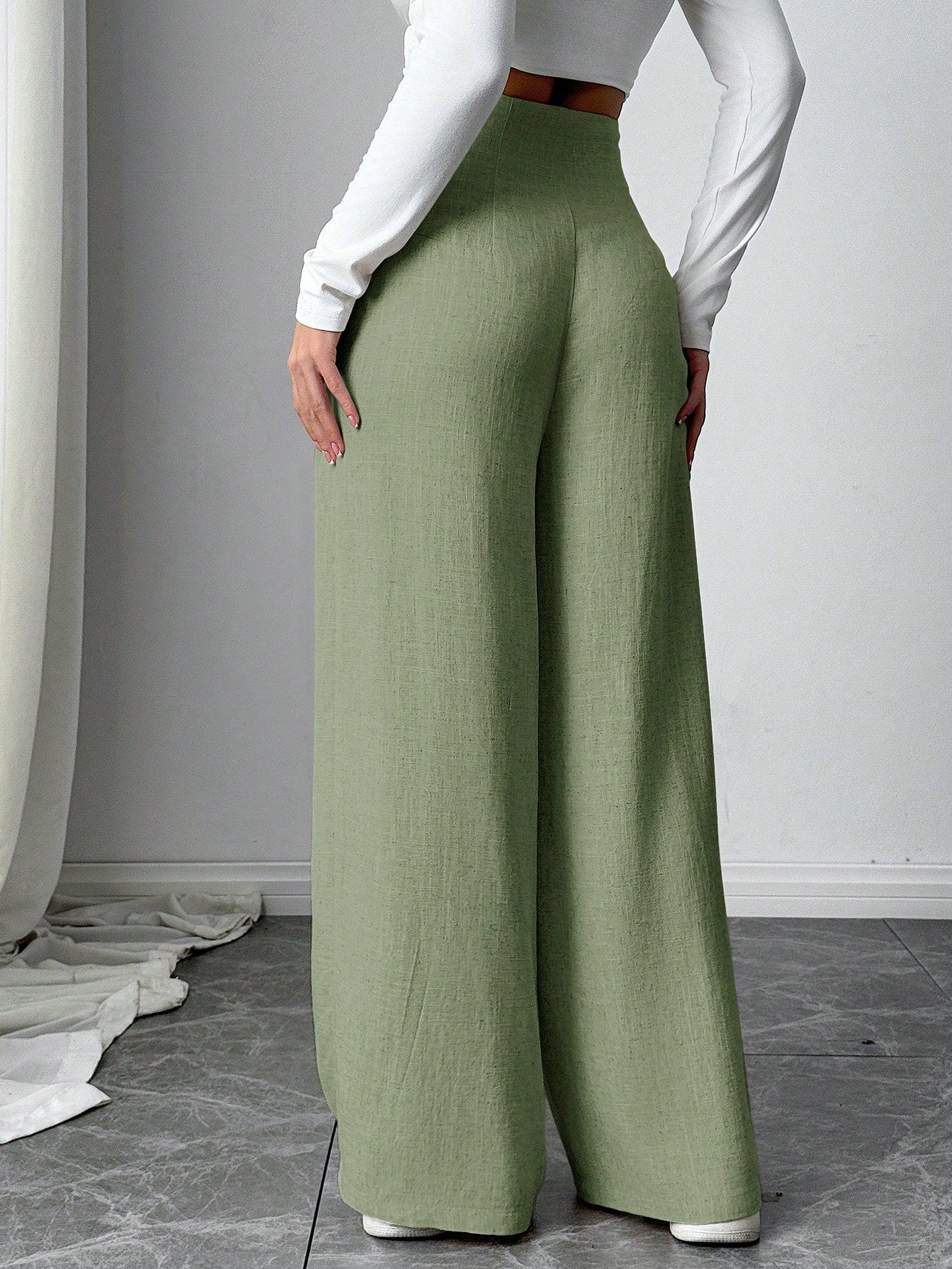 Firerie Casual Linen Blend High Waisted Loose Leg Straight Pants, Comfortable For Commuting, Office,