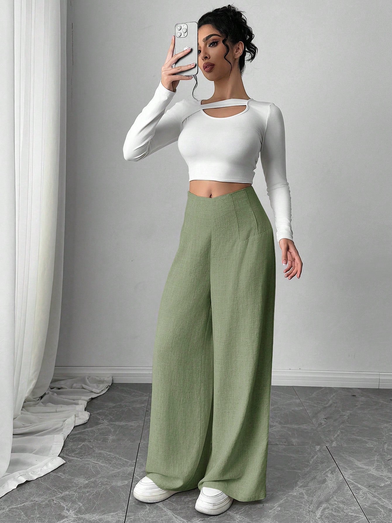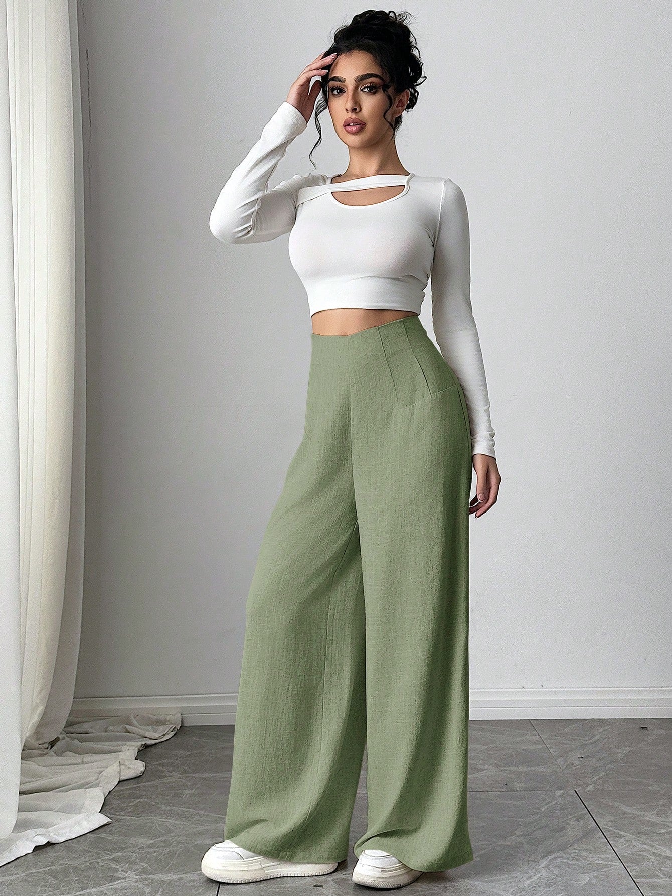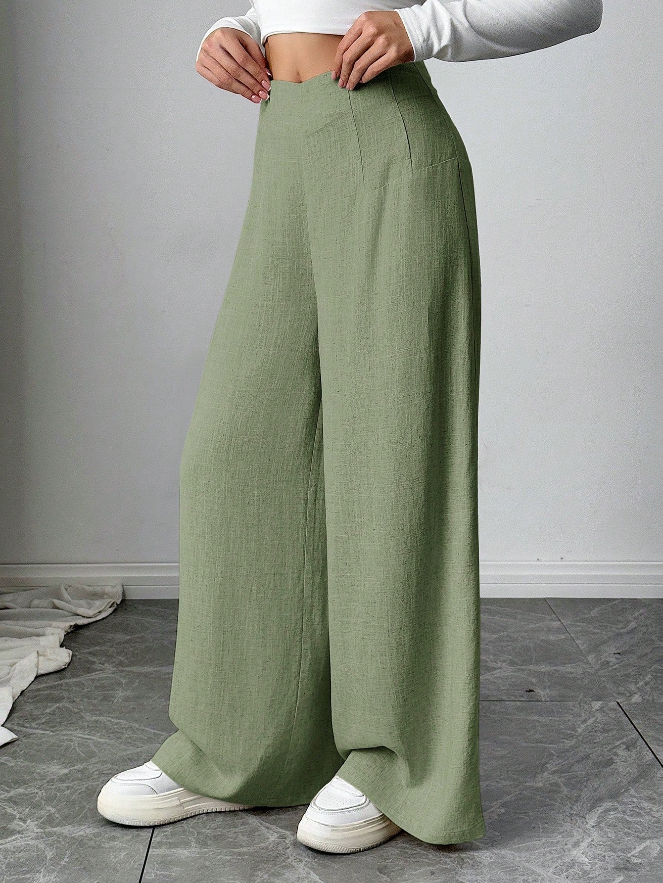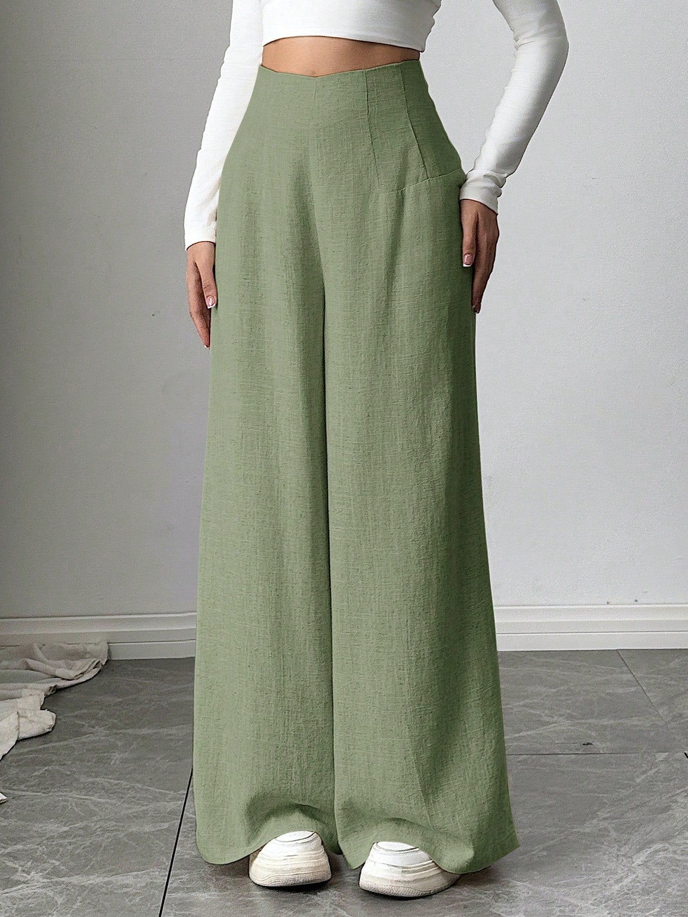 Firerie Casual Linen Blend High Waisted Loose Leg Straight Pants, Comfortable For Commuting, Office,
