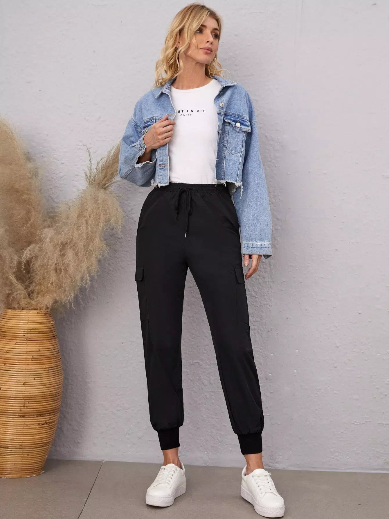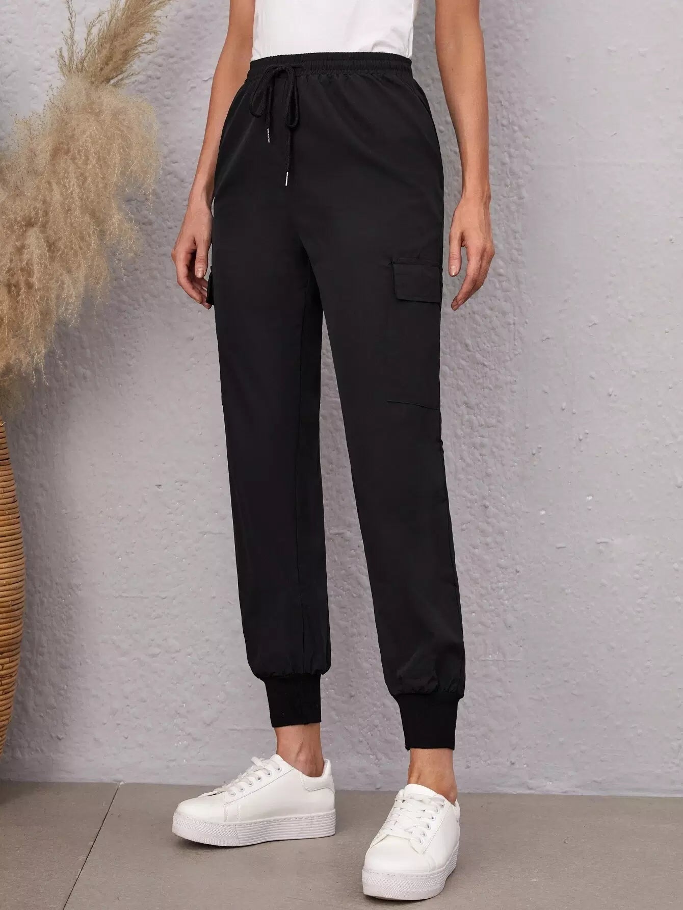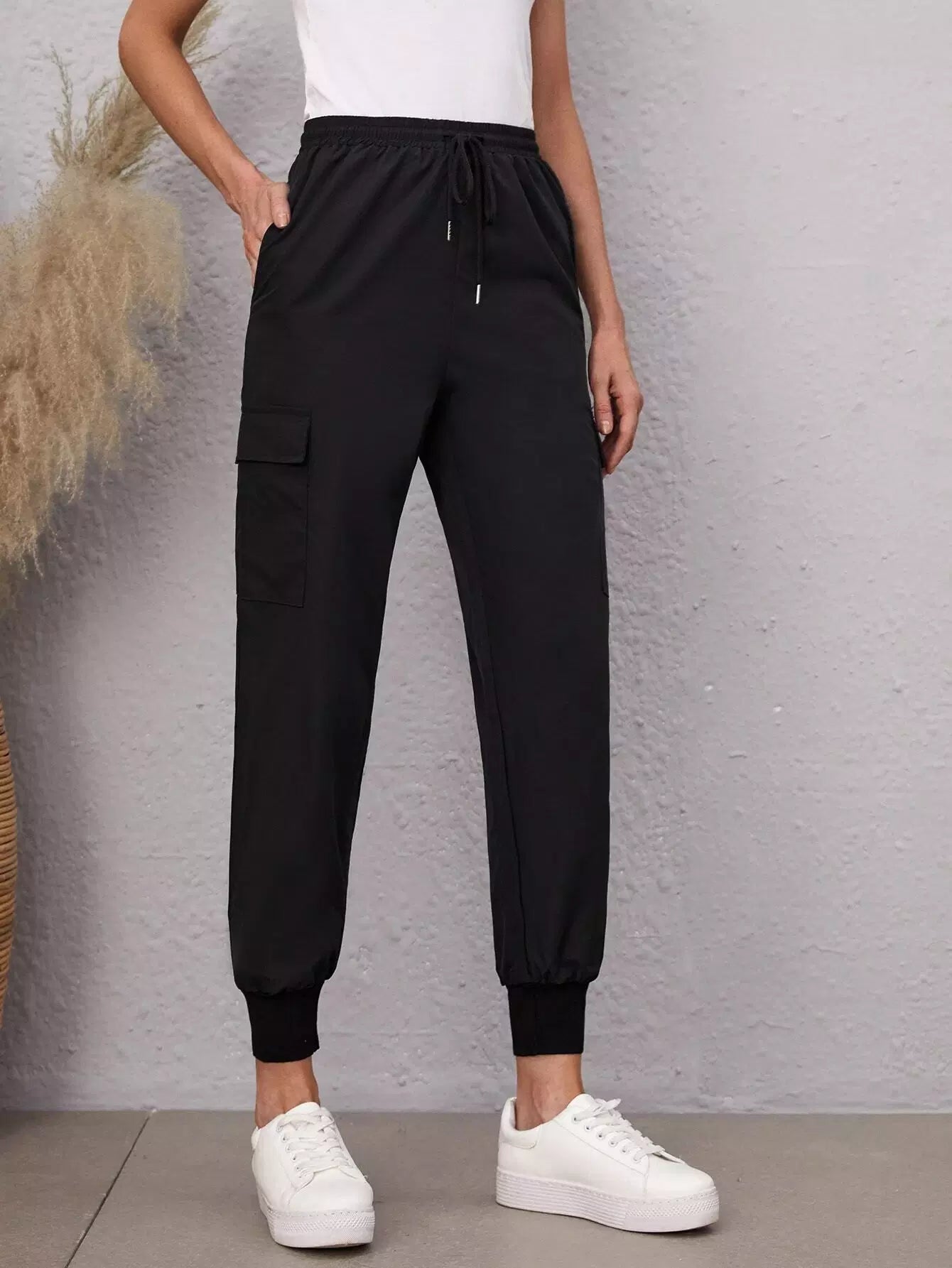 Flap Pocket Side Drawstring Waist Pants