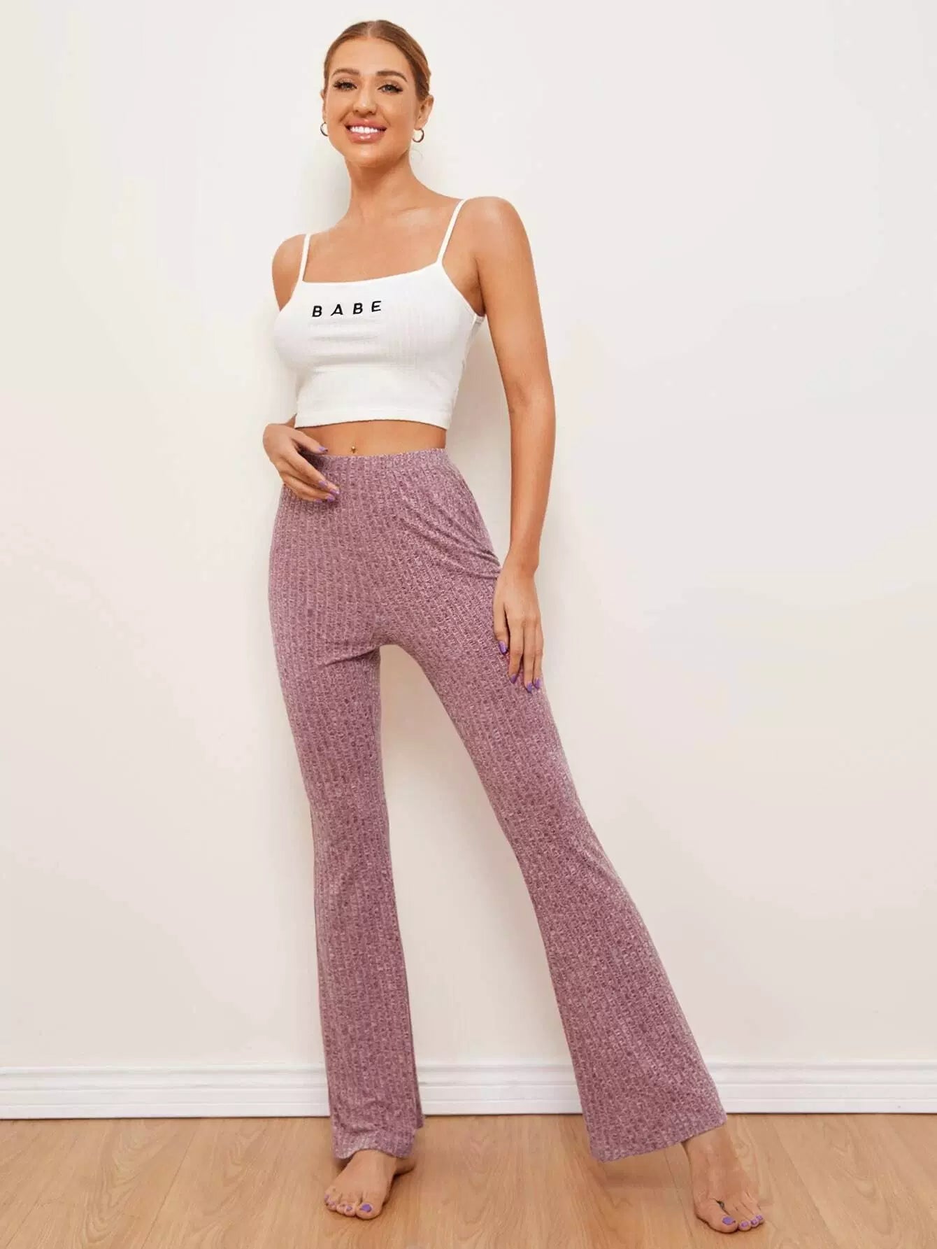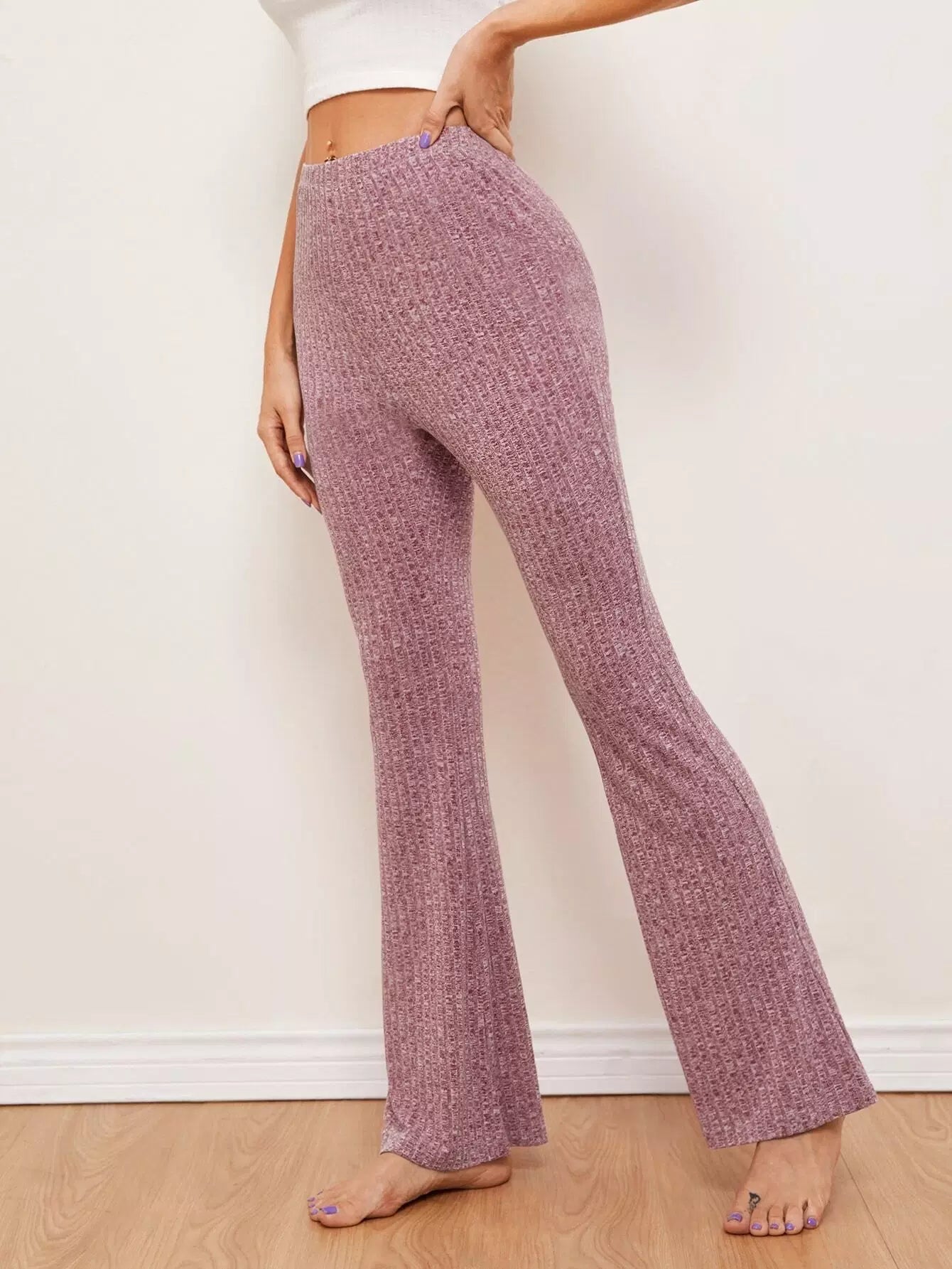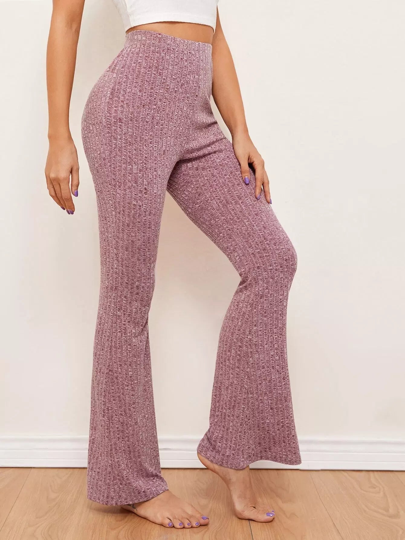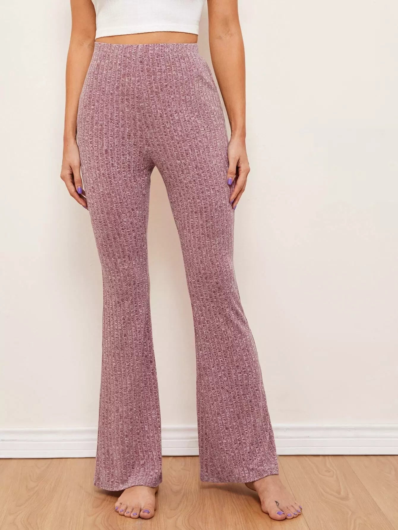 Flare Leg Rib-knit Pants