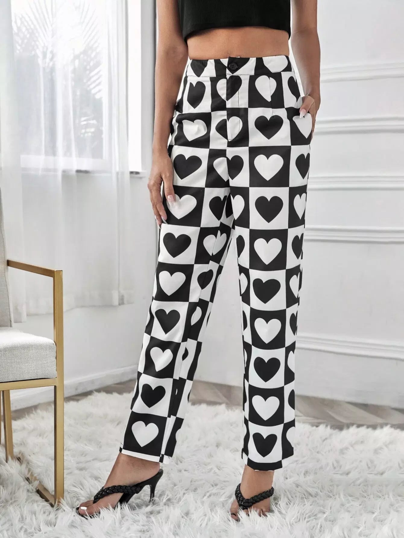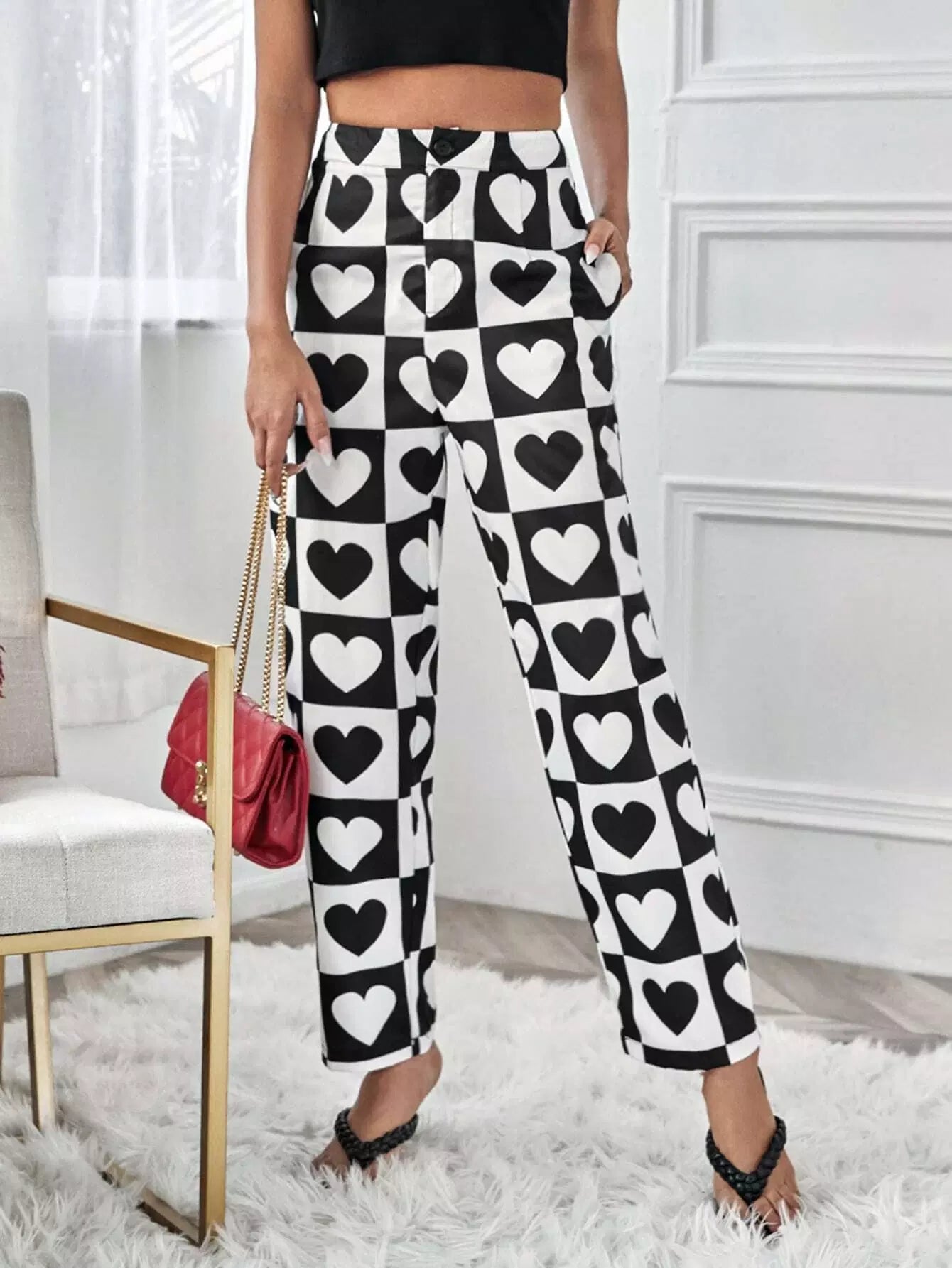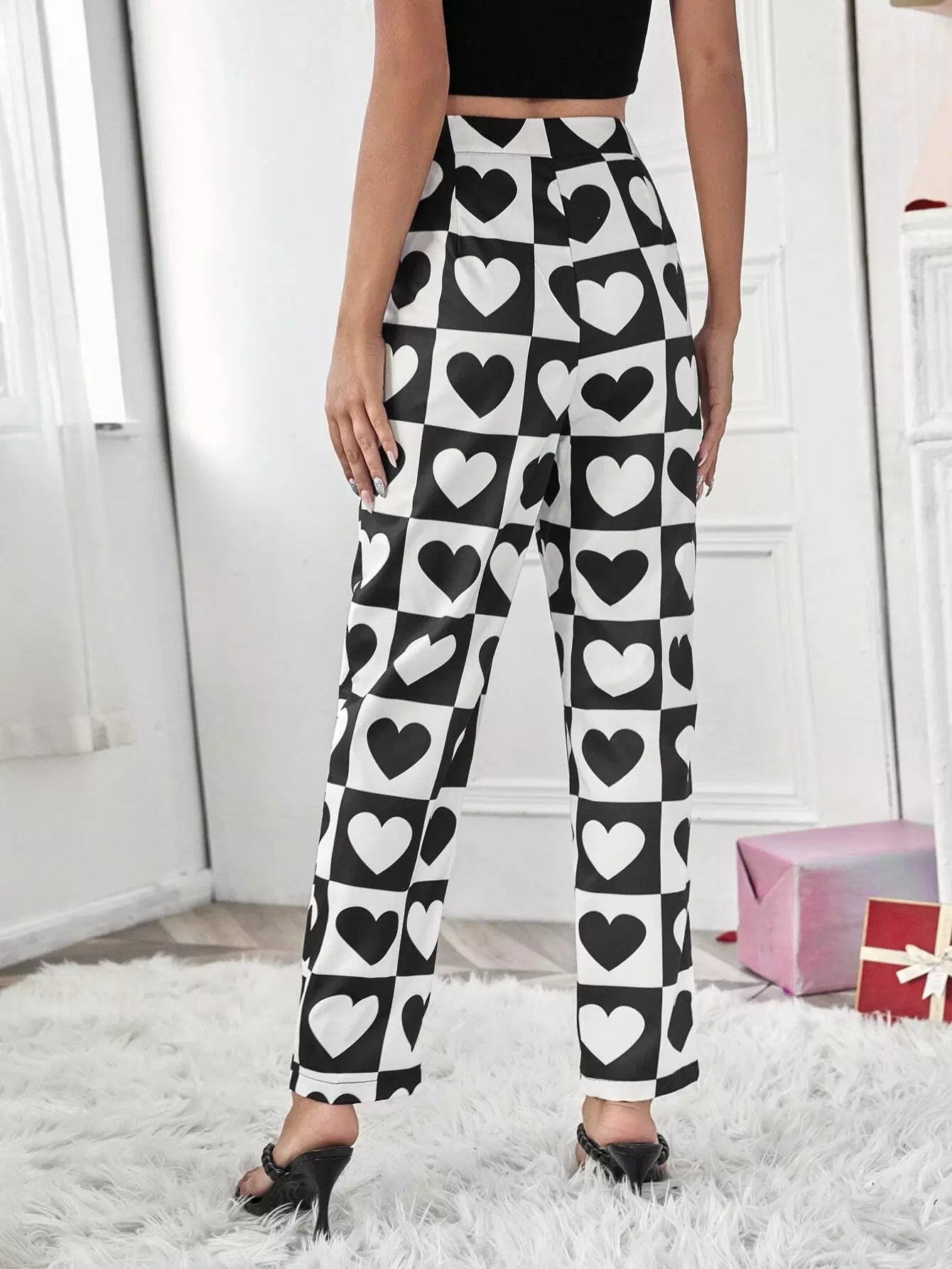 Heart Print Straight Leg Pants