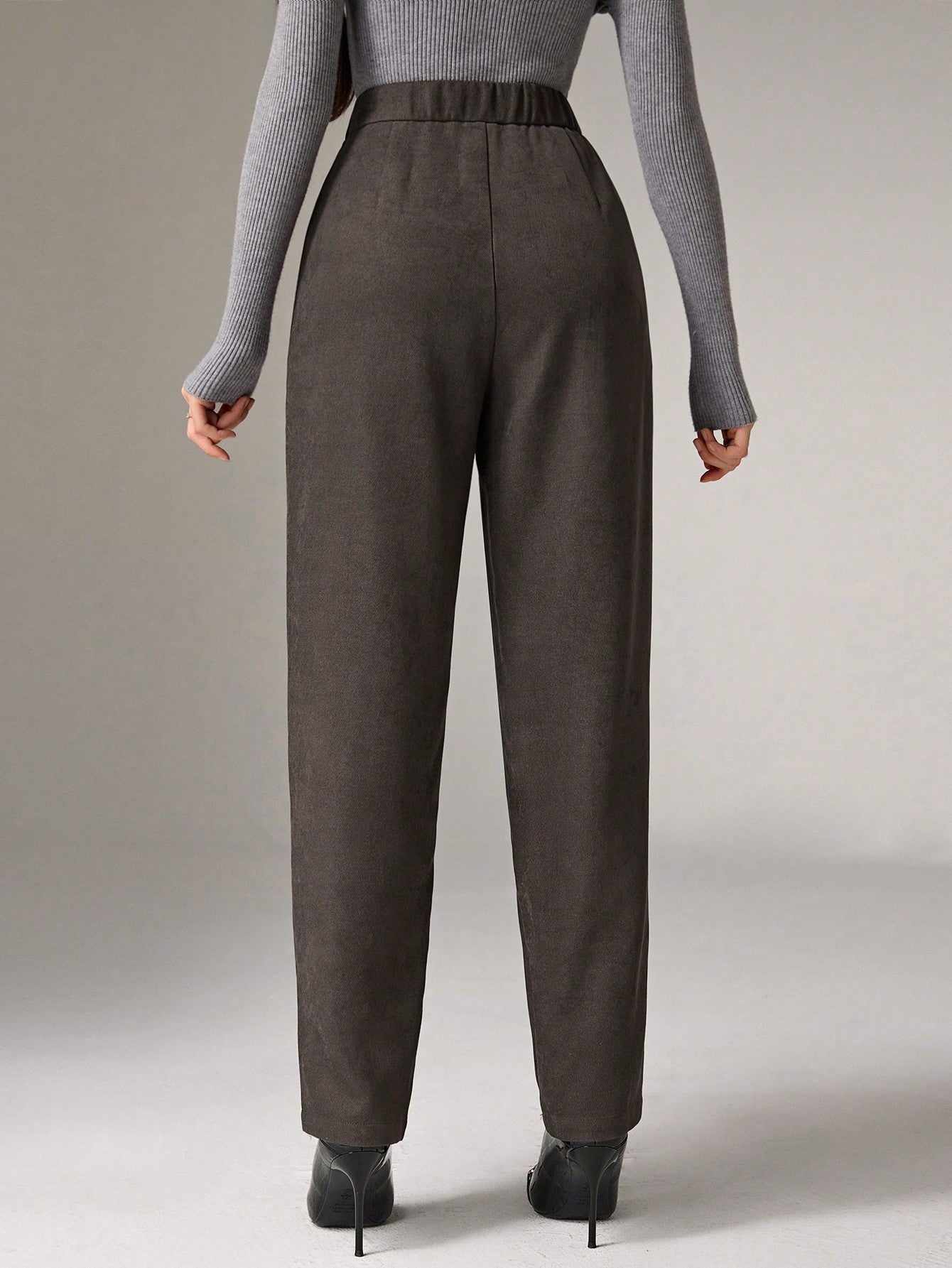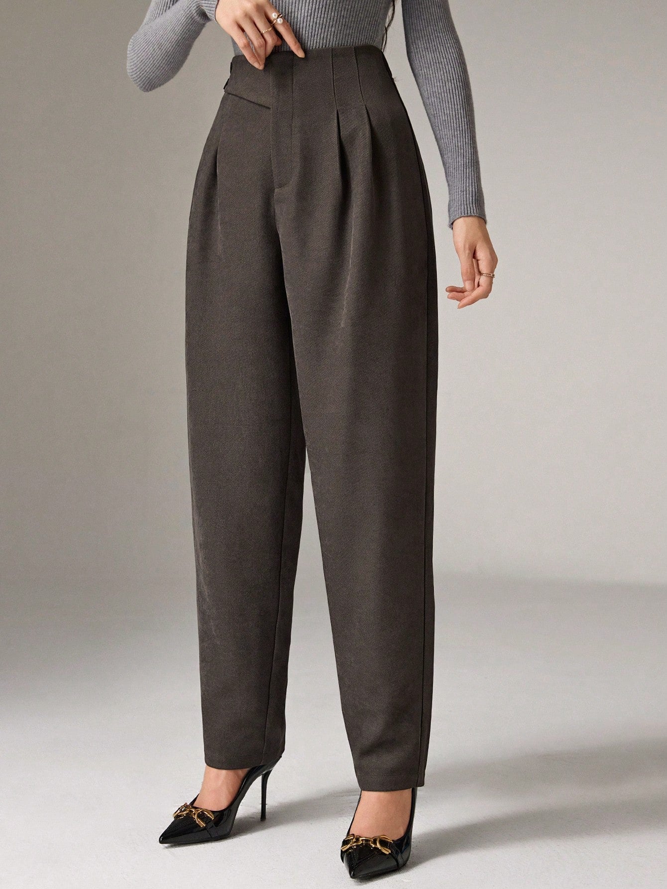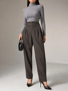 Heiryn Women's Casual High Waist Fold Pleated Skinny Pants