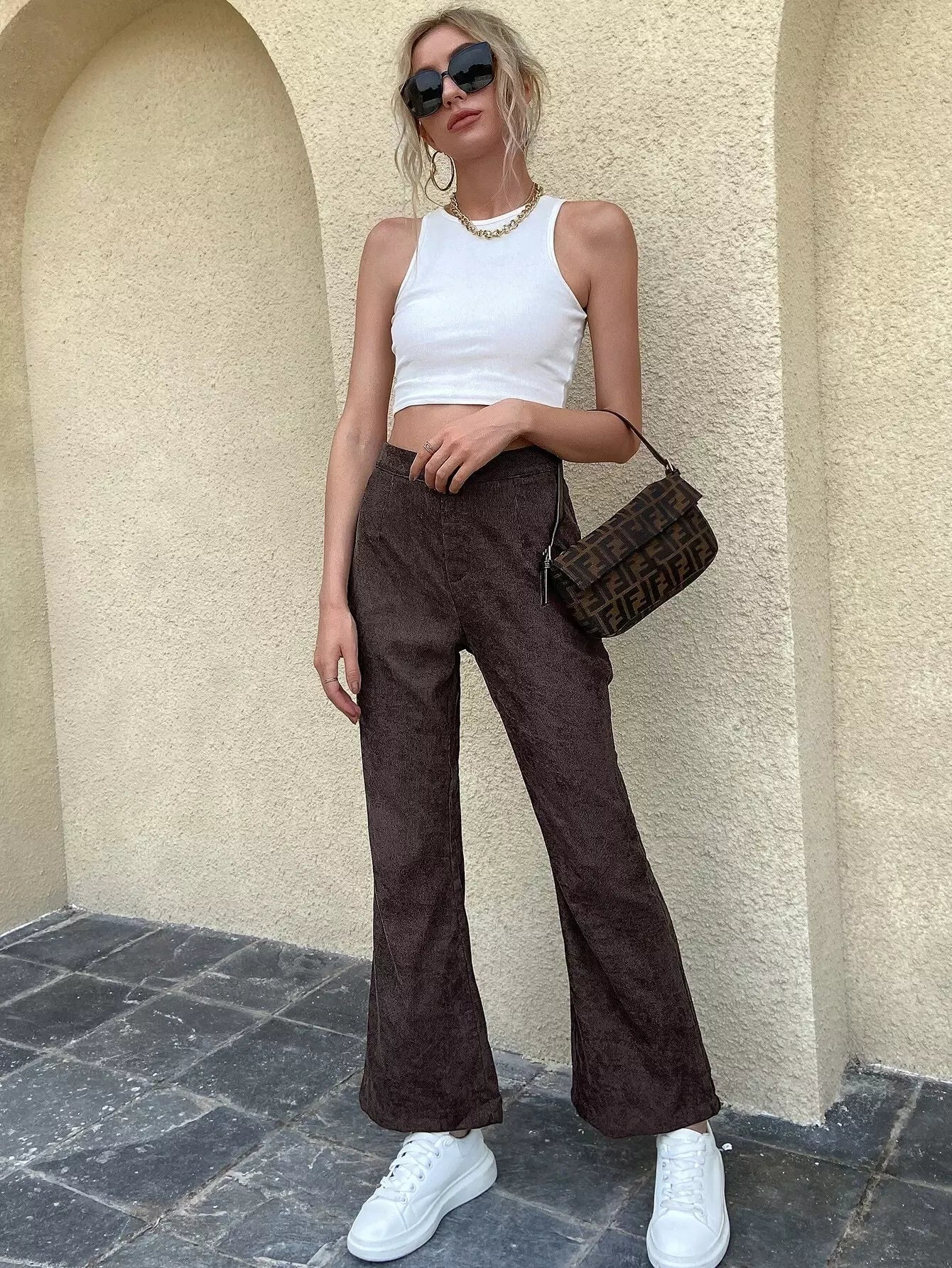 High Waist Corduroy Flare Leg Pants