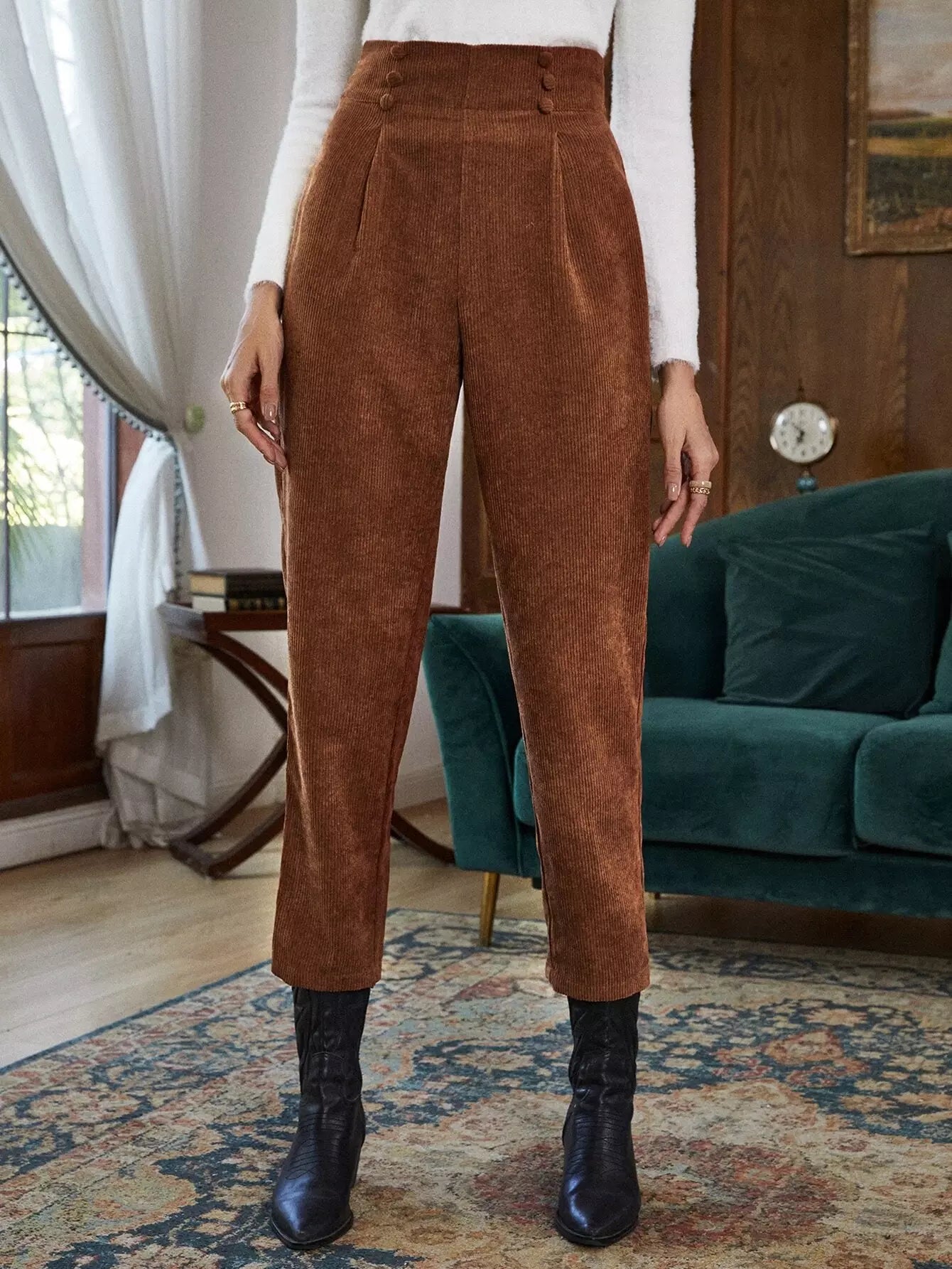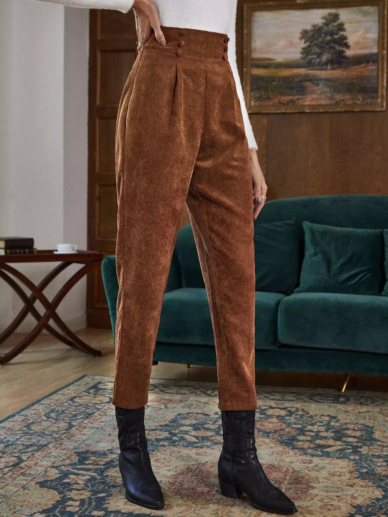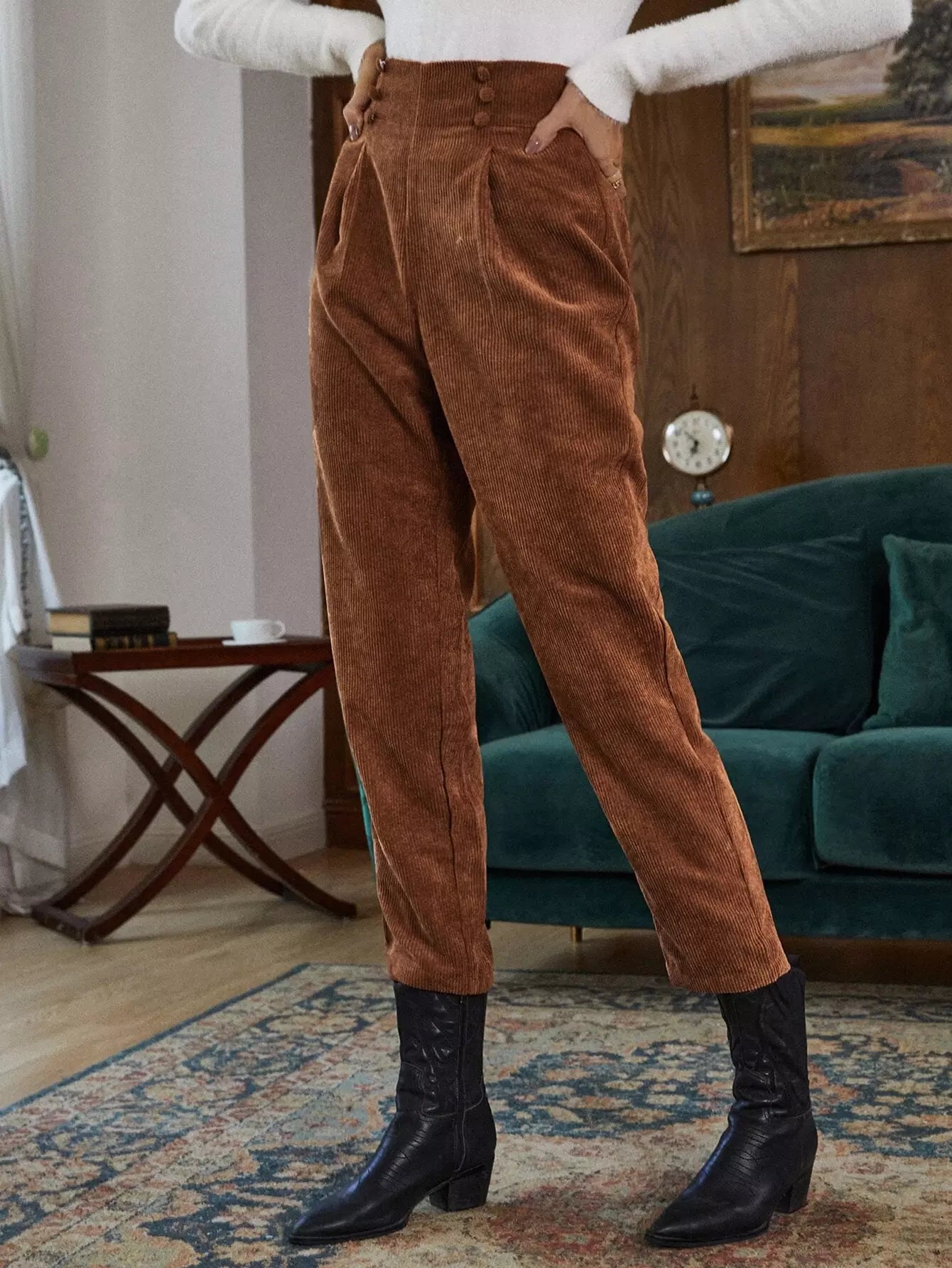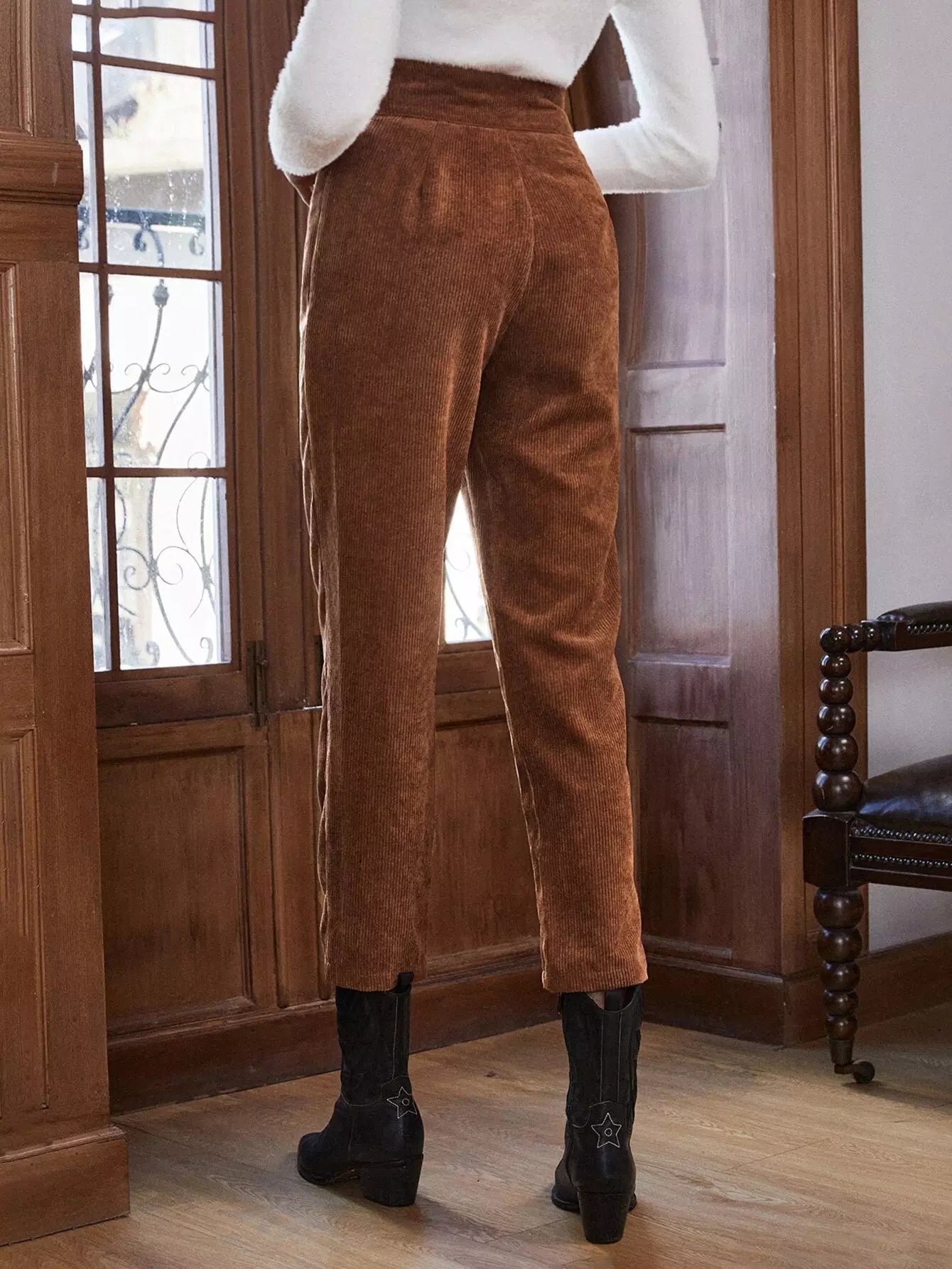 High Waist Fold Pleated Corduroy Pants