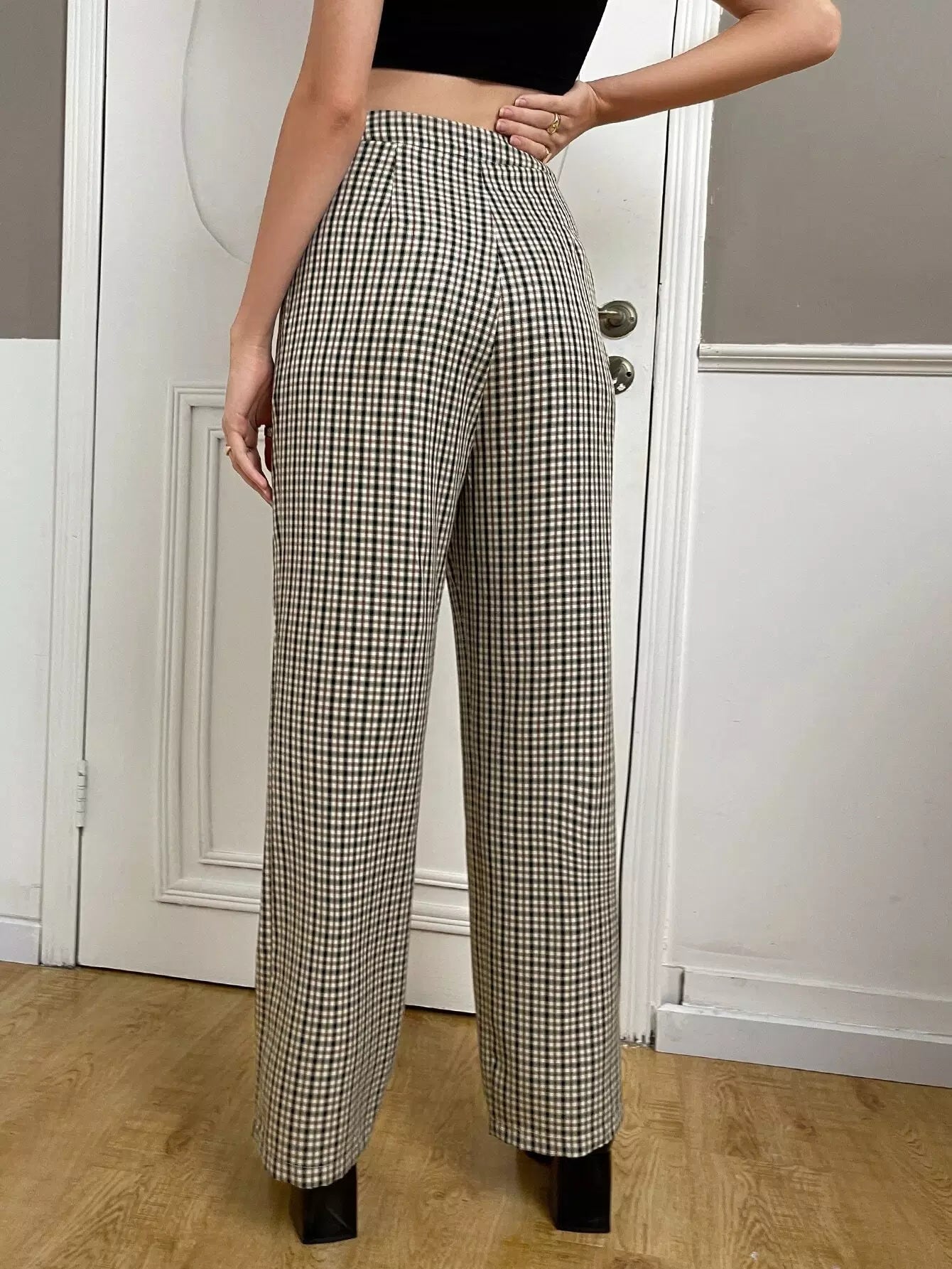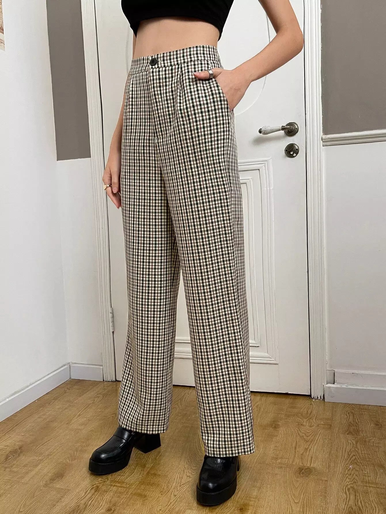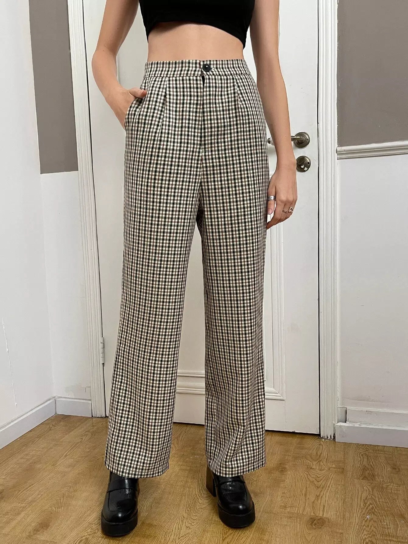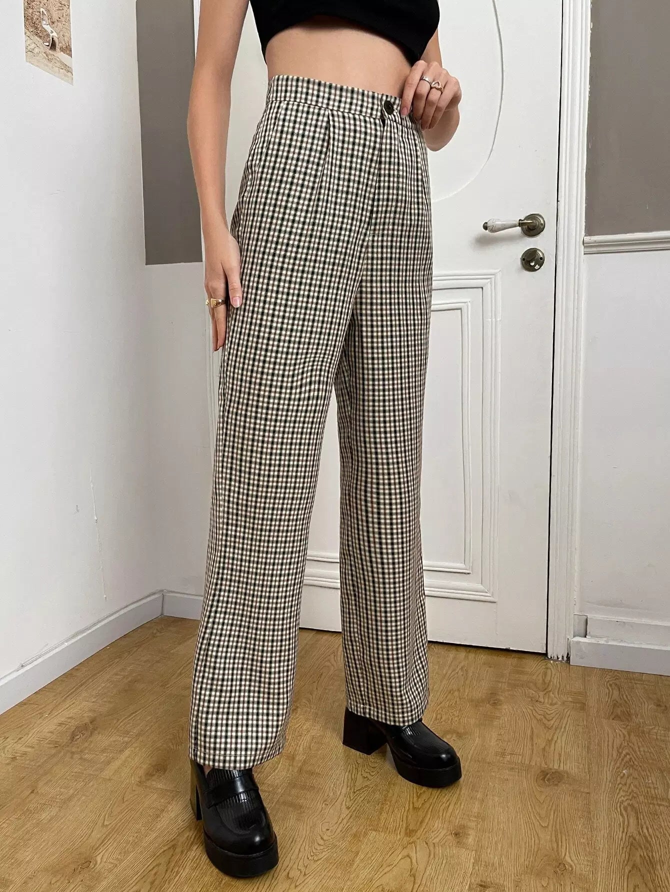 High Waist Plaid Straight Leg Pants