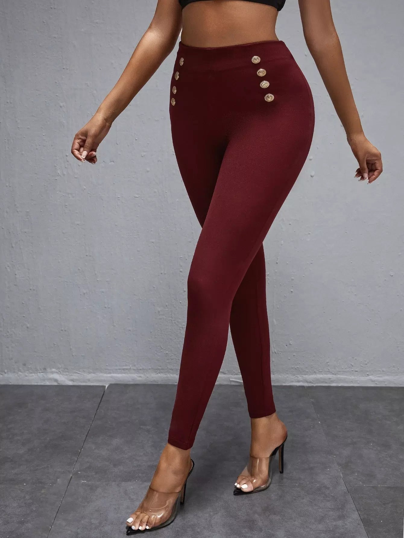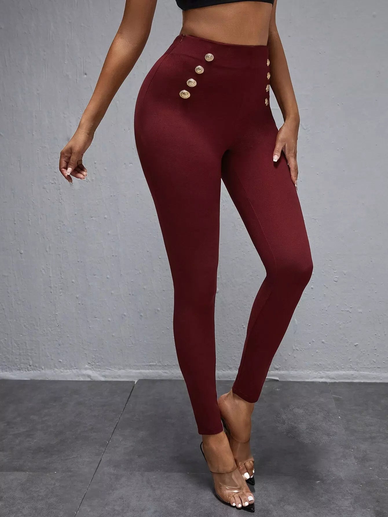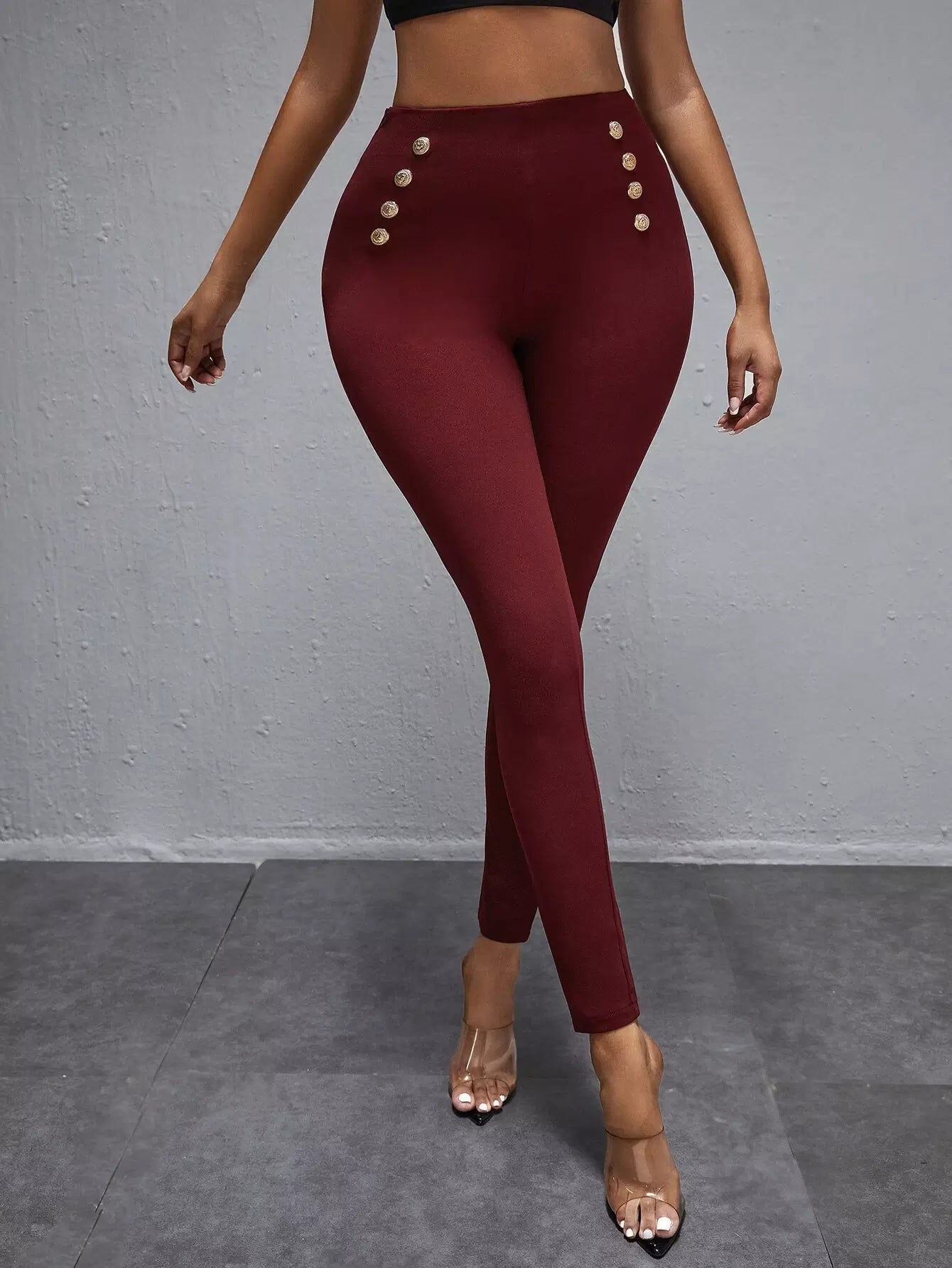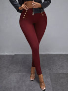 Metal Button Decor High Waisted Skinny Pants