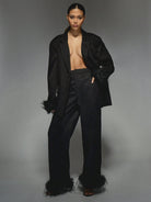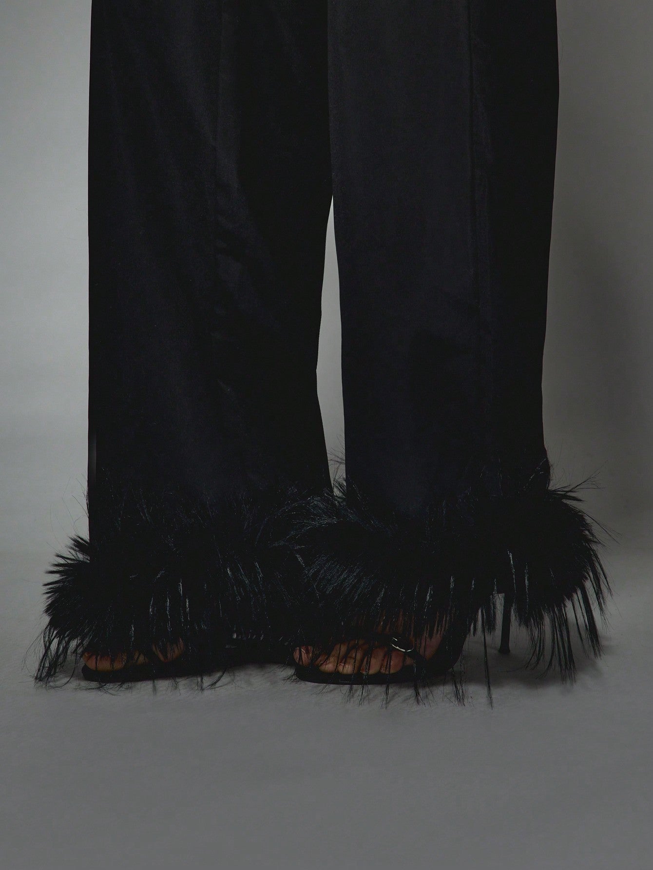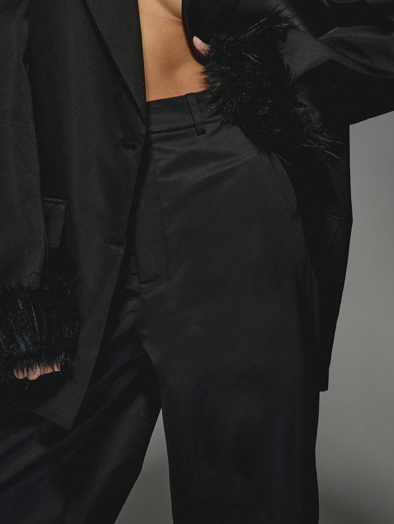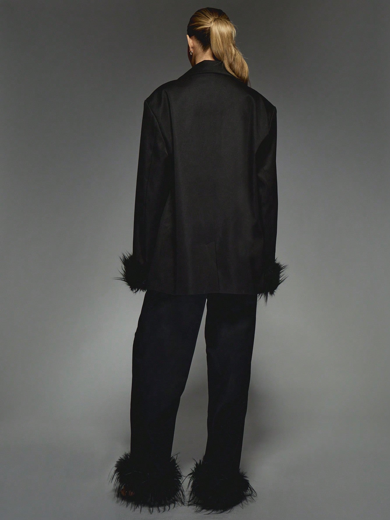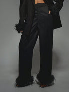 MISSGUIDED Feather Trim Tailored Wide Leg Trousers Office Wear