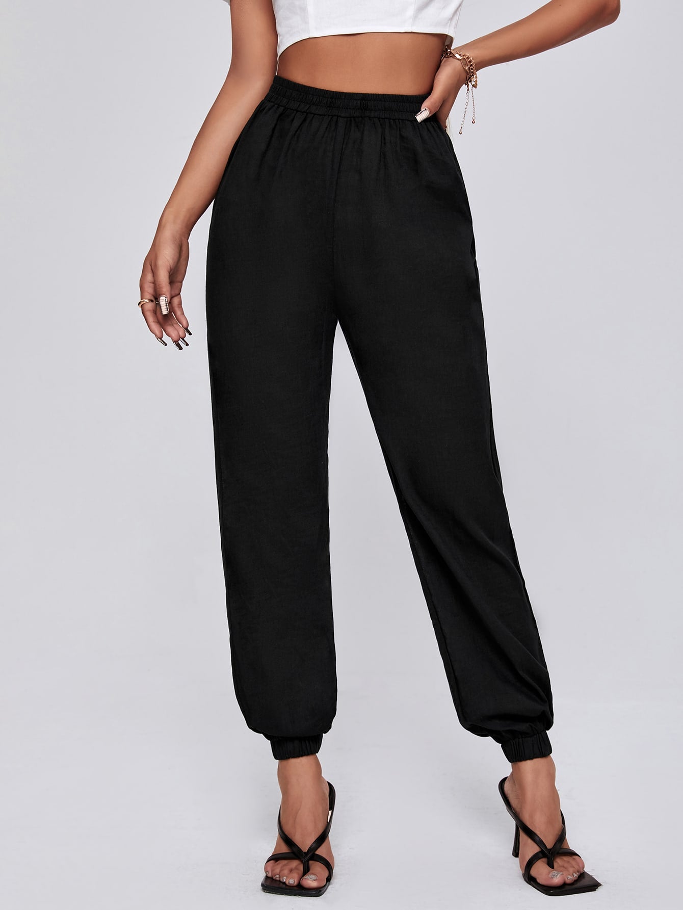 PETITE Solid Elastic Waist Joggers
