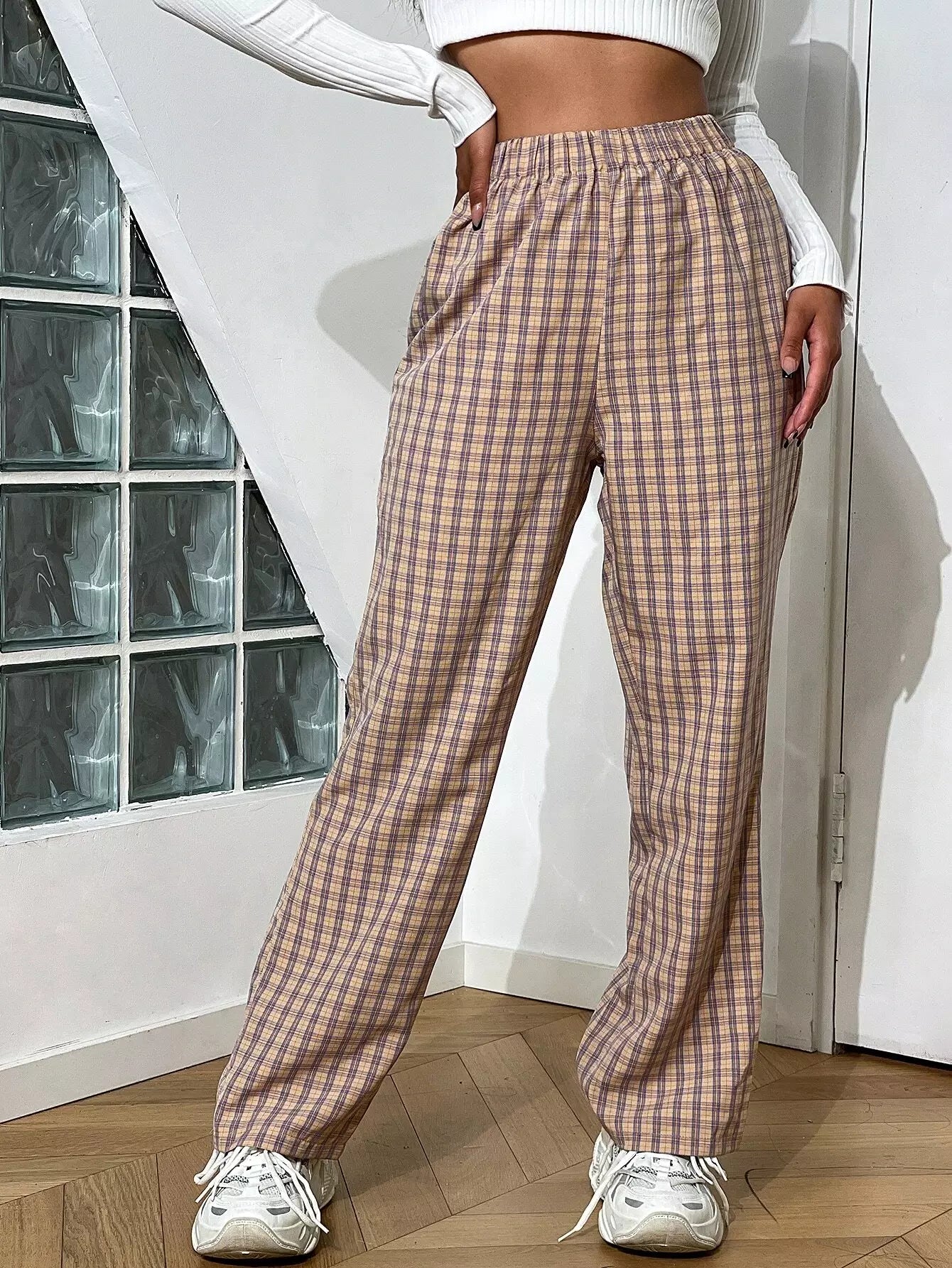 Women - Plaid High Waist Pants