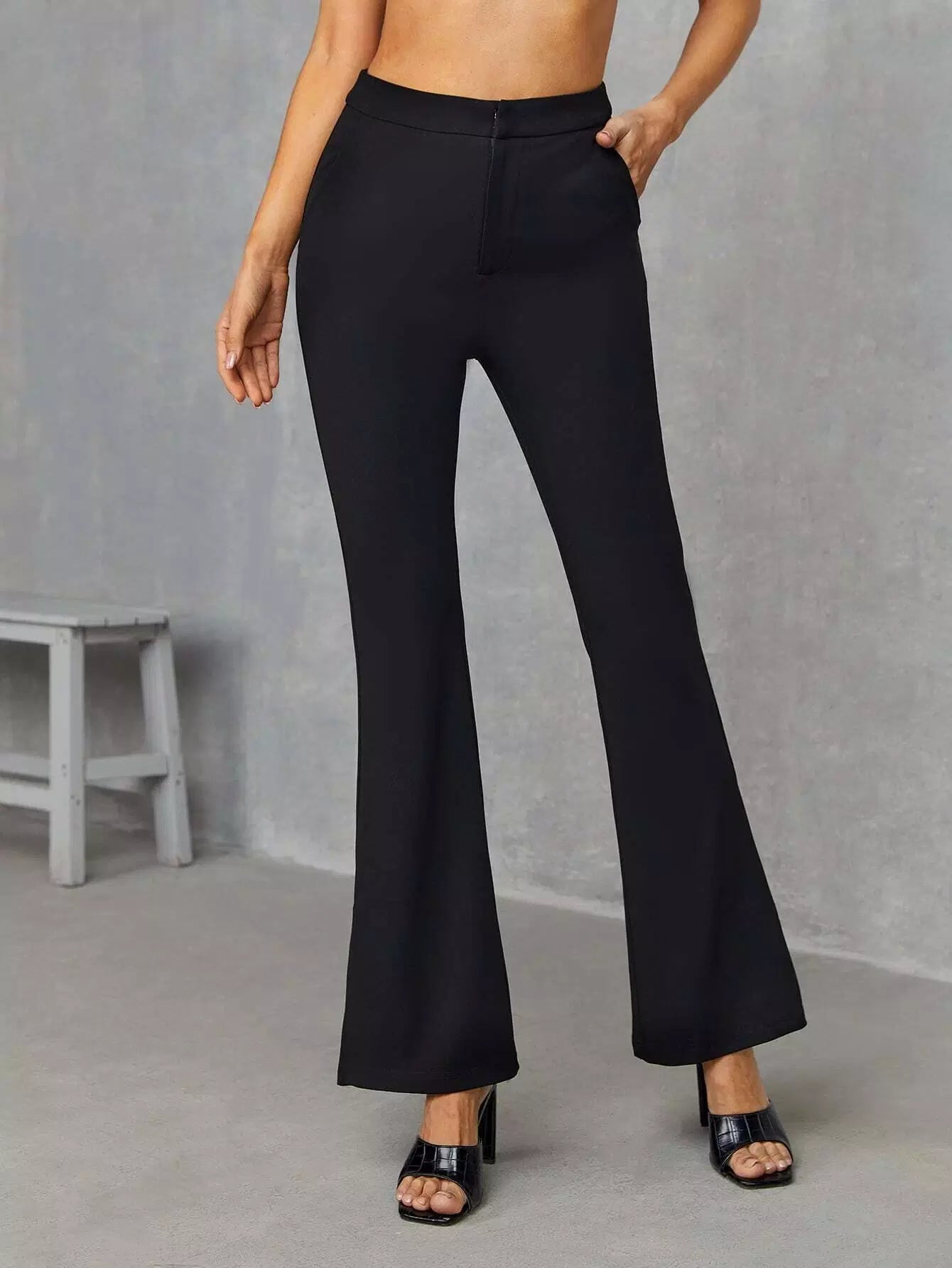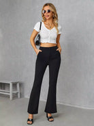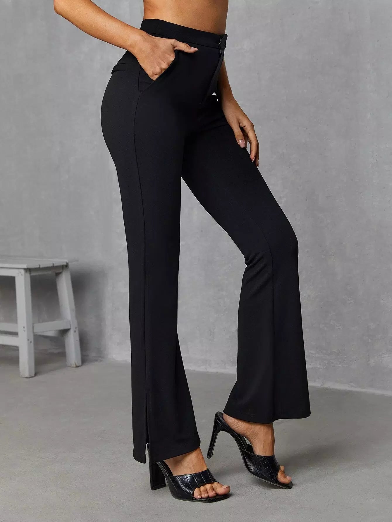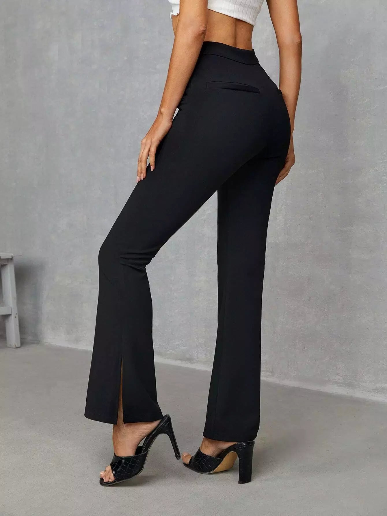 Women - Slant Pocket Split Hem Flare Leg Pants