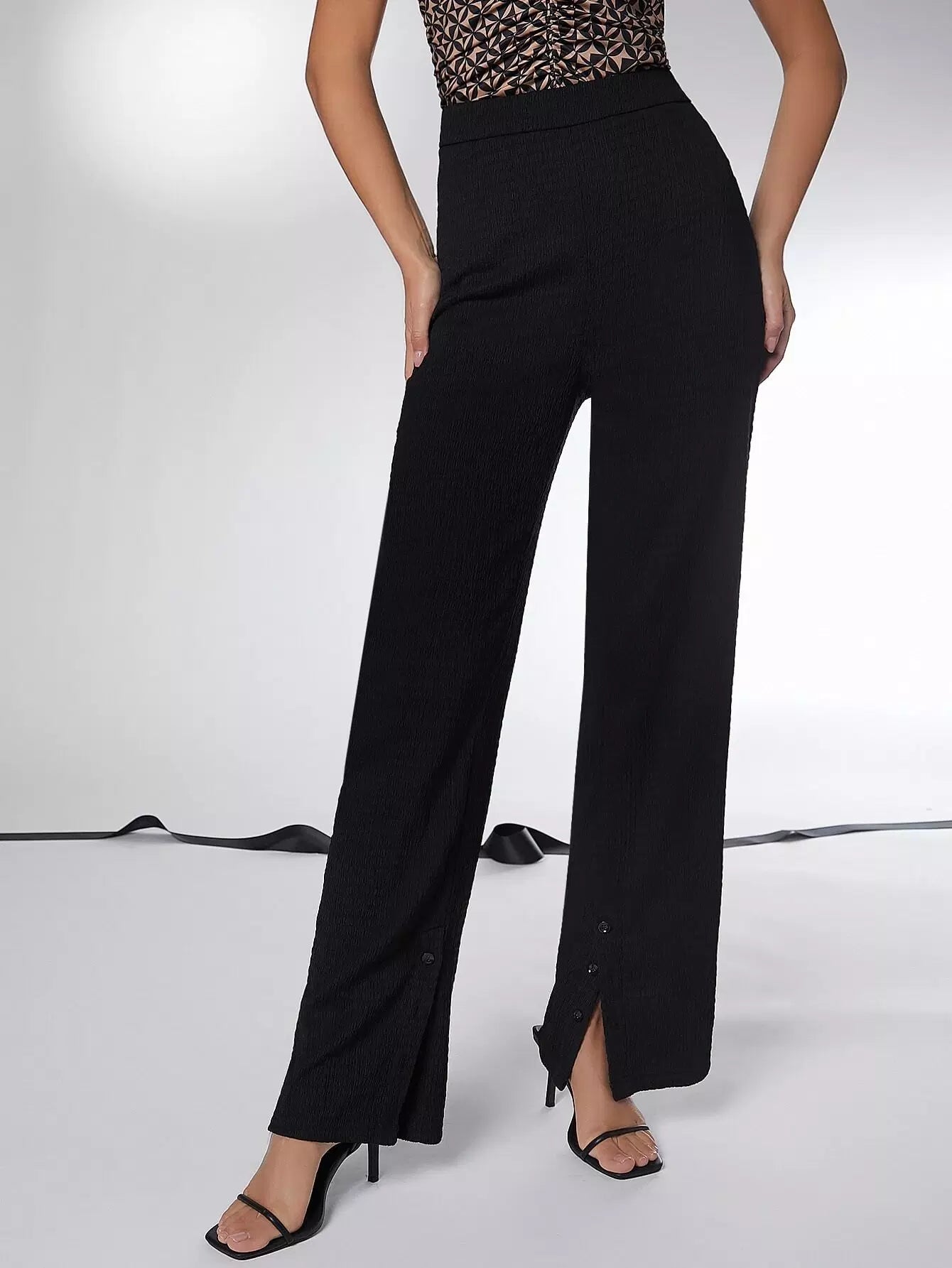 Slit Hem Solid Pants