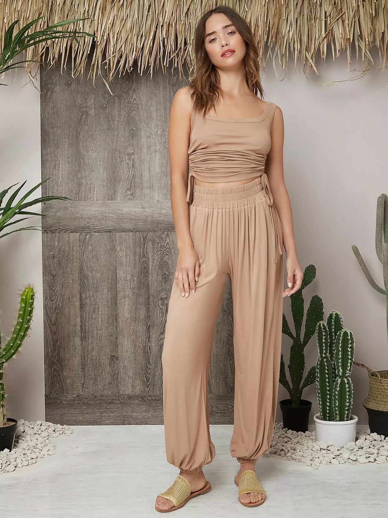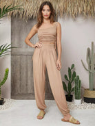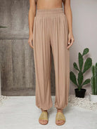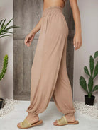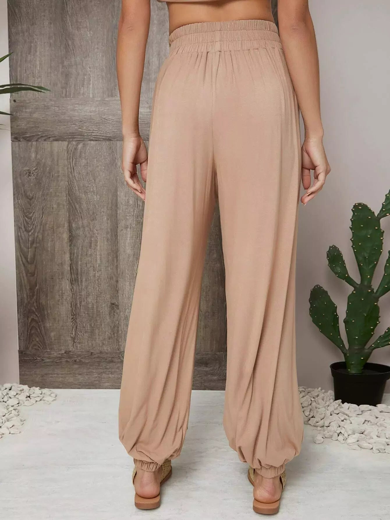 Solid Elastic Waist Carrot Pants
