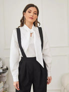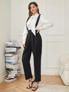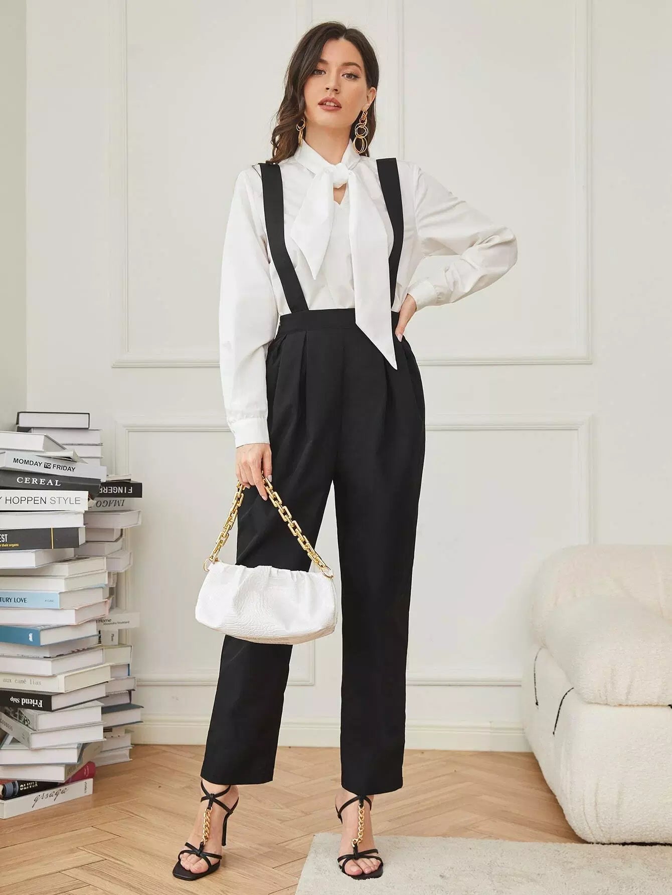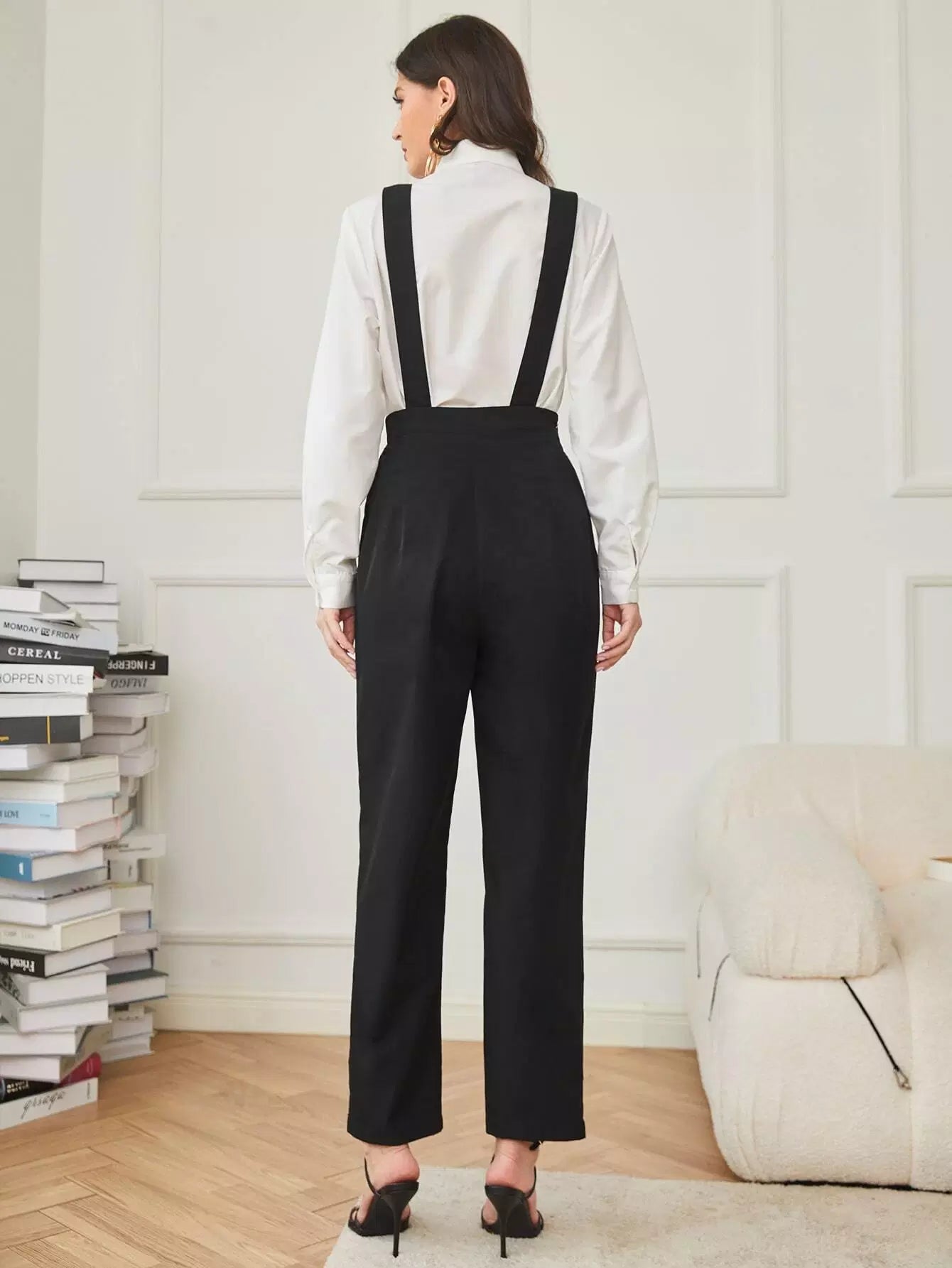 Solid Straps Fold Pleat Cropped Pants Without Top