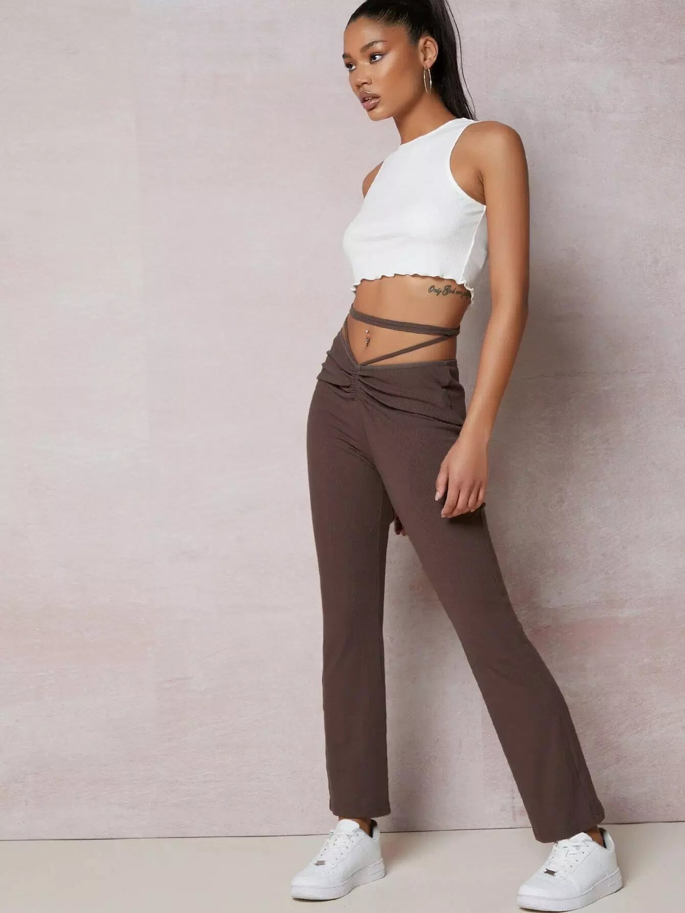 Tie Back Drawstring Ruched Pants