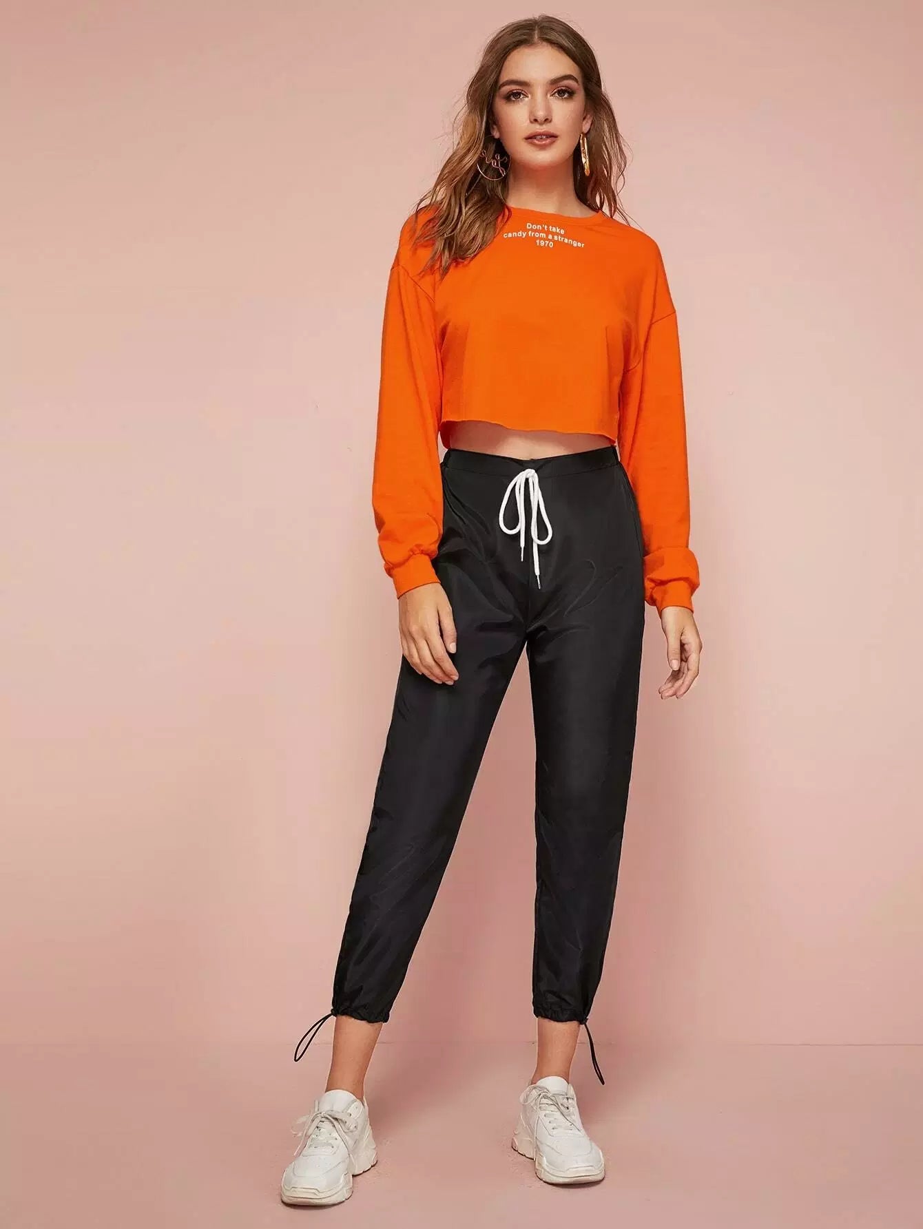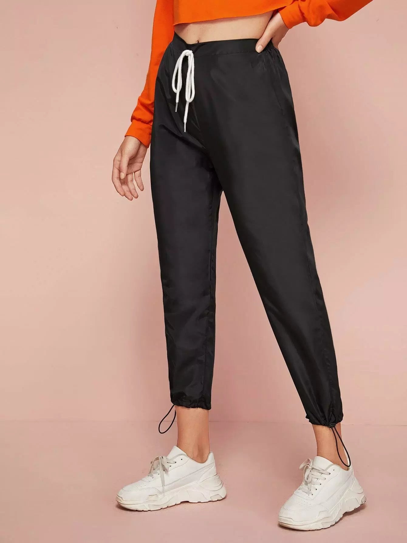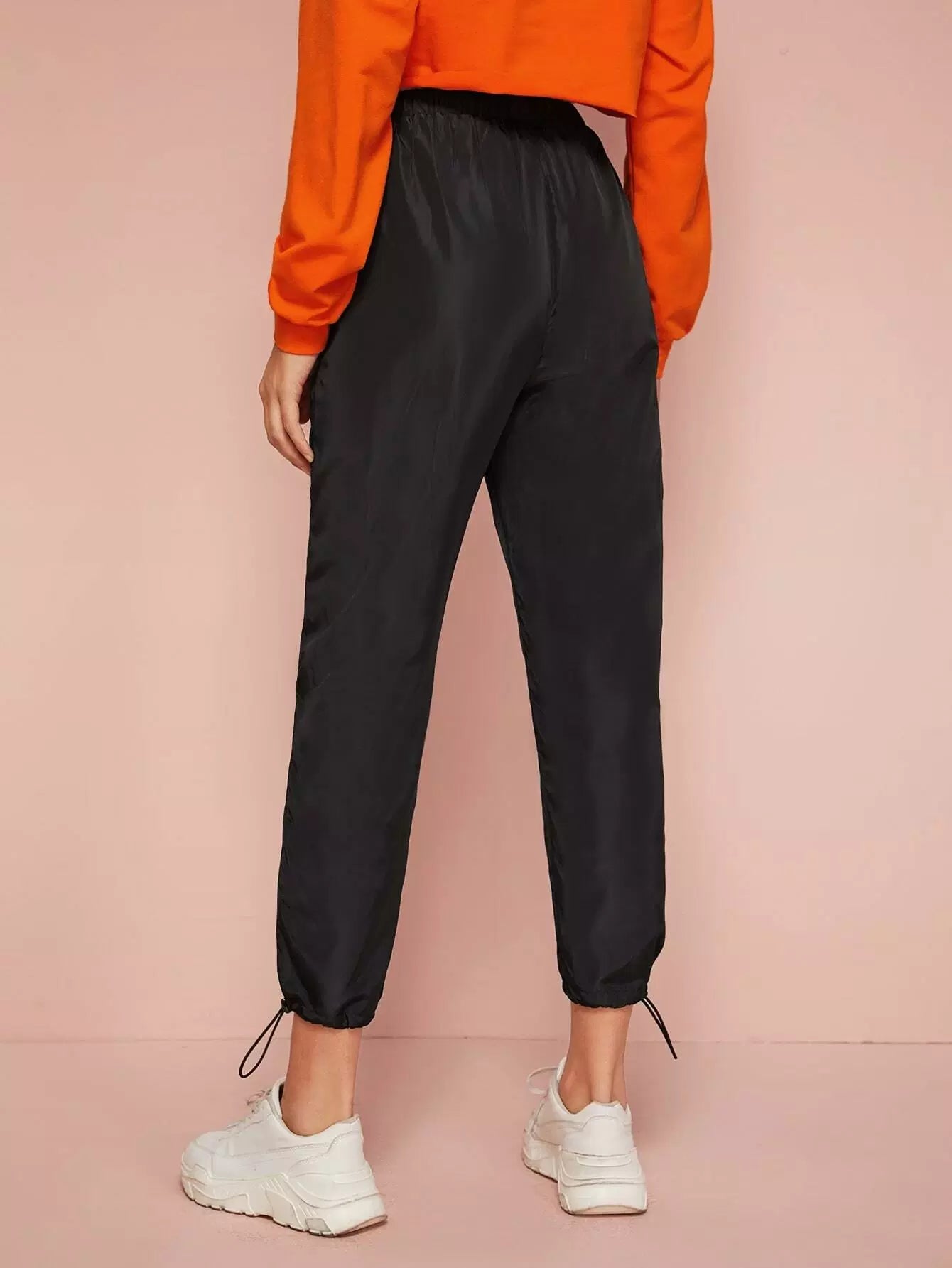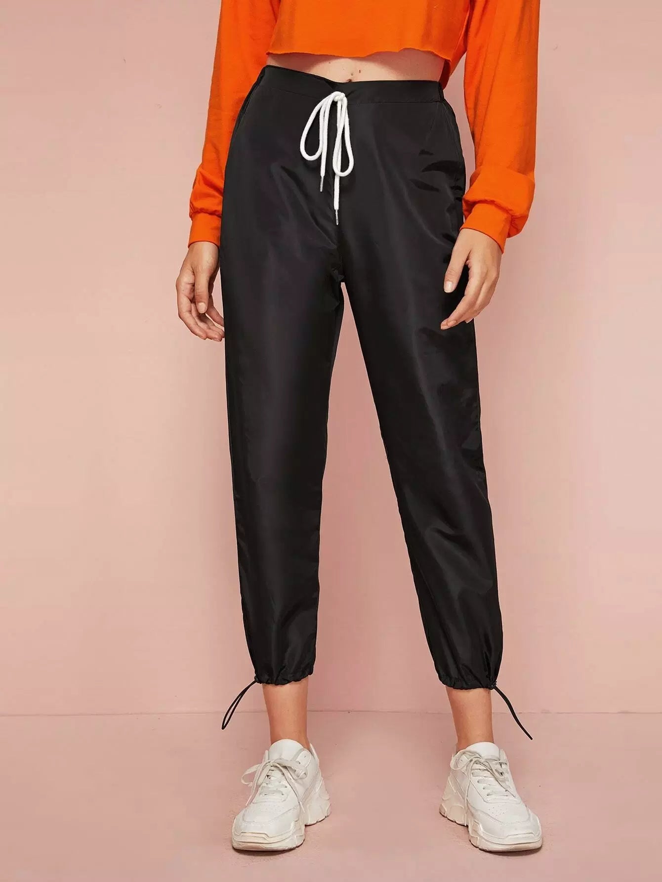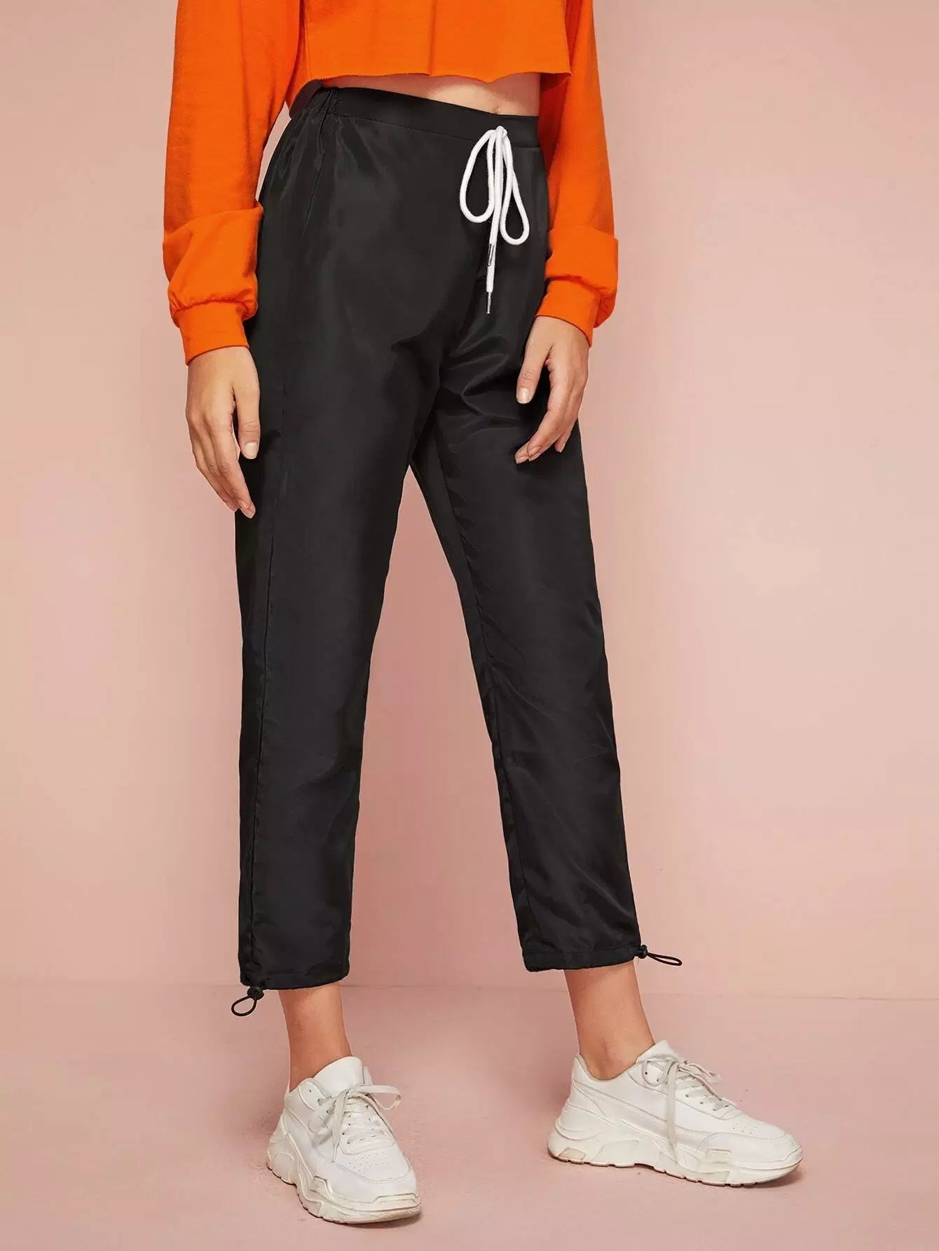 Tie Waist Drawstring Hem Wind Pants