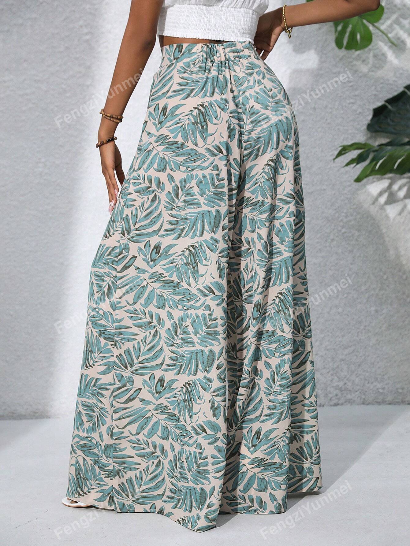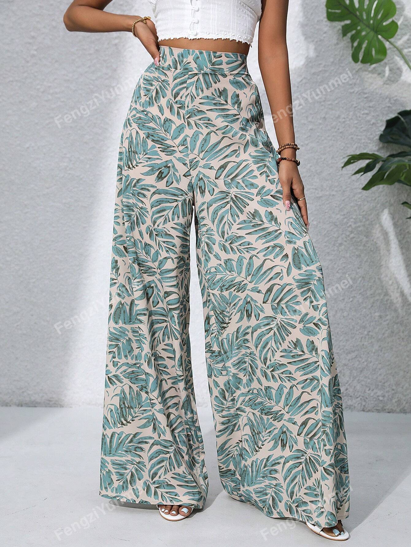 Women's Boho Style High Waist Ditsy Floral Chiffon Wide Leg Palazzo Pants