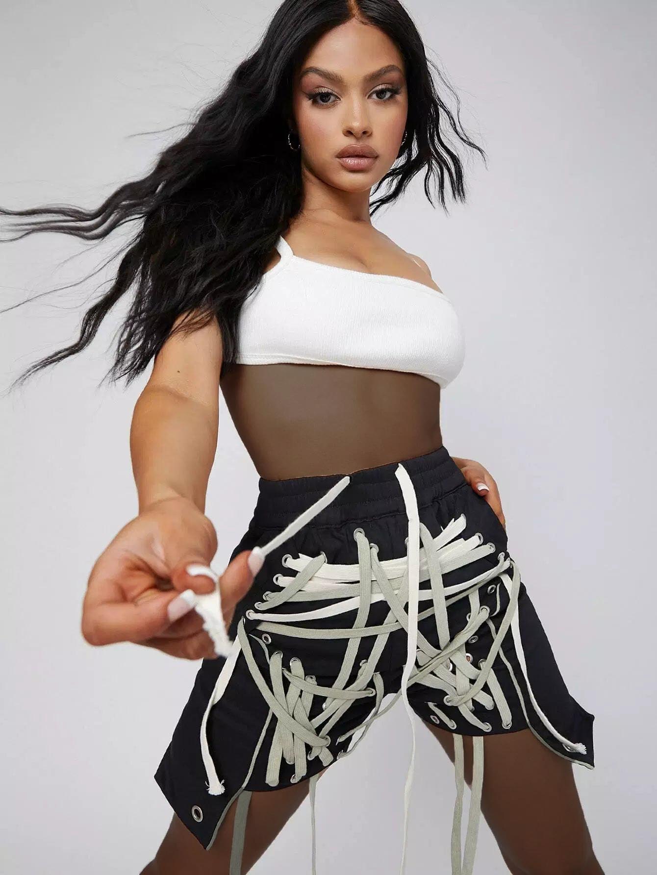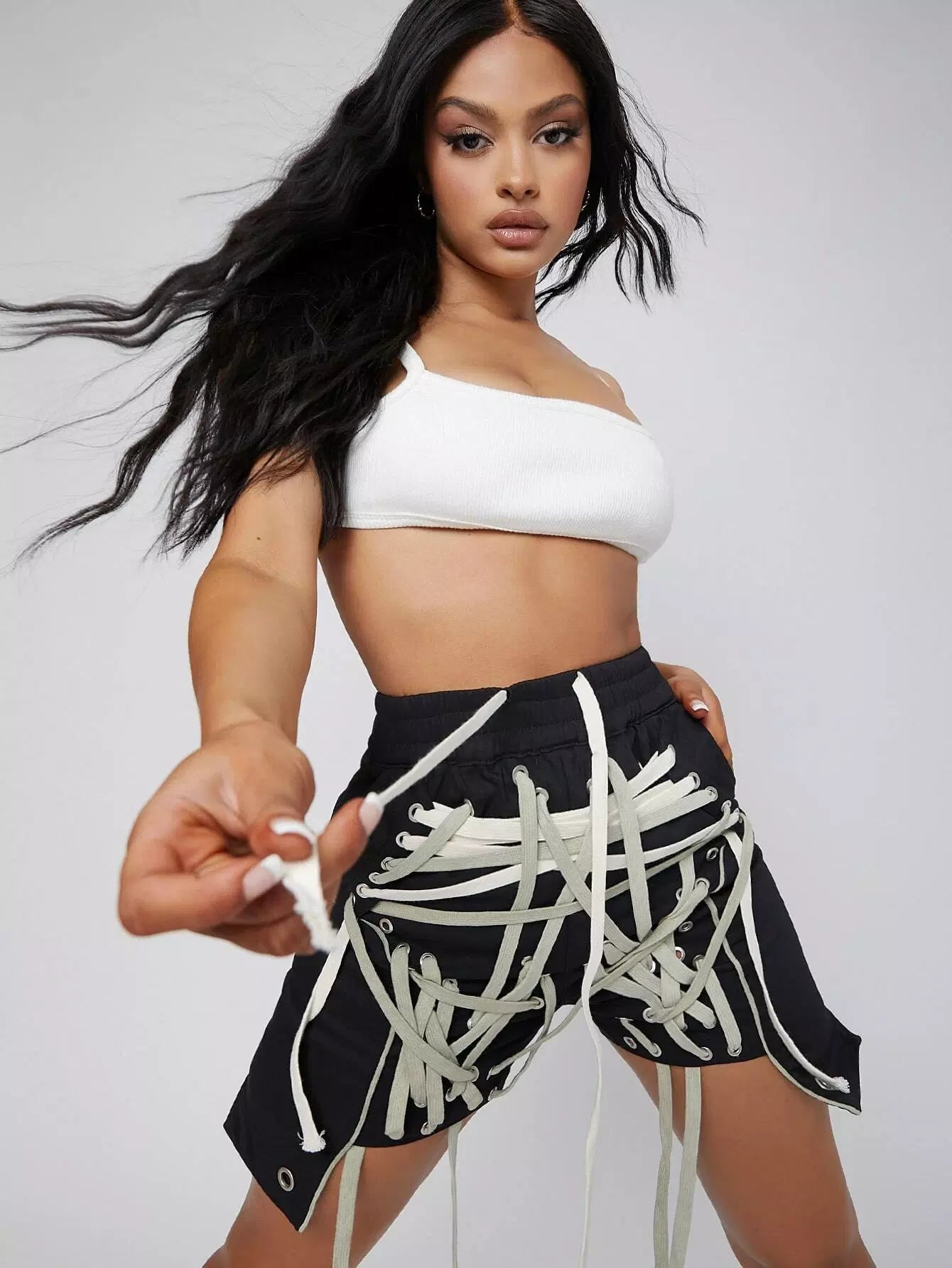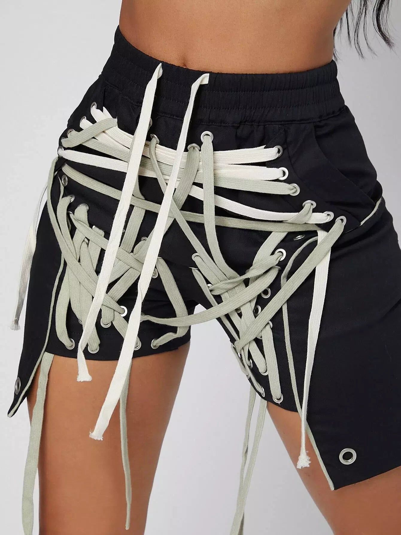 Crisscross Shoe Lace Detailing Zippered Shorts
