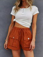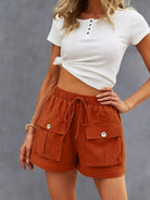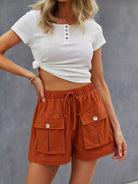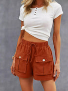 Drawstring Waist Flap Pockets Shorts