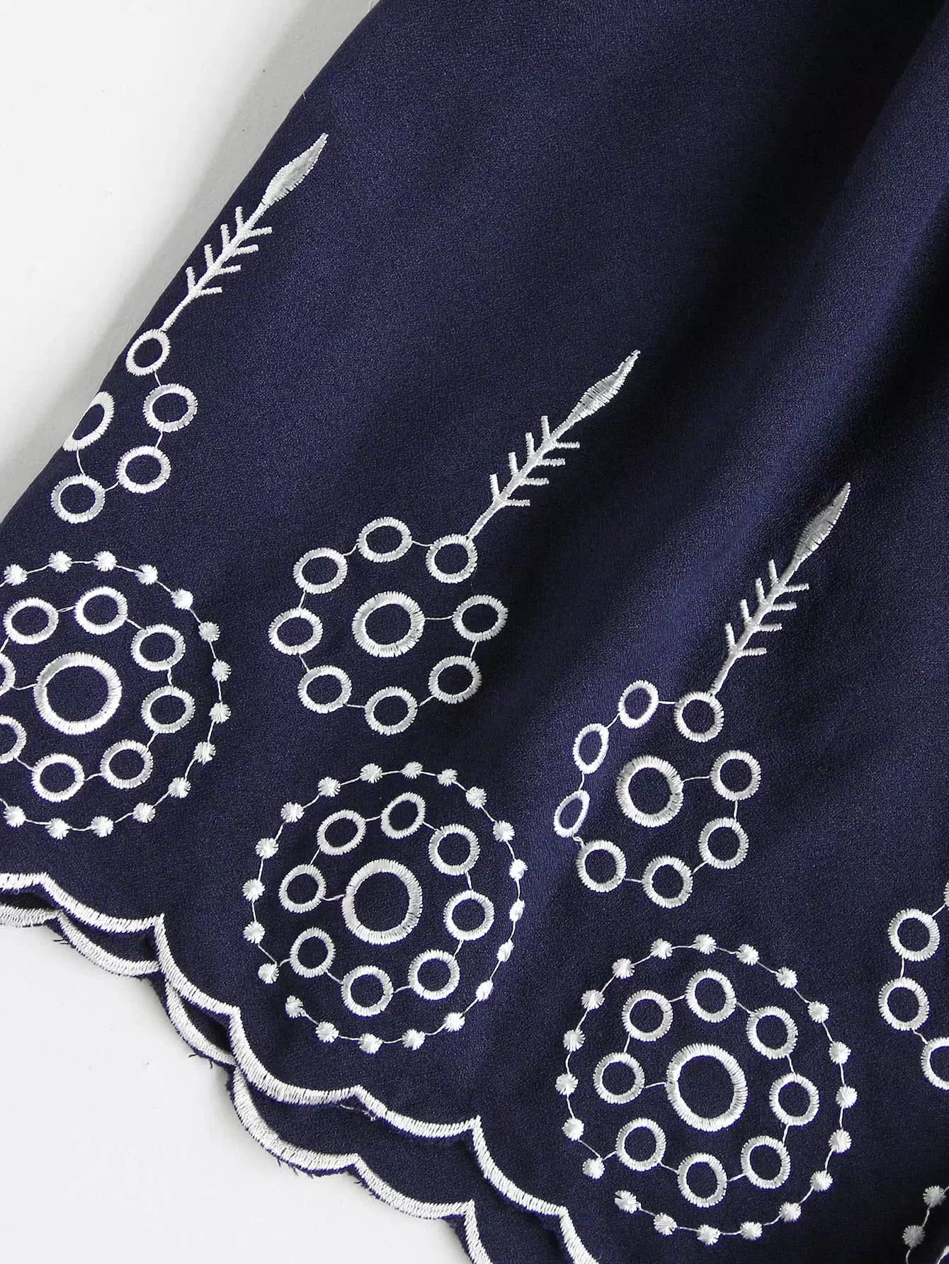 Elastic Waist Geo Embroidered Scallop Hem Shorts