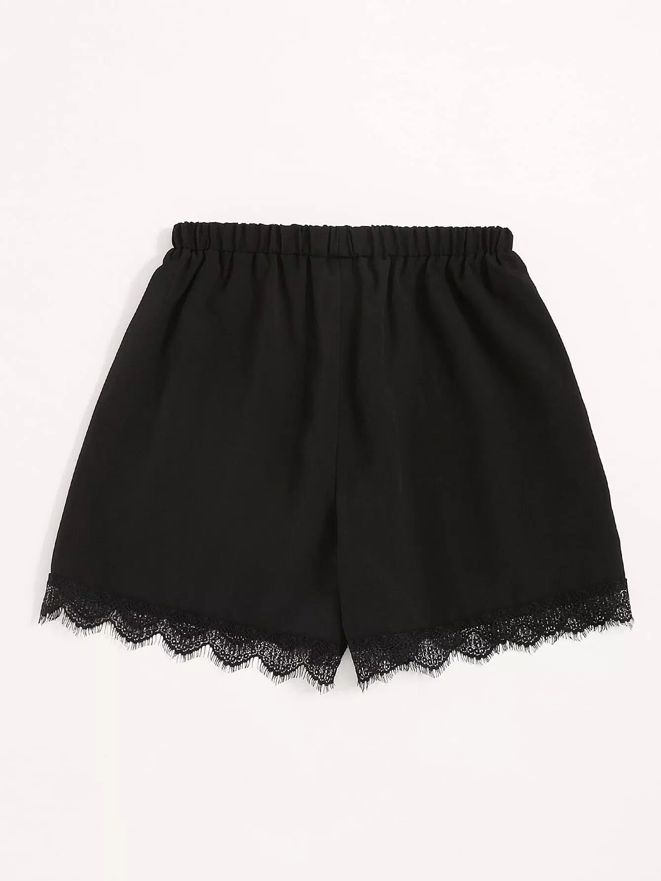 Women - Eyelash Lace Hem Elastic Waist Shorts