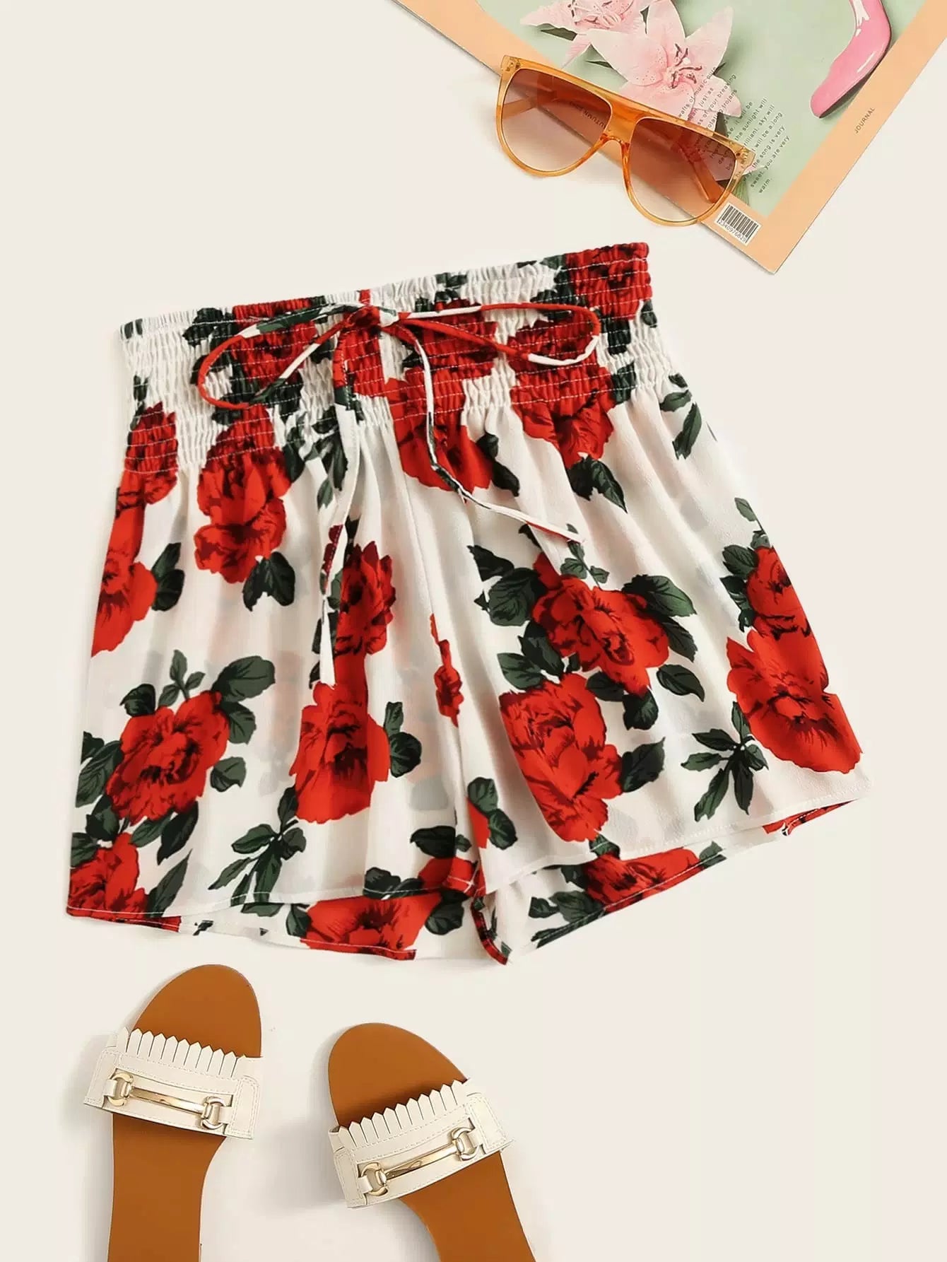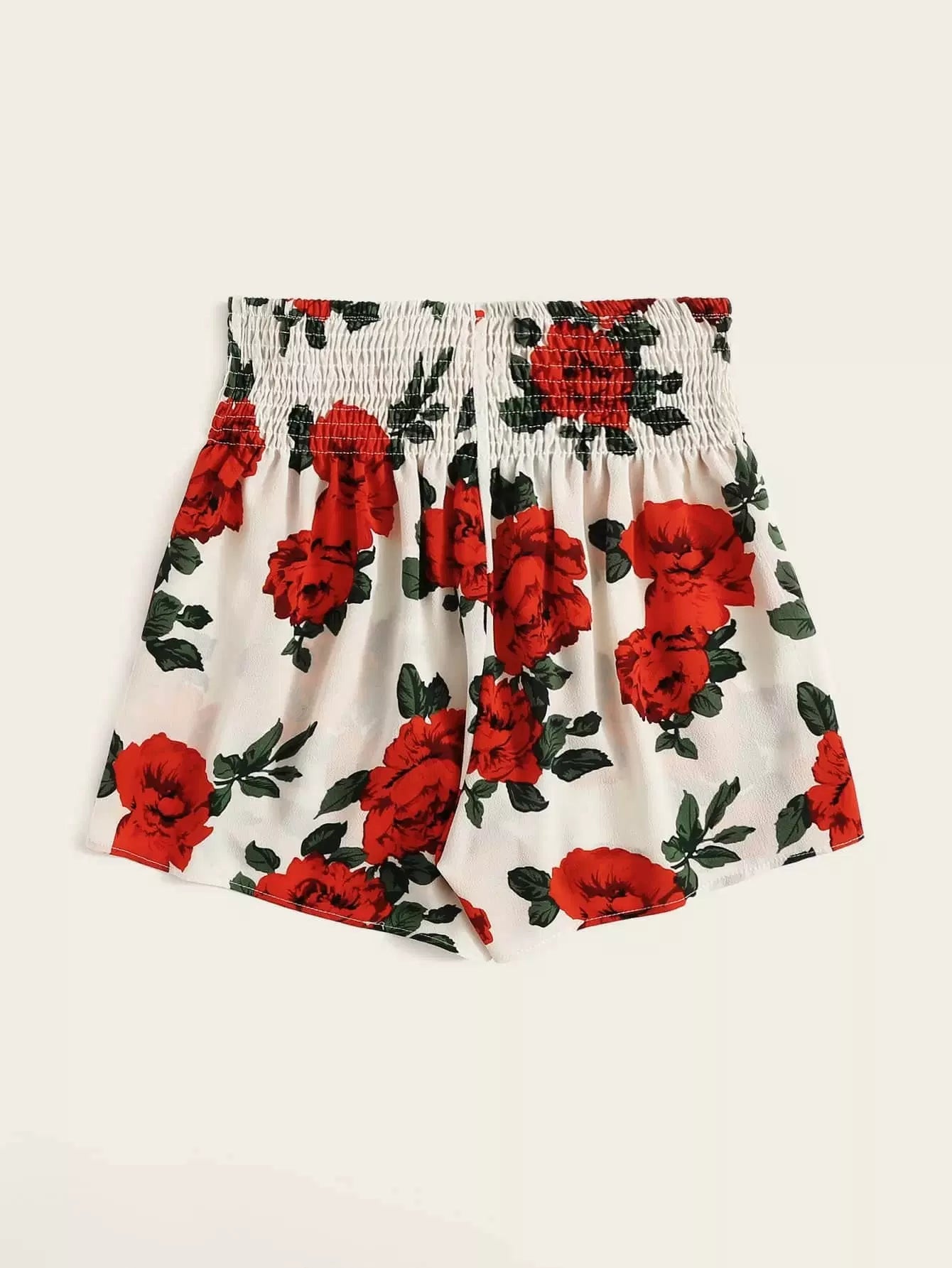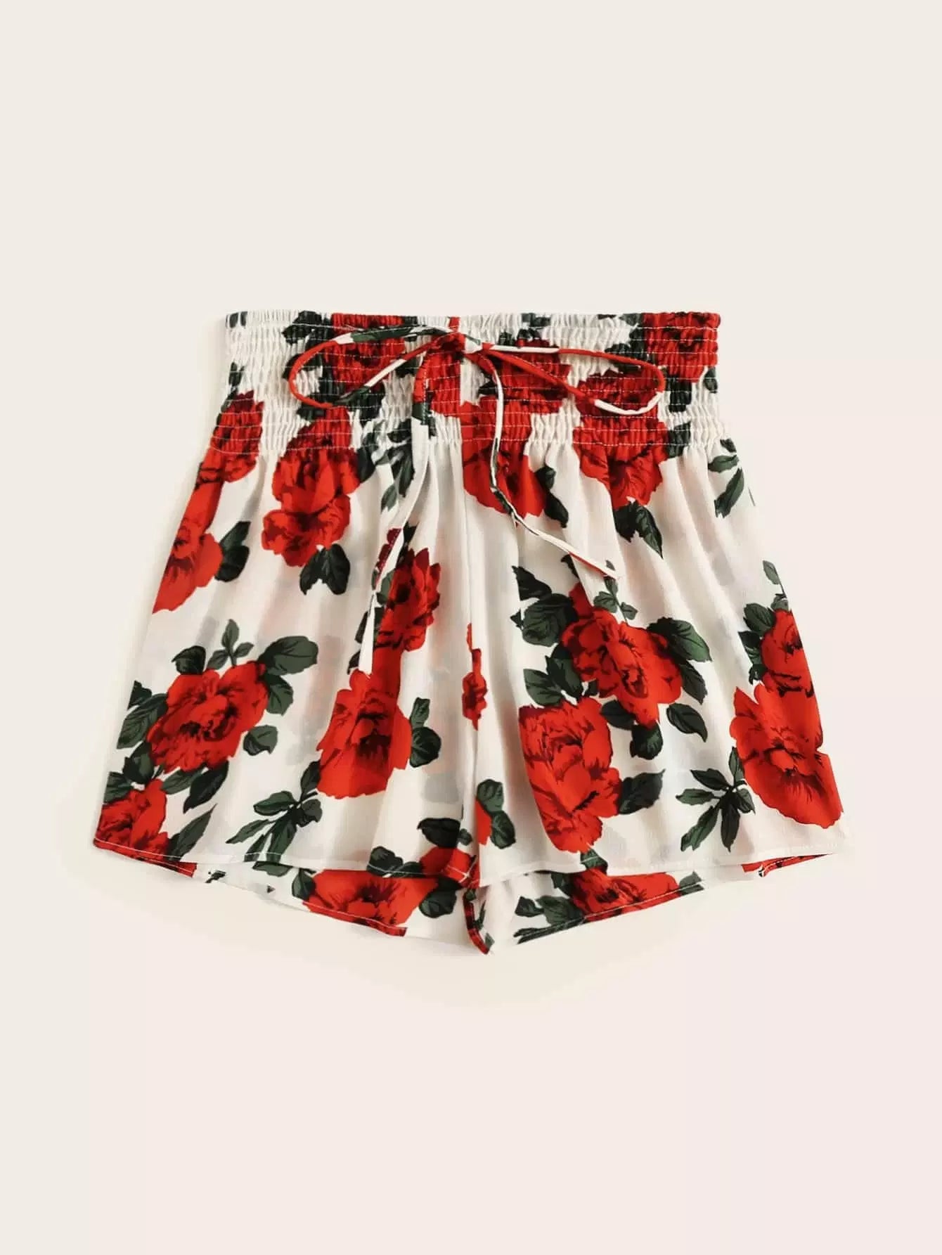 Women - Floral Print Tie Front Shirred Waist Shorts