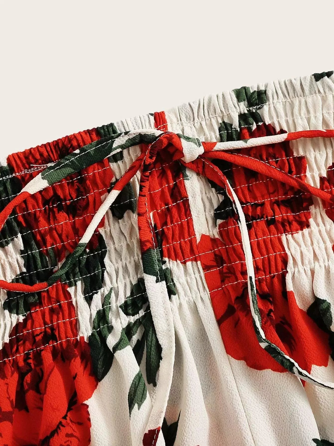 Floral Print Tie Front Shirred Waist Shorts