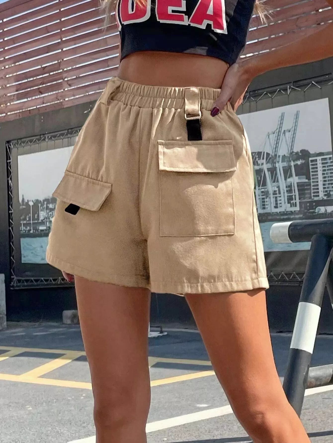 Women - Solid Flap Pocket Shorts