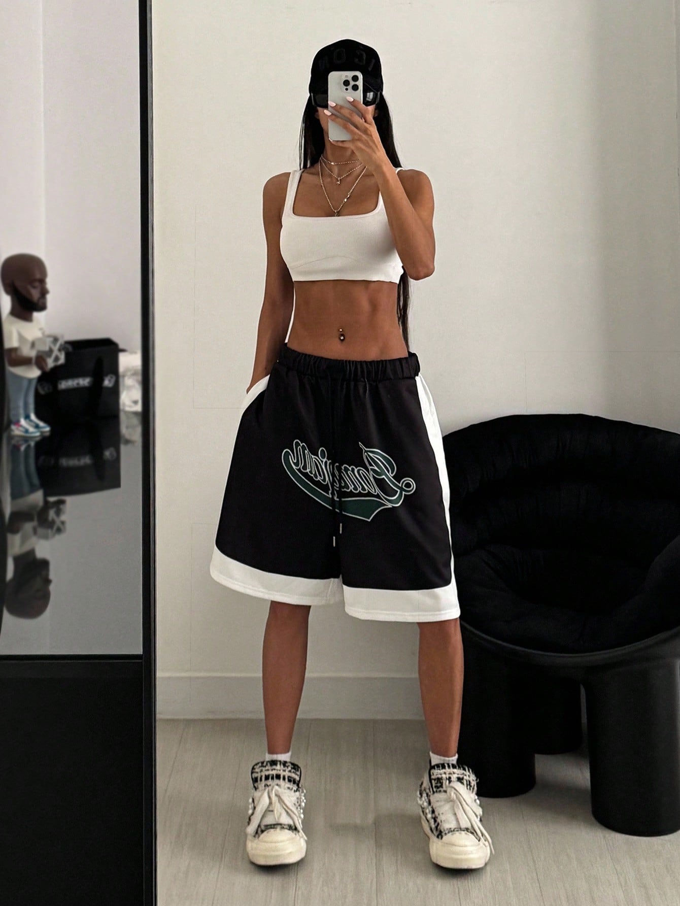 StreetHx Women's Street Style Letter Print Pocketed Casual Sports Shorts